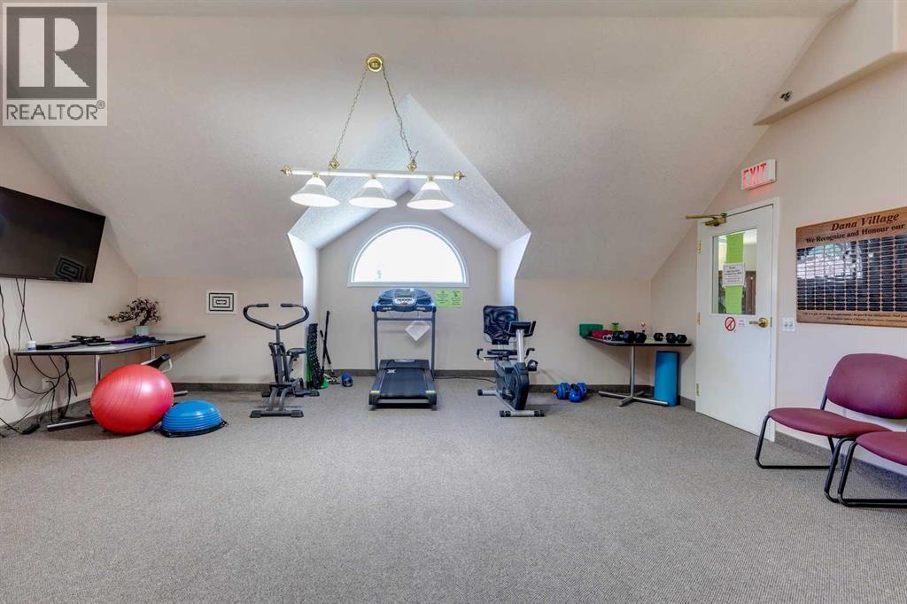 Welcome to Dana Village, where you can enjoy a 'turn key' lifestyle. Quick possession works on this preferred MAIN floor 55+ unit. Signal Hill offers easy access for commuting, LRT, parks and pathways and numerous amenities & services in this well established central community. Heated underground parking stall, carwash, workshop, weekly rides for shopping trips, pot lucks, social activities & exercising/recreation events. Gorgeous central dining hall for residents to enjoy. Covered balcony (west facing) steps out to the beautifully landscaped courtyard and grounds. Patio has a BBQ gas line, room for deck furniture, gardening and ample space for you to read, relax and repeat. Balcony storage room as well as secured caged storage in front of parking stall located near elevator. Unit has been lovingly maintained and updated: newer furnace, Central A/C, efficient Stainless Steel appliances, modern luxury vinyl plank flooring, high end kitchen faucet & bath/light fixtures. Versatile floor plan (>820 sq. ft.) features 2 LARGE Bedrooms, 3 piece Bathroom, In-suite laundry, full pantry and utility area. Decorated in a modern neutral colour palette. Single floor living, accessibility features to help with mobility ease. Another perk of main floor living is that you can have a dog or cat (board approval) & direct outside access from your balcony. Complex is well managed and ready for those seeking their new chapter in a dynamic, multi faceted setting. Don't miss this opportunity, call and view today! (id:53676)