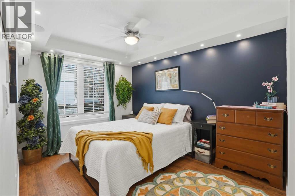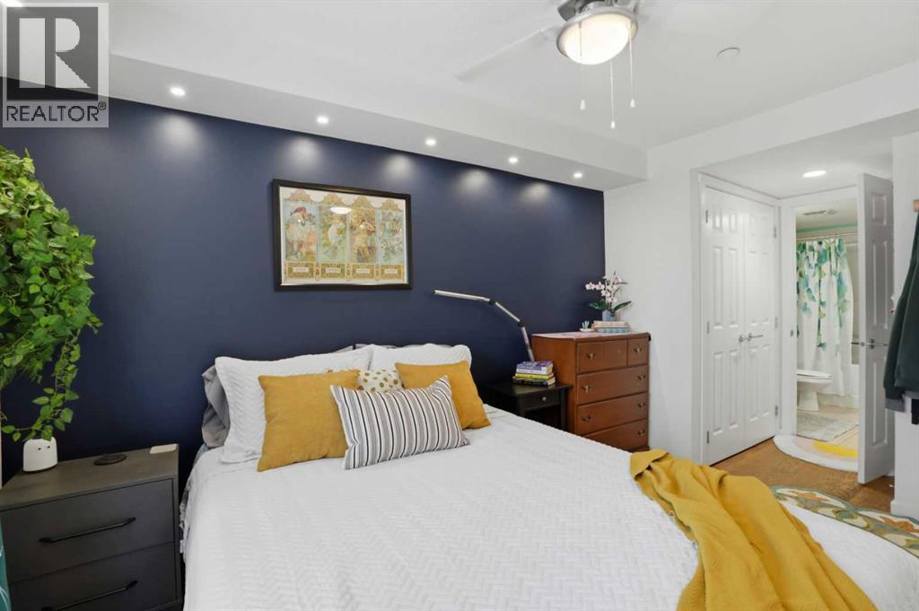 Welcome to this beautifully upgraded former show suite, where thoughtful design meets everyday comfort. This 1-bedroom, 1-bathroom home offers a warm and inviting vibe from the moment you walk in - truly feeling like a big, cozy embrace. Situated on the main floor, this unit provides convenient, private access without the need to pass through the building, making it ideal for ease of living. Just steps from your patio, you’ll find your above-ground parking stall, and underground, additional secure storage. Inside, the home is rich with upgrades throughout. The gorgeous kitchen features a stunning stone island, warm-toned shaker-style cabinetry, and stainless appliances, while the engineered wide-plank hardwood flooring flows seamlessly through the space. In-ceiling speakers and upgraded recessed lighting create an elevated ambiance, perfect for both relaxing and entertaining, while the mini-split A/C in the living room & bedroom keeps you calm, cool & collected. The thoughtful layout includes in-suite laundry and substantial in-suite storage, ensuring functionality matches the home’s beauty. This pet-friendly building (with board approval - please refer to bylaws) is designed with your furry companions in mind, offering dedicated pet areas while also being in close proximity to a nearby nature reserve with scenic walking paths. Reasonable condo fees just add to this units appeal. Located in the young, vibrant community of Copperfield, you’ll enjoy easy access to amenities, shopping, and major transportation routes - bringing convenience right to your doorstep. This home offers a perfect blend of style, comfort, and practicality - making it a smart move. (id:53676)