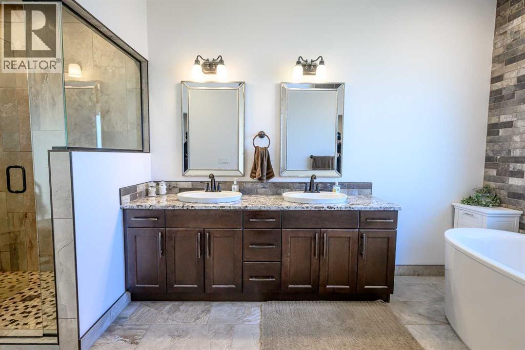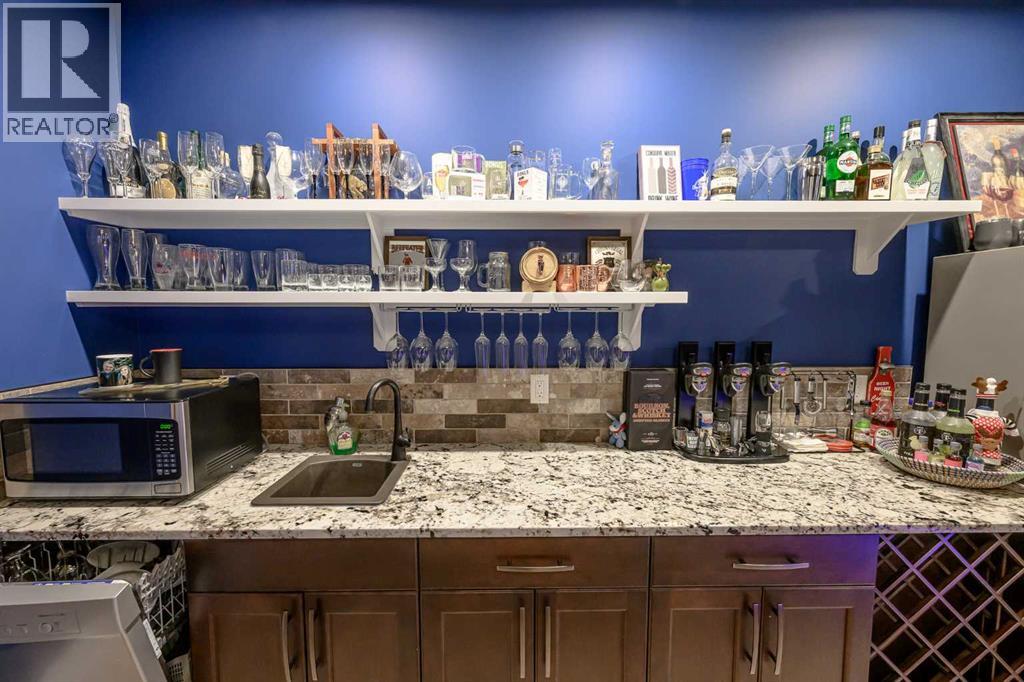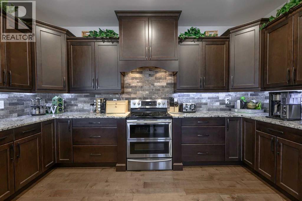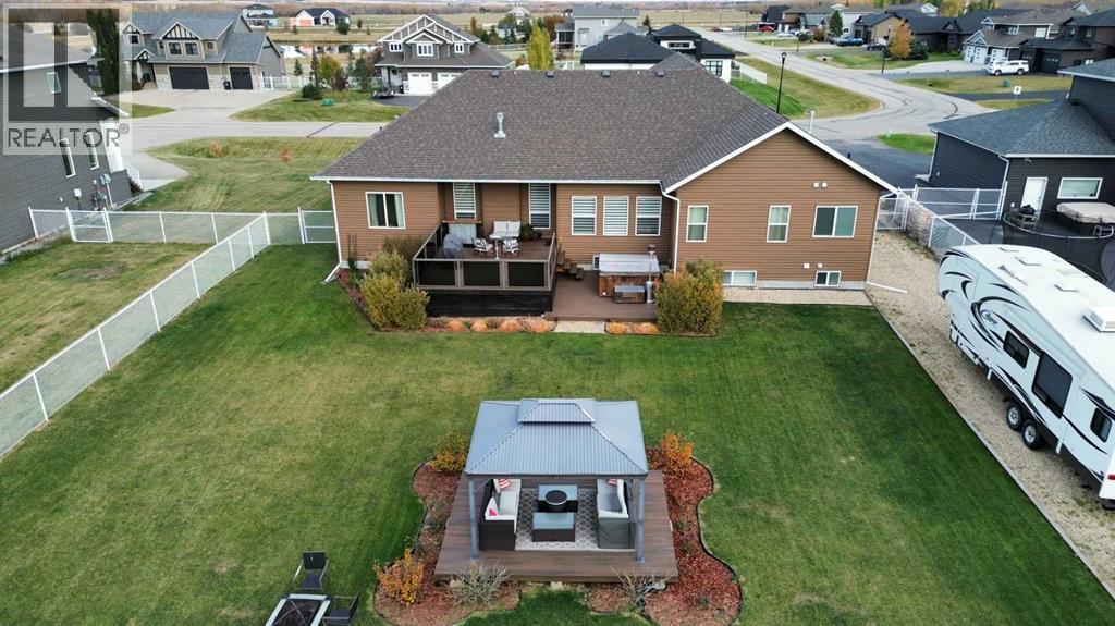Discover your dream home! This stunning 2029 sqft bungalow in the sought-after Carriage Lane neighbourhood offers an expansive layout with 6 bedrooms and 4 full bathrooms. The open-concept main floor, perfect for entertaining, is beautifully appointed with high-end tile, hardwood, and warm carpet. The gourmet kitchen is a chef's delight, featuring granite countertops, a gorgeous backsplash, and extensive cabinet space. In the living room, elegant coffered ceilings create a sense of grandeur. The main floor features three bedrooms, including the serene master suite—a true retreat with a spacious walk-in closet and a spa-like ensuite with dual sinks, a custom-tiled shower, and a deep soaker tub. The lower level is an entertainer's paradise, fully developed with a wet bar, home theatre room, and a large living area. The basement includes three more generous bedrooms and two full bathrooms, including a private guest ensuite. Outside, the features are just as impressive: a finished and heated attached triple garage, paved RV parking with full power/sewer hookups, extended gravel parking, two west-facing decks, gazebo, and a three-season greenhouse. This meticulously cared-for property is the complete package. (id:53676)