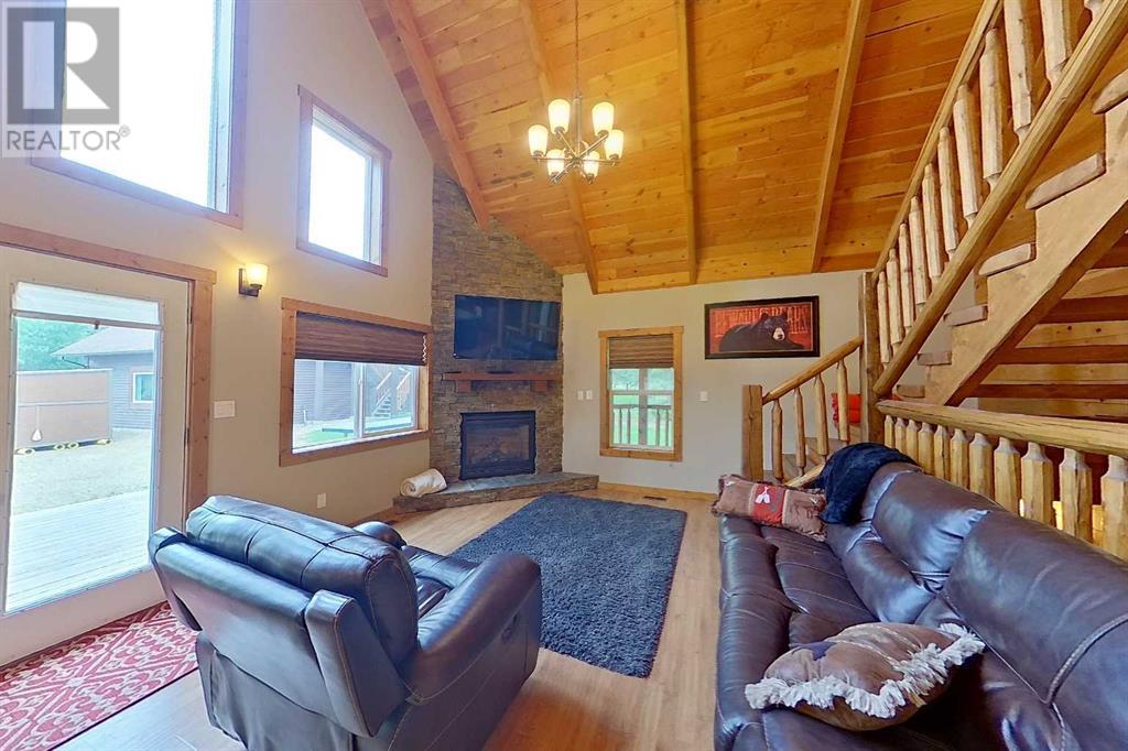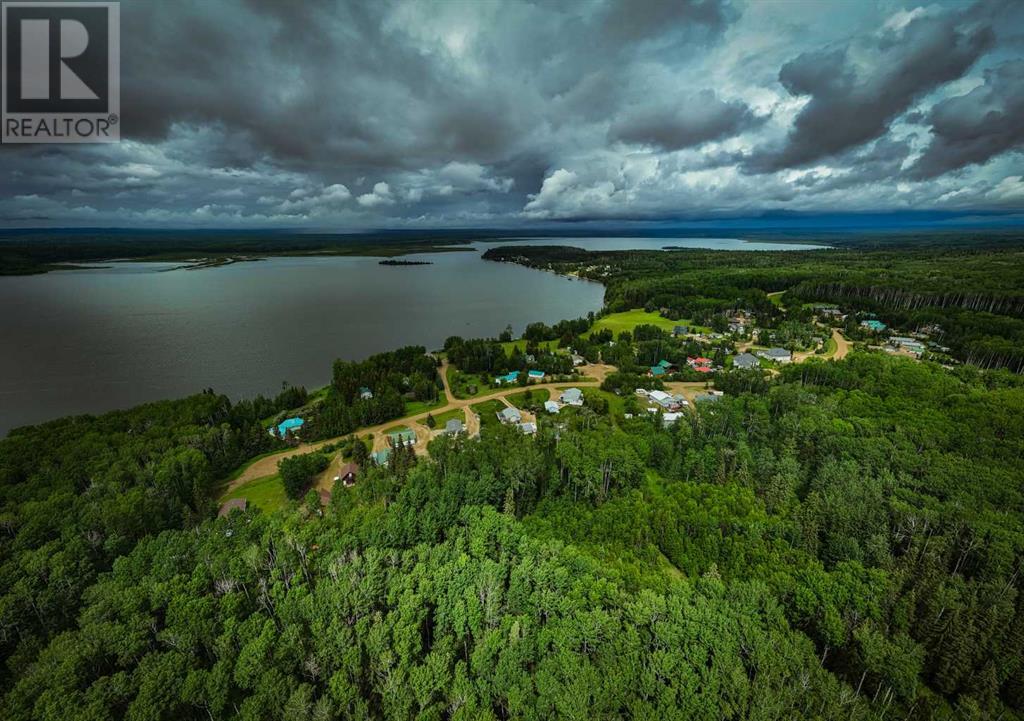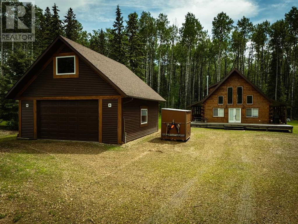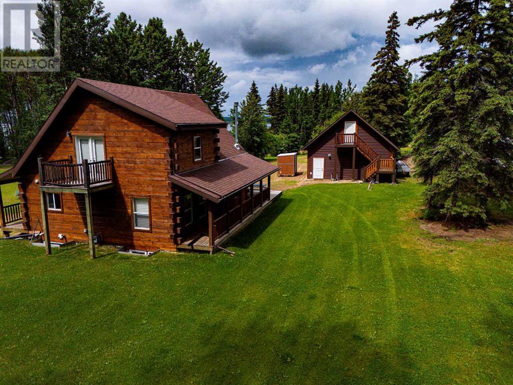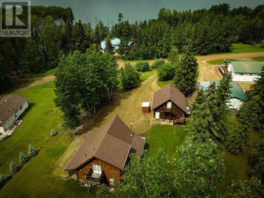 Broken Paddle Estates, one of Alberta's best kept secrets... along the shores of Fawcett Lake. This Charming custom built 3 Bedroom 1.5 Storey home sites on a very private lot. The exterior of the home is sided with split logs, has two covered porches and a deck. Partially finished basement with ICF Foundation. Inside you'll be wowed by the pine accents and details found throughout. Laminate flooring, Vaulted Ceiling with Pine Accents in the open concept Living/Dining and Kitchen. Living room has plenty of windows, a corner gas fireplace with stone accents and patio doors that open to a large deck. Spacious Dining Area and Kitchen with dark cabinets, eating bar and black appliances. Main floor also has a Bedroom, 4 Pc Bath and Laundry. Beautiful staircase with pine spindles takes you to the upper floor, a sitting area overlooks the Living room. Walk into the cozy Primary Bedroom, with Pine accented Vaulted ceiling, wall mounted electric fireplace, a 3 Pc Ensuite and patio door that opens to the balcony with great views. The Basement is partially developed, with a Rec/Games room, Bedroom, Roughed-In Bath and the Utility Room...materials are there to get most of it finished. The home is accessible 12 months of the year and has its own well, and is connected to natural gas and power. The Detached Double garage, with room for the vehicles and toys also has a unfinished loft with outside access. Lot backs onto undeveloped land behind. A short walk to the boat dock for some of the best water sports and fishing. Green space in front of the lake is open for all residents to enjoy. Great trails in the area for quadding and sledding. Located just 35 mins to Smith, 1.25 hrs to Slave Lake and less than 3 hrs to Edmonton. Room for all the family any time of the year. This gem is waiting for you, don't miss it. (id:53676)