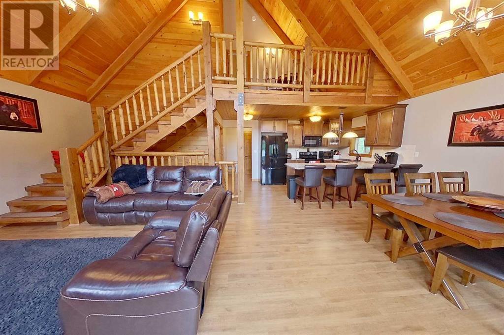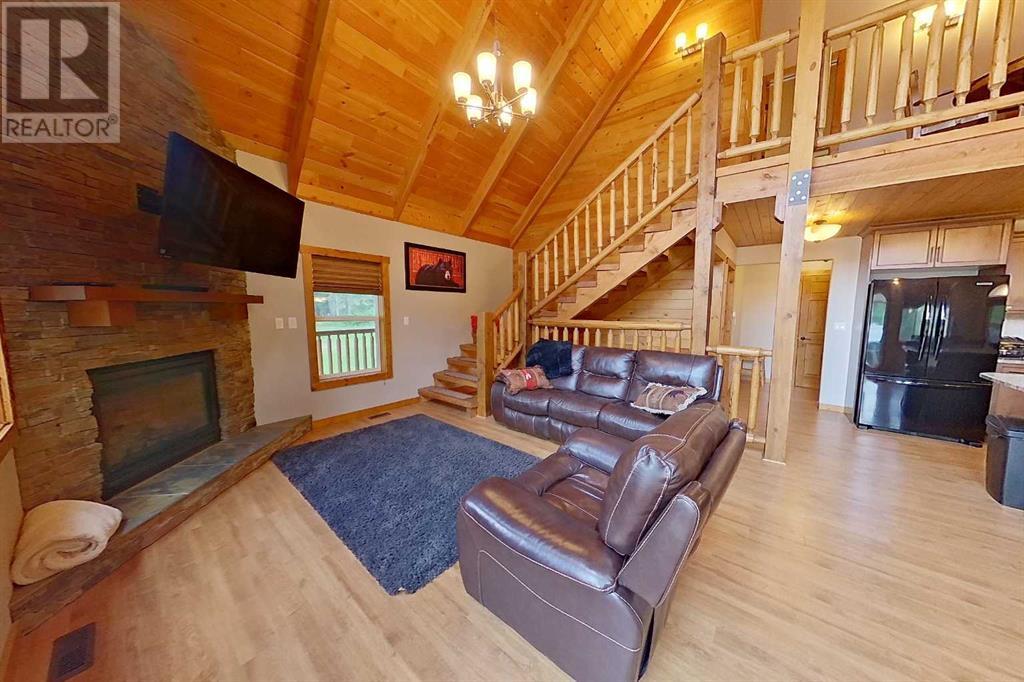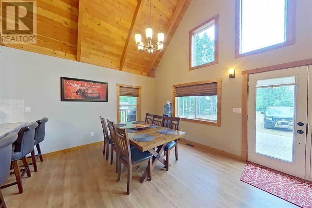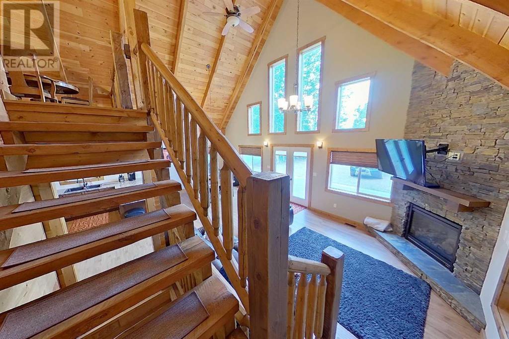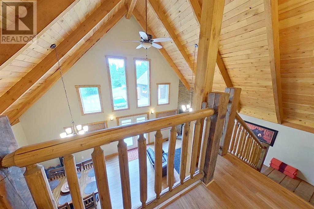 Broken Paddle Estates, one of Alberta's best kept secrets... along the shores of Fawcett Lake. This Charming custom built 3 Bedroom 1.5 Storey home sites on a very private lot. The exterior of the home is sided with split logs, has two covered porches and a deck. Partially finished basement with ICF Foundation. Inside you'll be wowed by the pine accents and details found throughout. Laminate flooring, Vaulted Ceiling with Pine Accents in the open concept Living/Dining and Kitchen. Living room has plenty of windows, a corner gas fireplace with stone accents and patio doors that open to a large deck. Spacious Dining Area and Kitchen with dark cabinets, eating bar and black appliances. Main floor also has a Bedroom, 4 Pc Bath and Laundry. Beautiful staircase with pine spindles takes you to the upper floor, a sitting area overlooks the Living room. Walk into the cozy Primary Bedroom, with Pine accented Vaulted ceiling, wall mounted electric fireplace, a 3 Pc Ensuite and patio door that opens to the balcony with great views. The Basement is partially developed, with a Rec/Games room, Bedroom, Roughed-In Bath and the Utility Room...materials are there to get most of it finished. The home is accessible 12 months of the year and has its own well, and is connected to natural gas and power. The Detached Double garage, with room for the vehicles and toys also has a unfinished loft with outside access. Lot backs onto undeveloped land behind. A short walk to the boat dock for some of the best water sports and fishing. Green space in front of the lake is open for all residents to enjoy. Great trails in the area for quadding and sledding. Located just 35 mins to Smith, 1.25 hrs to Slave Lake and less than 3 hrs to Edmonton. Room for all the family any time of the year. This gem is waiting for you, don't miss it. (id:53676)