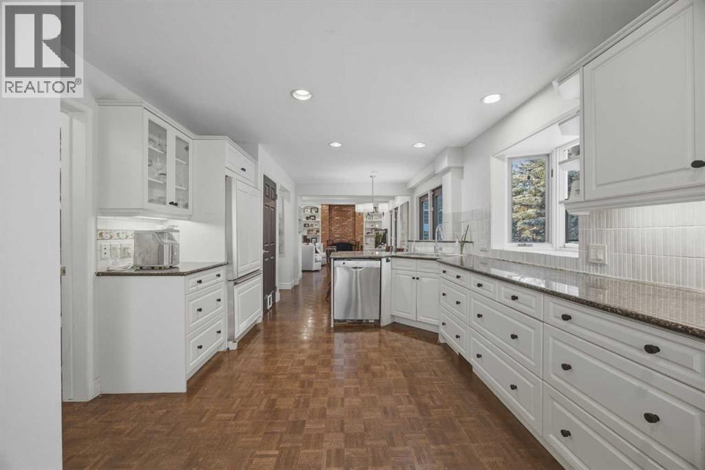 Kelvin Grove - 1136 Kildonan Place SW: Situated on a quiet cul-de-sac in the established community of Kelvin Grove, this fully developed two-storey home offers a traditional layout with over 2,900 sq ft of total living space, 3 + 1 bedrooms, 3.5 bathrooms, and a heated, oversized, attached double garage. The main floor has tons of natural light and features hardwood/parquet flooring throughout. The bright west-facing living room is separated from the family room by a bevelled glass partition wall. The family room features a wood-burning brick fireplace, built-in shelving, and French doors leading to the generous backyard, creating a seamless indoor-outdoor flow. The updated kitchen is thoughtfully designed with granite countertops, abundant cabinetry, a gas range, a custom hood cover, a built-in oven, and a refrigerator. A bay window overlooks the backyard, while the adjoining breakfast nook provides a second set of French doors for added access to the outdoor space. The main floor den includes a built-in desk with storage, and connects conveniently to the mudroom, complete with a custom bench, hooks, and a closet. A 2-piece powder room, spacious front entry, and separate side entry off the kitchen complete this level. Upstairs, you will find new luxury vinyl plank flooring throughout. The generous primary suite features a custom walk-in closet with ample hanging space and drawers, along with a 5-piece ensuite with dual sinks, a glass-and-tile shower with a bench, and a jetted tub. Two additional bedrooms, each with custom closet systems, and a 4-piece main bathroom with linen storage complete the upper level. The lower level is fully developed and includes a large recreation room with a gas fireplace and flexible space for a games area, a fourth bedroom with a 3-piece ensuite, a laundry room with sink and folding counter, and a spacious storage closet. Situated on a quiet cul-de-sac, this home rests on an oversized 7,492 sq ft lot without a back lane. The generou s backyard is private and fully fenced, featuring mature landscaping, a spacious patio, and a storage shed, offering the perfect setting for entertaining or family enjoyment. Kelvin Grove is a sought-after neighbourhood known for its mature tree-lined streets and excellent amenities. Enjoy close proximity to green spaces, Chinook Centre, Rockyview Hospital, Heritage Park, Chinook Park School, Henry Wisewood High School, and convenient access to Glenmore Trail, Elbow Drive, Crowchild Trail, and Stoney Trail. This is a wonderful opportunity to own a home that offers room to live, grow, and entertain in one of Calgary’s most desirable communities. (id:53676)