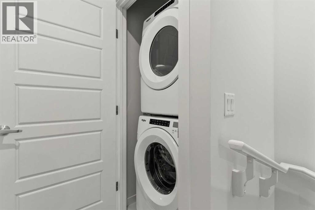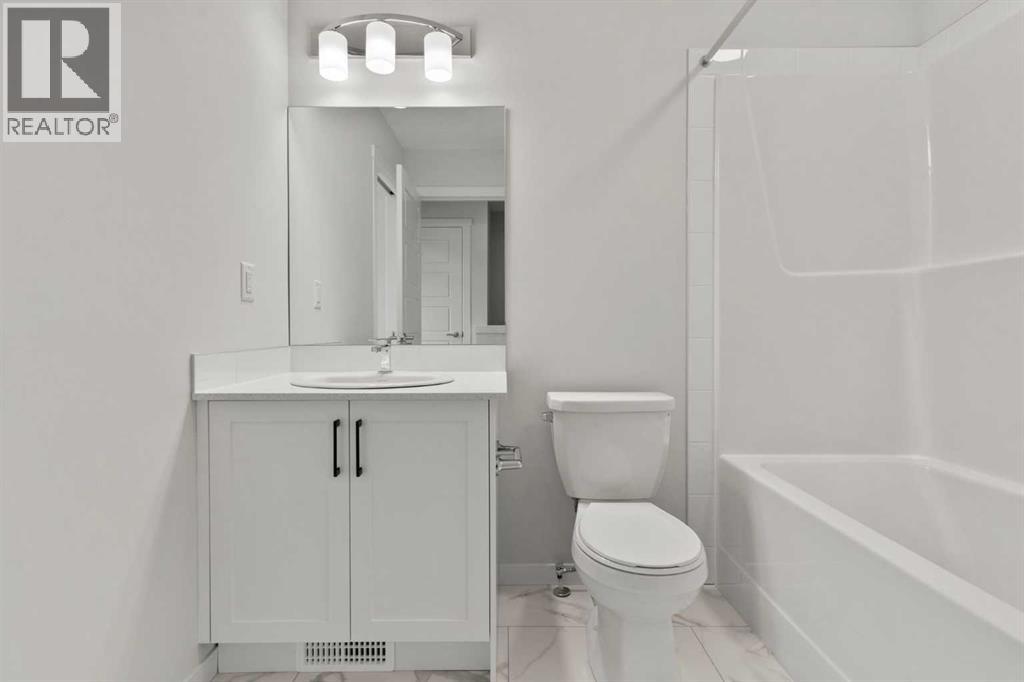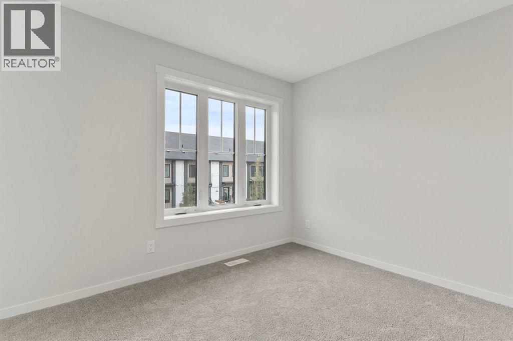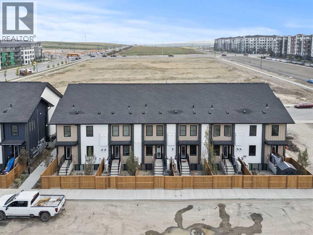 Welcome to the Ambrosia at ZEN Livingston – a stylish, energy-efficient townhome built by a NET ZERO builder! Offering 1,095 sq ft of thoughtfully designed living space, this 2 BED, 2.5 bath home features TRIPLE-PANE windows, advanced insulation, and a rough-in for solar panels – all contributing to lower utility bills and year-round comfort. The OPEN CONCEPT main floor showcases Cicero Luxury VINYL PLANK flooring, pot lights with knock-down ceilings, and a BRIGHT LIVING AND DINING area that flows into your BACKYARD that is FULLY FENCED, perfect for those with kids, pets or wanting to enjoy some privacy — complete with BBQ GAS LINE, landscaping, and irrigation. The modern kitchen includes white ice QUARTZ COUNTERTOPS and a 6-piece Whirlpool appliance package. Upstairs, you'll find two spacious bedrooms including a primary suite with an ensuite bathroom, upstairs laundry and an additional 4-pc bath. Enjoy HARDIE BOARD siding (hail/fire-resistant), and be part of a vibrant community just steps from the Livingston Hub with splash park, rink, courts & more! Quick access to Stoney Trail (3 min), YYC Airport (13 min), and CrossIron Mills (11 min). AIRBNB friendly! Photos are representative. Visit the showhome at 56 Livingston Parade NE. (id:53676)