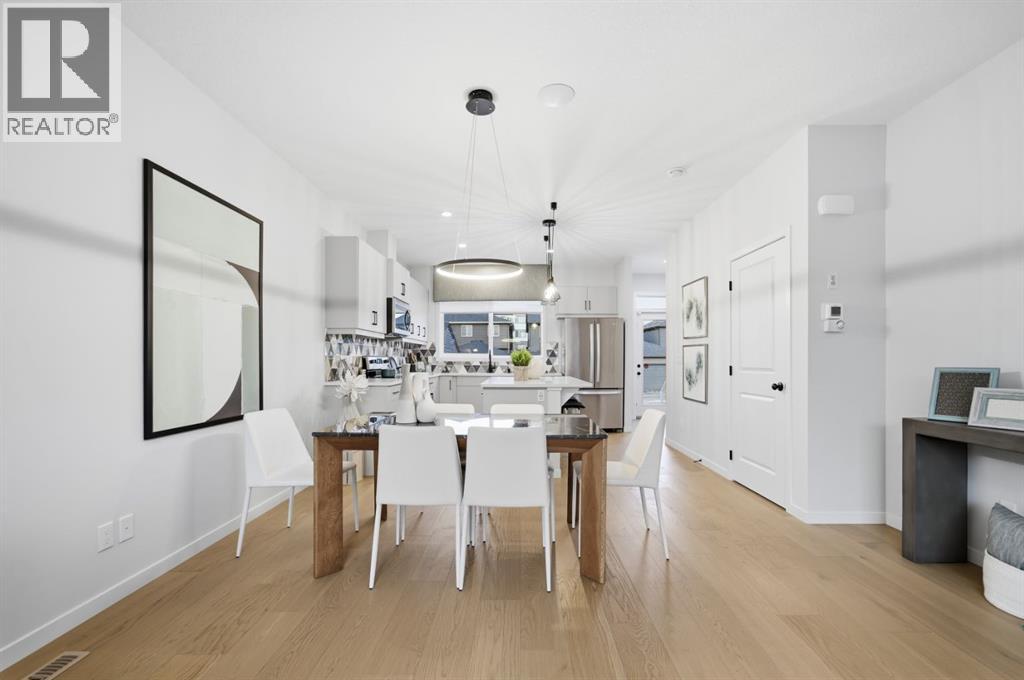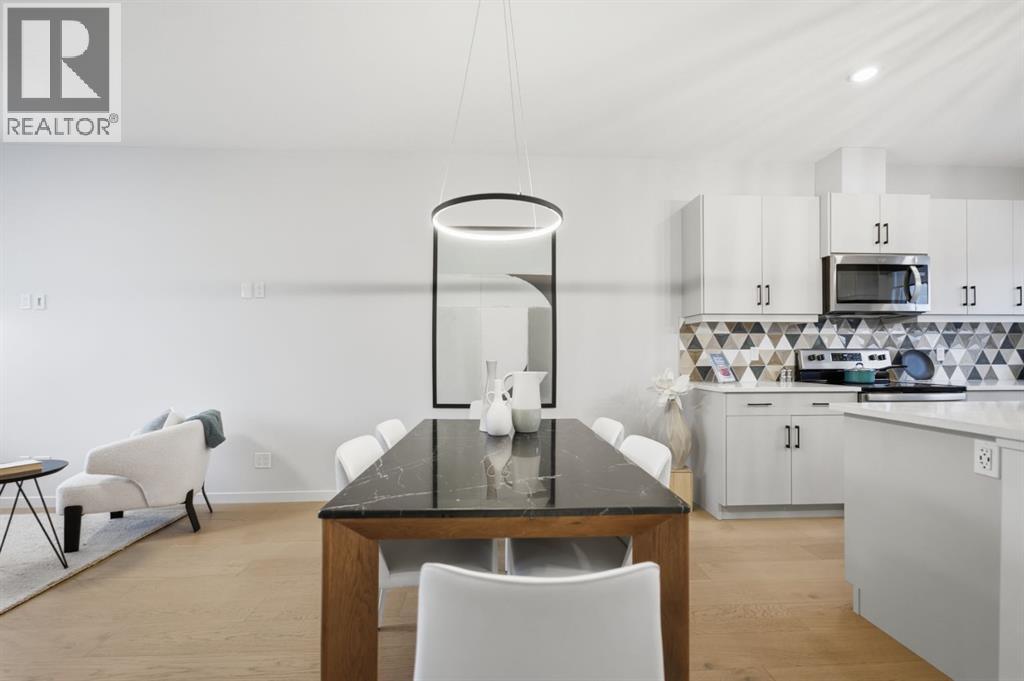 Welcome to this immaculate showhome in the highly desirable Wolf Willow community! This pristine 3-bedroom, 2.5-bathroom home has never been lived in and comes fully furnished with designer show home furniture, curated art pieces, and elegant window coverings all included. Boasting over $45,000 in builder upgrades with tasteful, high-end finishes throughout, this home features air conditioning for year-round comfort, professionally landscaped yard with mature plantings, and a beautiful deck perfect for entertaining. Every room showcases thoughtfully designed accent walls adding character and style, while a convenient office desk nook on the second-floor hallway maximizes every inch of space. Ideally situated steps away from the dog park, this home is perfect for pet owners and families alike. Wolf Willow has long been cherished for its natural beauty, diverse fish and wildlife, and abundant recreational opportunities. With its contemporary design, numerous amenities, and strong connection to the river, Wolf Willow brings the lifestyle and beauty of the Bow River Valley right to your doorstep. This is a rare opportunity to own a designer showhome with everything included - simply move in and start living the Wolf Willow lifestyle! (id:53676)