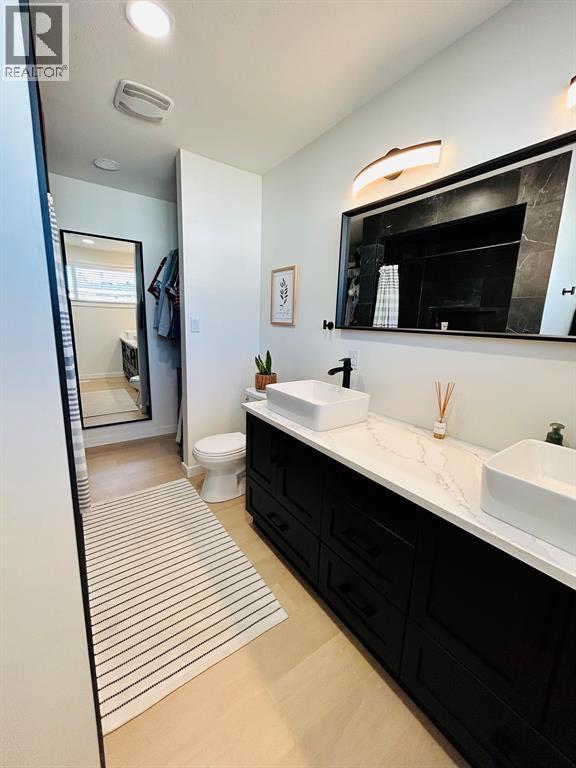 Welcome to this beautiful renovated home in the heart of the city. This stunning, fully renovated 4 bedroom, 3 bathroom home with a detached garage is located in the desirable neighborhood of Lakeview. With its prime location and modern upgrades, this home is perfect for families or anyone looking for their own personal oasis. As you step inside, you'll be impressed by the open floor plan that seamlessly flows from the living room to the kitchen. The living room features a built-in fireplace and large windows that allow natural light to pour in. The kitchen is a true showstopper, with its brand new high-end stainless steel appliances, quartz countertops, soft close cabinets, stovetop pot filler and custom cabinetry. The primary suite is a wonderful retreat, with its spacious layout, large windows, walk-in closet and luxurious ensuite with dual vanity and spa-like shower. The basement features 2 more bedrooms, a bathroom and a large family room perfect for entertaining. Other notable features of this home include a newly built garage with 100 amp power, new A/C, new vinyl plank floor and carpet, as well as updated plumbing and electrical throughout the entire house. The roof and all windows were replaced in 2019, and the furnace was replaced in 2018. Don't miss out on this amazing opportunity to own a fully renovated home in this sought after neighbourhood. (id:53676)