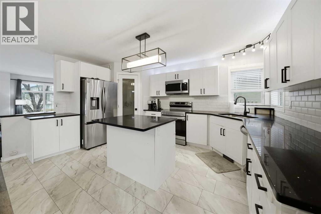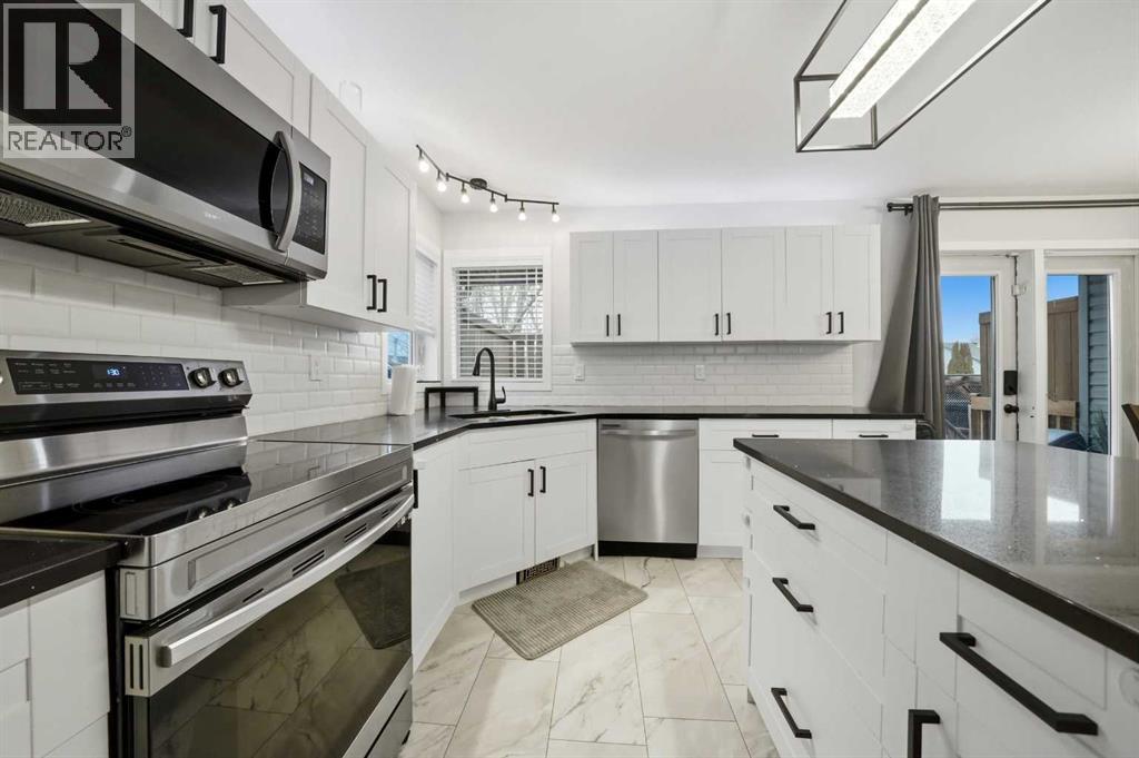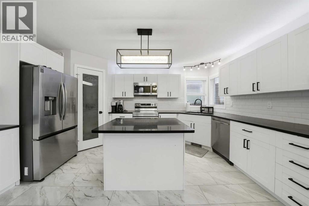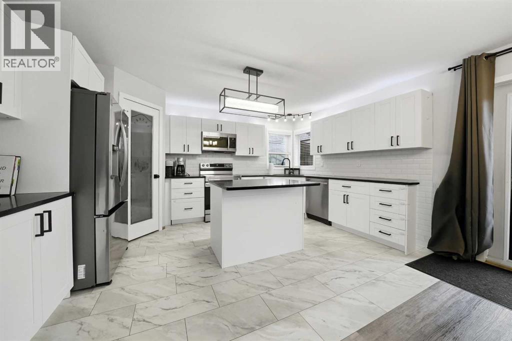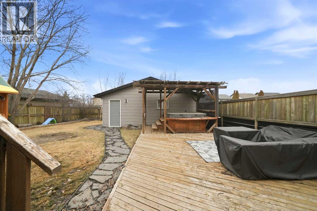 Great street appeal welcomes you into this 4 bedroom, 2 bathroom bungalow, ideally located close to parks and schools. Inside, a bright sunken living room adds character and separation from the main living space.The main floor offers 2 bedrooms, a full bathroom, and a functional kitchen with a corner pantry and island. The dining area leads directly to the back deck, making it easy to enjoy outdoor living and entertaining.The fully developed basement includes 2 additional bedrooms, a second living area, a full bathroom, and a convenient laundry room, along with in-floor heat for added comfort.A new furnace and air conditioning system have been installed within the last year. Shingles and siding on the home were replaced in 2016, with garage shingles updated in 2024.The fully fenced yard is set up for both everyday use and entertaining, featuring a large back deck, hot tub with pergola, and plenty of space for kids, pets, or gatherings.The detached double garage is well set up with dual overhead doors, side-mounted openers for a clean ceiling, bright upgraded lighting, and a built-in work area, making it a practical space for projects, storage, or hobbies.With a functional layout, major mechanical work already taken care of, and a yard and garage that are ready to be used and enjoyed, this home offers a great opportunity in a convenient location. (id:53676)