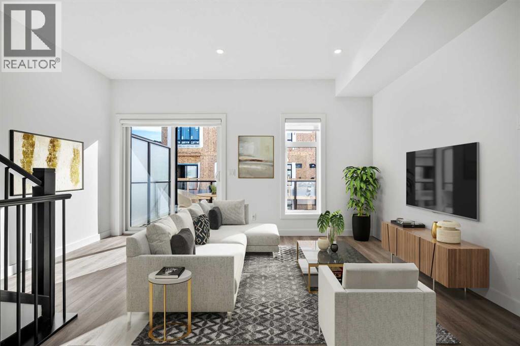 ***Open House from 2pm to 4pm, Stop by Showhome for Access*** Welcome to The Emerson at West 83, a beautifully designed townhome offering the perfect blend of modern comfort, elegant design, and unbeatable location. With over 1,400 sq ft of thoughtfully crafted living space, this home delivers both style and function in one of Calgary’s most sought-after west-side communities. Ideally situated near parks, schools, dining, shopping, and transit, and just 15 minutes to downtown and 45 minutes to the Rocky Mountains, this property offers an exceptional lifestyle for professionals, couples, or small families.The bright, open-concept main floor welcomes you with an abundance of natural light and upgraded finishes throughout. The modern two-tone kitchen cabinetry creates a striking contrast, complemented by a gas range stove and quartz countertops. The adjoining great room features four upgraded flush-mounted LED lights for enhanced brightness and ambiance, while the 16-foot wide deck extends your living space outdoors—ideal for morning coffee or evening barbecues.The entry level offers a dedicated office space, perfectly suited for remote work or a quiet study area. On the upper floor, you’ll find a dual ensuite bedroom layout—each bedroom complete with its own bathroom for optimal comfort and privacy. The primary suite showcases a three-piece ensuite and dual walk-in closets, providing both luxury and practicality. Additional features include zebra blinds for stylish light control, A/C rough-ins for year-round comfort, and contemporary finishes that elevate the home’s modern aesthetic.The Emerson’s intelligent floor plan maximizes every inch of space, with thoughtful touches that make daily living easy and enjoyable. From its bright interiors and functional layout to its proximity to west Calgary’s best amenities, this home captures the essence of convenient, connected living. Enjoy nearby pathways and parks, trendy local cafes, top-rated schools, and effortless acce ss to major routes, making both city life and mountain getaways within easy reach.Whether you’re a first-time buyer, young professional, or investor seeking a low-maintenance home in a vibrant community, 116 – 8235 8 Avenue SW offers an incredible opportunity to own in West Springs’ West 83 development—where modern design meets everyday livability. Includes Alberta New Home Warranty. (id:53676)