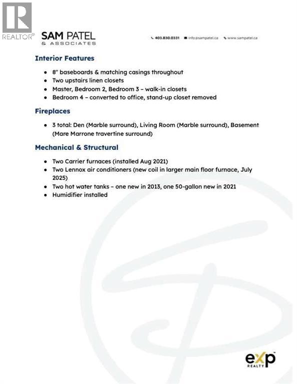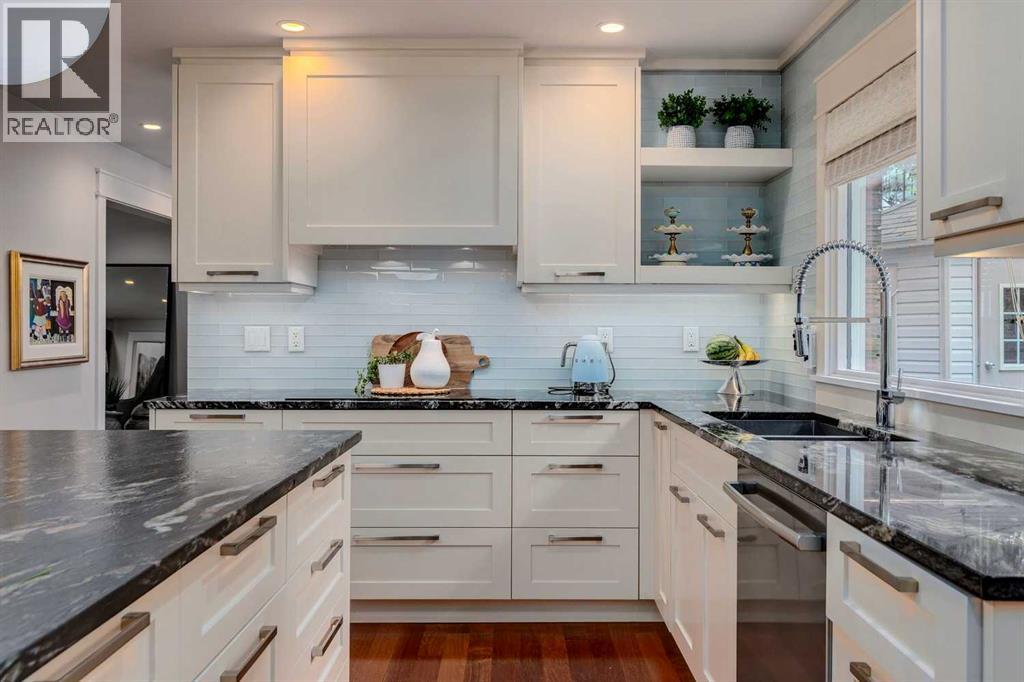 * SEE VIDEO * The ultimate outdoor lifestyle awaits! This magnificent Bayview executive home offers 4,285 sq. ft. of beautifully designed living space in one of Calgary’s most exclusive neighbourhoods. Perfectly positioned backing directly onto the Glenmore Reservoir and South Glenmore Park, it provides private access to the city’s extensive pathway system and unmatched recreational opportunities. Steps from the Sailing Club marina, bike pump track, and tennis and pickleball courts, this is a lifestyle of recreation, relaxation, and connection to nature—just minutes from downtown Calgary. Families will appreciate proximity to top-rated schools including the GATE and Science programs, while Glenmore Landing offers nearby shops and restaurants, and Rockyview Hospital adds everyday convenience. The location alone makes this a rare inner-city offering. Renowned designer Sally Healy guided the redesign and curated the interior finishings, elevating the home with timeless character and thoughtful function. The exterior features classic brick and cedar, a tile roof, and a spacious stone-coated back deck overlooking the park. Inside, rich Merbau site-finished hardwood floors lead through an elegant and welcoming layout. The gourmet kitchen impresses with a paneled Sub-Zero refrigerator, Thermador induction cooktop and double ovens, Bosch dishwasher, and built-in slide-door microwave. Custom maple cabinetry, titanium granite countertops, glass-tile backsplash, and Hicks pendant lighting complete the space. Expansive windows capture tranquil park views and flood the living and dining areas with light, while marble-surround fireplaces create warm, sophisticated gathering spaces. Upstairs, four spacious bedrooms offer privacy and comfort. The primary retreat features breathtaking park views, a spa-inspired ensuite with heated marble floors, Neptune jetted tub, Grohe rain shower with multiple heads, double sinks, and a grand walk-in closet with a central makeup station and “his and hers” sections. A second bedroom includes its own three-piece ensuite and walk-in closet—perfect for children, guests, or extended family. The third bedroom also features a walk-in closet, while the fourth is currently styled as a home office. A five-piece main bathroom and double linen closet complete the upper level. The fully finished lower level offers a warm, versatile space with plush Shaw carpeting, a cozy fireplace, and upgraded electrical for a future home theatre or arcade setup. Custom cabinetry is already roughed in for a wet bar, offering flexibility for future customization and entertaining. With three fireplaces, dual furnaces and air conditioners, updated mechanical systems, and meticulous attention to detail, this home blends beauty, efficiency, and comfort. More than just a home in Calgary’s most coveted location - book your showing today! (id:53676)