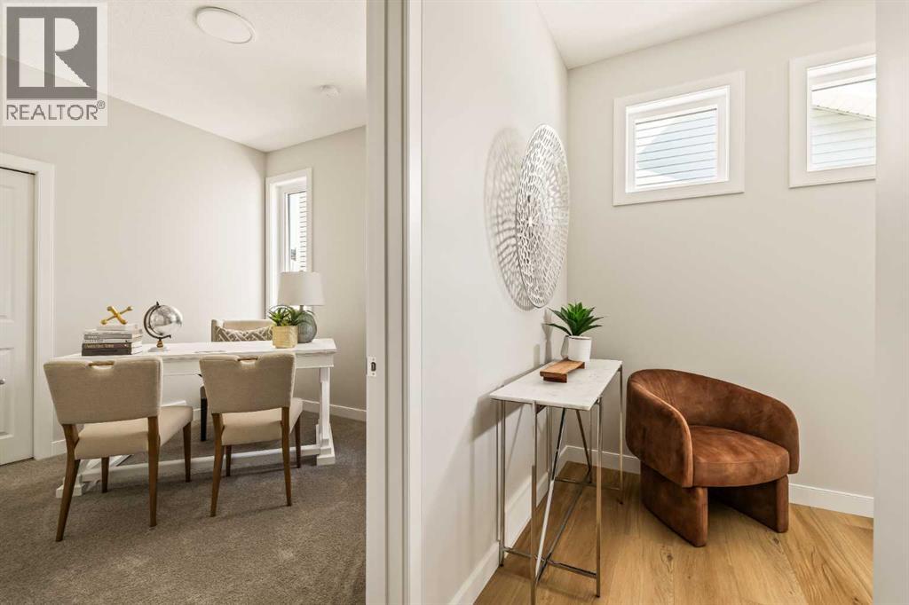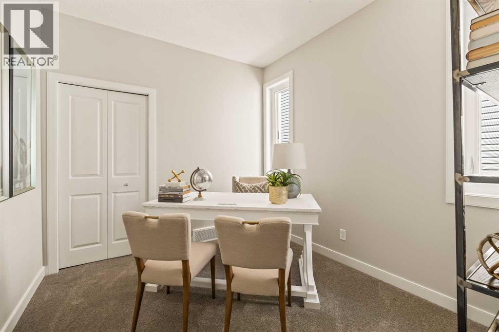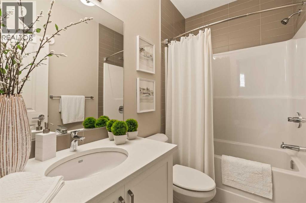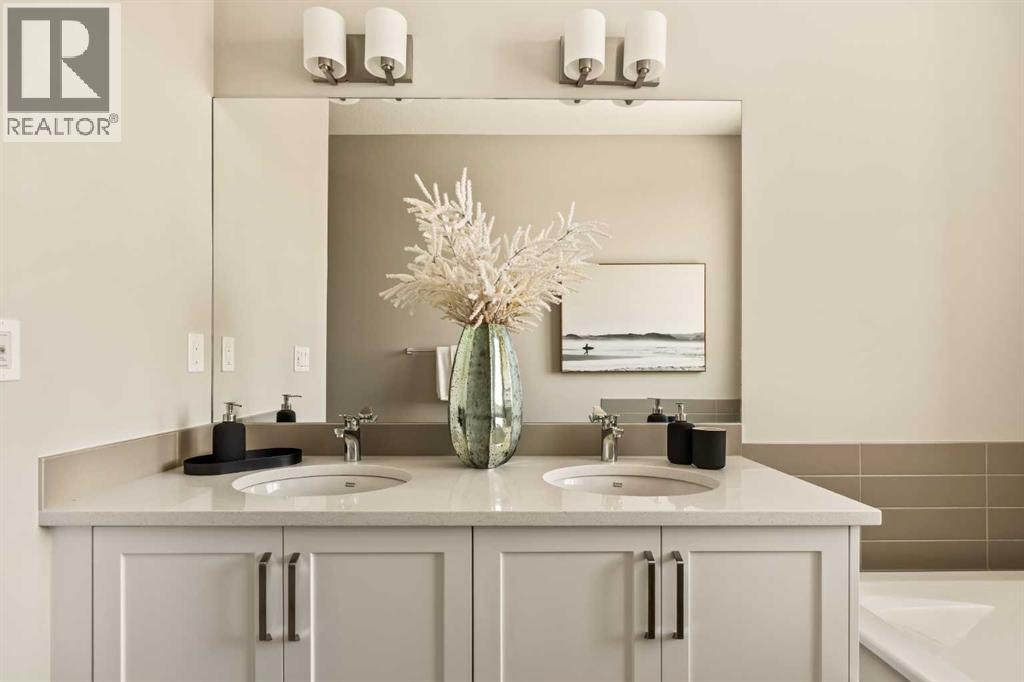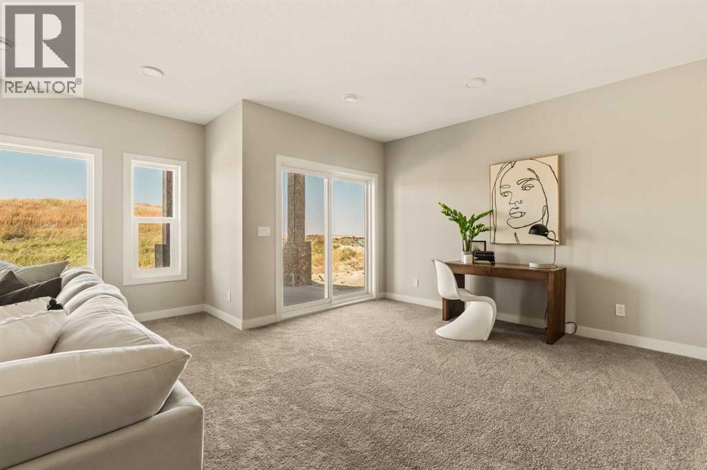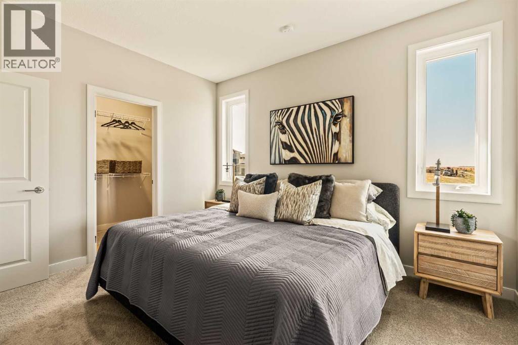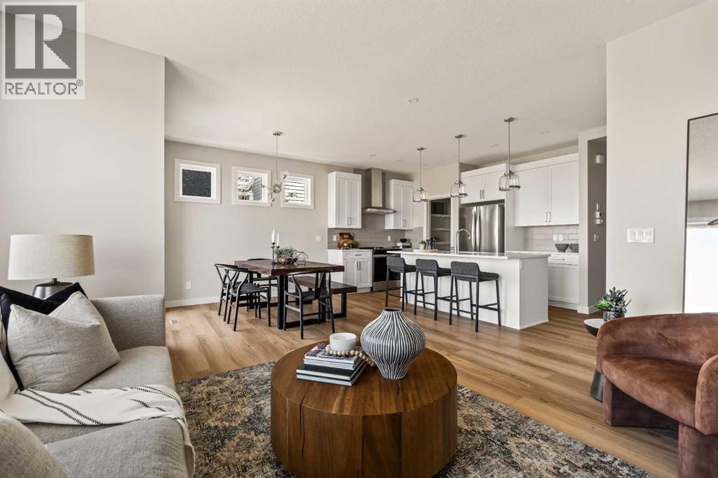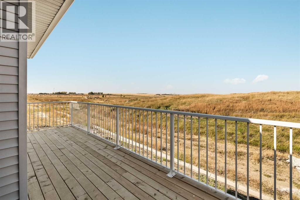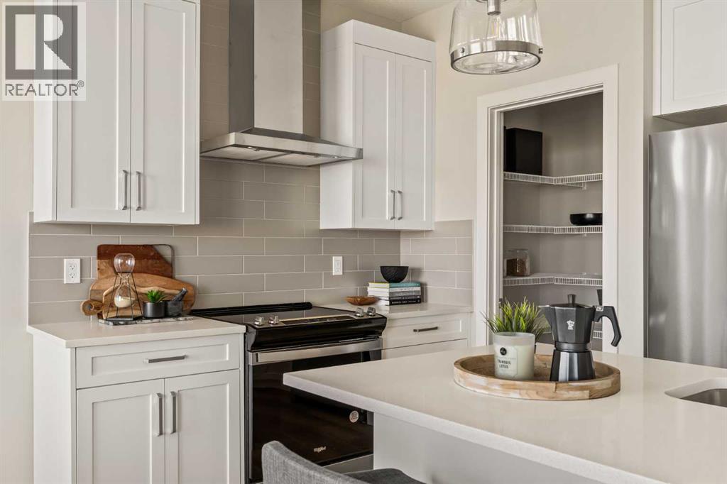 An incredible opportunity awaits in this brand new move-in ready Walkout Bungalow in the heart of Crossfield! Offering 2 living areas, 4 bedrooms, 2.5 bathrooms and nearly 2,200 square feet of developed space over two levels + an oversized double attached garage, this home is perfect for those looking to downsize without compromise or for a family! The bright and open main living area features a central kitchen that overlooks both living and dining spaces - making it the perfect space for entertaining. The expansive kitchen is complete with timeless white shaker cabinets accented by a subway tile backsplash. The light quartz countertops create a clean and seamless look while providing a bright and clean living space. The kitchen is complete with a large 5' deep corner pantry with endless storage, a slide-in range, chimney hood fan and suite of stainless steel appliances. The 9'x10' dining area has ample space for a large dining table and the kitchen island offers additional seating space. The main living area has a central fireplace, perfect for cozy winter nights, and a wall of windows across the back of the home allow natural light to flood the main living space all day long. Patio doors off of the main dining area provide access to the large 23' wide deck, with ample space for a cooking area and lounging space. The large primary suite has windows centering the bedframe with ample space for a king-sized bed and the intelligently designed niche is the perfect space for a wardrobe - providing a comfortable primary suite that can accommodate a full bedroom set. The primary suite is complete with a 5pc en suite including dual undermount sinks with quartz countertop, a soaker tub, walk-in shower and a large walk-in closet. The main level is completed with a full second bedroom, which could be a home office space, and a full bathroom - providing the ideal layout for multi-generational living or the perfect bedroom for a younger child. Laundry is located on the main leve l, providing added convenience to everyday living. The lower level has been professionally developed to mirror the same design aesthetic throughout. With 9' ceilings and a wall of windows on the walkout basement, the expansive ~27'x17' rec room offers ample space for a TV area, games space and home gym if desired! The basement is complete with two more bedrooms, a full bathroom and endless storage! A covered patio on the lower level walkout basement is the perfect space to relax while overlooking your fully private backyard. Ideal for those wanting a lower-maintenance lifestyle and single level-living, this beautiful new home is move-in ready in the charming small town of Crossfield! With the endless amenities of Airdrie and Calgary just minutes away, this property offers a tranquil lifestyle without compromise! This home comes with full Builder Warranty + Alberta New Home Warranty allow you to purchase with peace of mind. (id:53676)