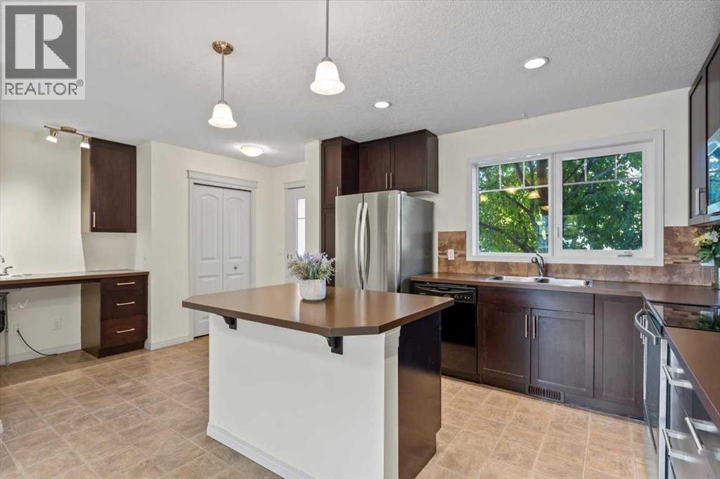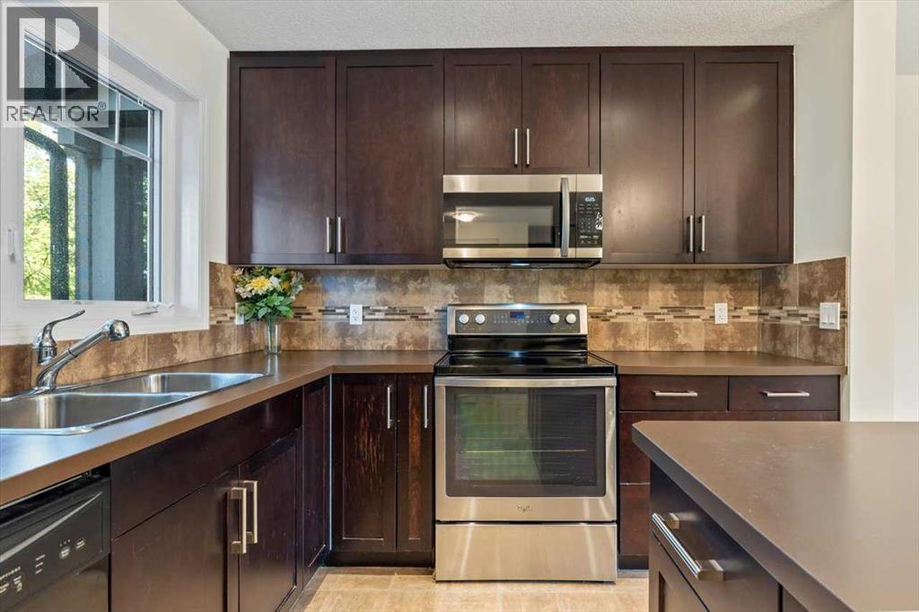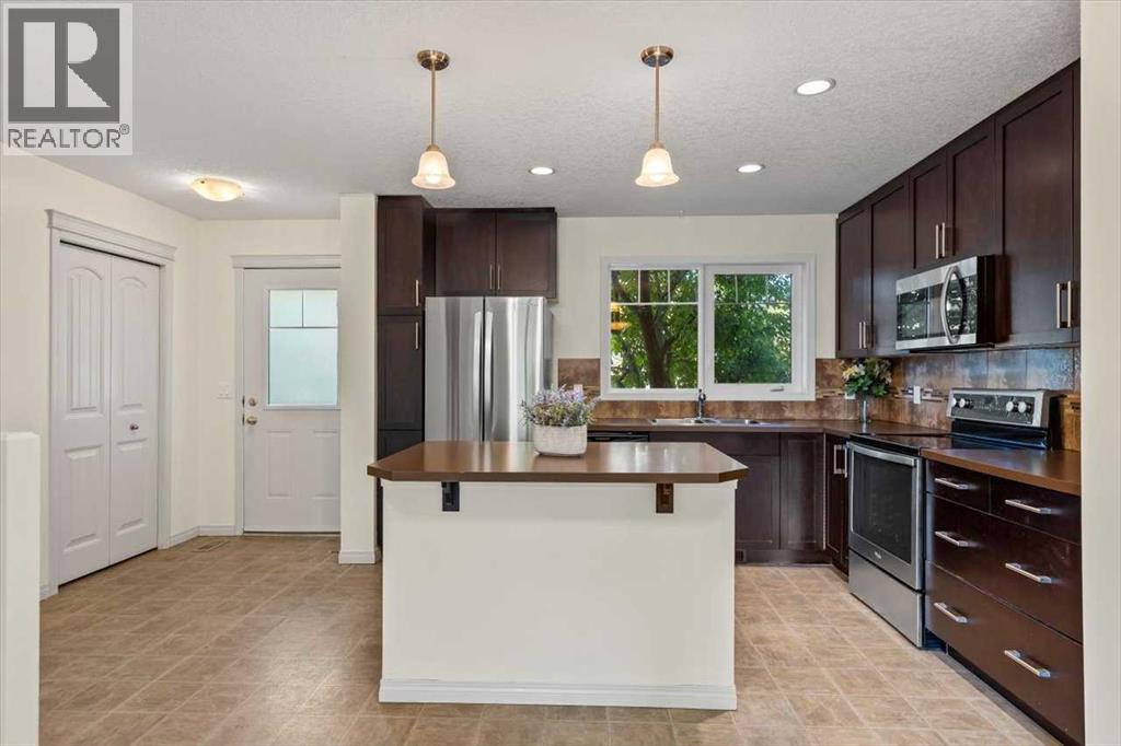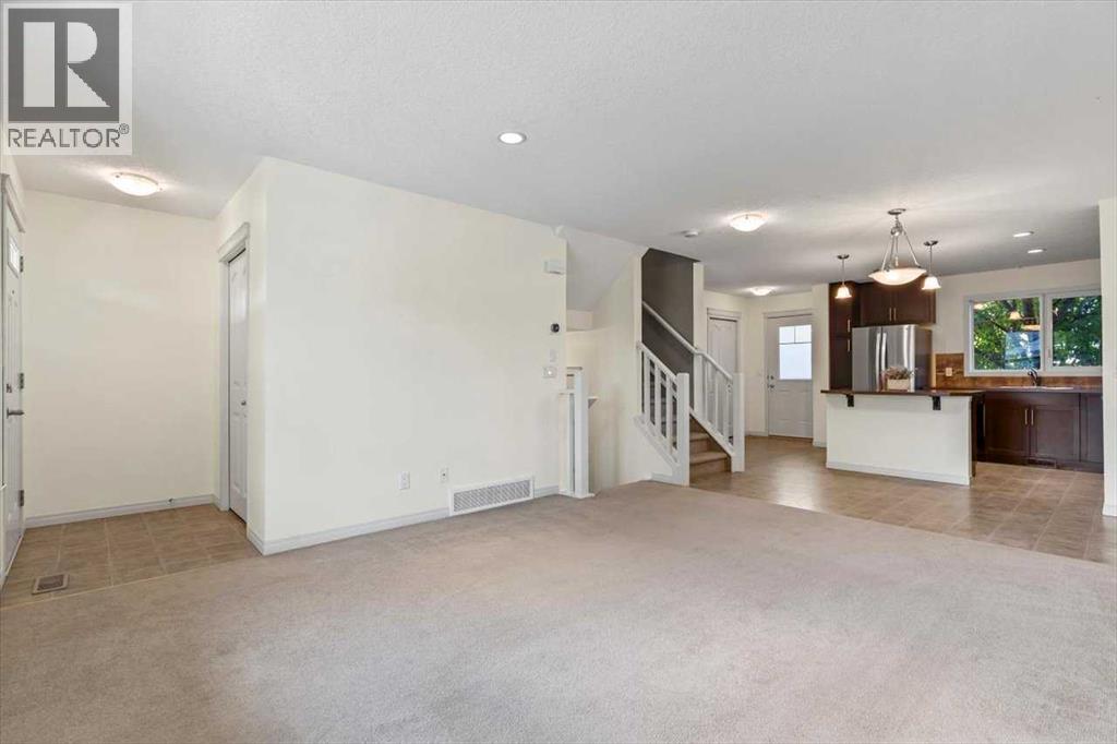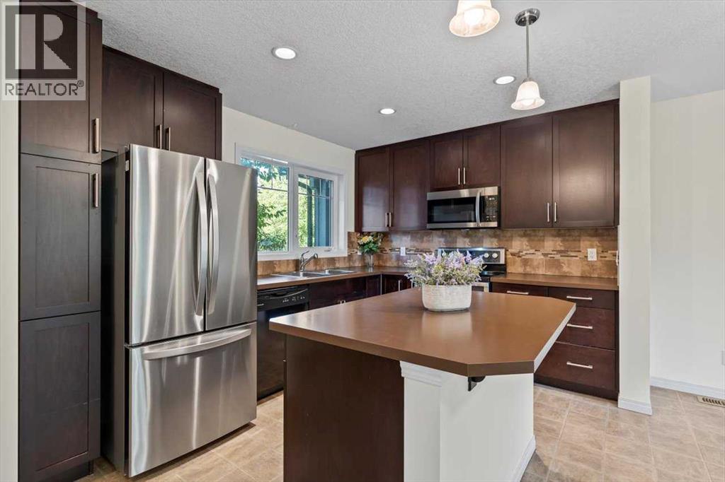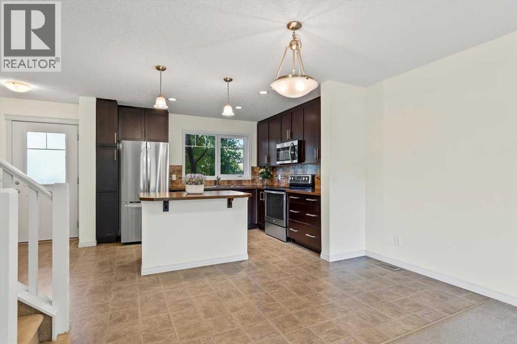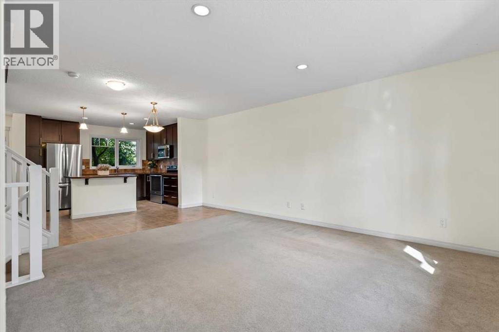 Welcome to Riverside Townhomes — a vibrant and beautifully maintained community, ideally located just steps from scenic walking trails, lush parks, and all your favorite local amenities. This upgraded 3-bedroom, 3-bathroom townhome with a fully finished basement blends style, comfort, and everyday functionality.Main Floor VibesStep into a bright and open-concept main floor featuring a sun-filled living room, spacious dining area, and a modern kitchen that’s ready to impress — think tons of countertop space, stainless steel appliances, and plenty of cabinetry. You'll love the updates too: the fridge and hot water tank were replaced in 2022, and the microwave/hood fan and stove are brand new as of 2025. A conveniently located half bath and direct access to a cozy front patio (overlooking a charming tree-lined street) round out the main level.Upstairs RetreatUpstairs, you’ll find three generously sized bedrooms, including a primary suite complete with a walk-in closet and private 3-piece ensuite. A second full bathroom and handy linen storage add extra convenience.Fully Finished Basement GoalsThe professionally finished basement is perfect for relaxing or entertaining and includes:• A spacious rec room — great for movie nights, workouts, or play• A versatile flex room with a closet and egress window — perfect as a guest room, office, or hobby space• A modern 3-piece bathroom with a glass shower• A dedicated laundry area with Samsung washer/dryer and additional storageOutdoor LivingStart your day with coffee on the private front porch overlooking green space, or unwind in the fenced backyard patio shaded by mature trees — ideal for weekend BBQs or evening relaxation.Parking & PerksThis unit comes with two titled parking stalls right out front. The complex is professionally managed and impeccably maintained, so you can enjoy peace of mind. With schools, shopping, and transit all just minutes away, this location truly has it all. (id:53676)
