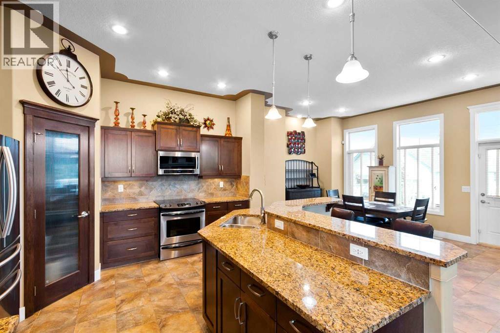 DON'T LET THE EXTERIOR FOOL YOU, STEP INSIDE AND BE AMAZED! This home is full of surprises with its spacious layout, and thoughtful details, that make it perfect for a growing family. Offering over 3,600 sq ft of finished living space, a fully developed walkout basement, and soaring 10 ft ceilings on the main level, this home has a layout designed for comfort and entertaining. The main level greets you with a grand foyer and open staircase, flowing into a bright living room featuring hardwood floors, custom built-ins surrounding a cozy gas fireplace, and large windows that fill the space with natural light. The kitchen is a chef’s dream with granite countertops, warm wood cabinetry, a walk-in pantry, and a large central island, perfect for entertaining. The dining area flows seamlessly out to an upper deck, perfect for morning coffee or summer BBQs. Upstairs, the vaulted bonus room provides a flexible space for movie nights, or a quiet retreat. Two generously sized bedrooms, a full main bath, and a large laundry room with abundant cabinetry and storage. The primary suite is a private oasis featuring vaulted ceilings, a charming window bench, spa-like ensuite with soaker tub and separate shower, and a walk-in closet. The fully finished walkout basement adds a 4th bedroom, full bathroom, ample storage and a large family room with direct access to your backyard sanctuary. Mature trees, an exposed aggregate patio, and a dog run make this space as functional as it is inviting. Additional perks include central A/C, a garage with a generous amount of storage, and a location on a quiet cul-de-sac. Living in King’s Heights means enjoying scenic walking paths, nearby playgrounds, excellent schools, and convenient access to shopping, restaurants, and commuter routes This home truly must be seen to be appreciated! (id:53676)