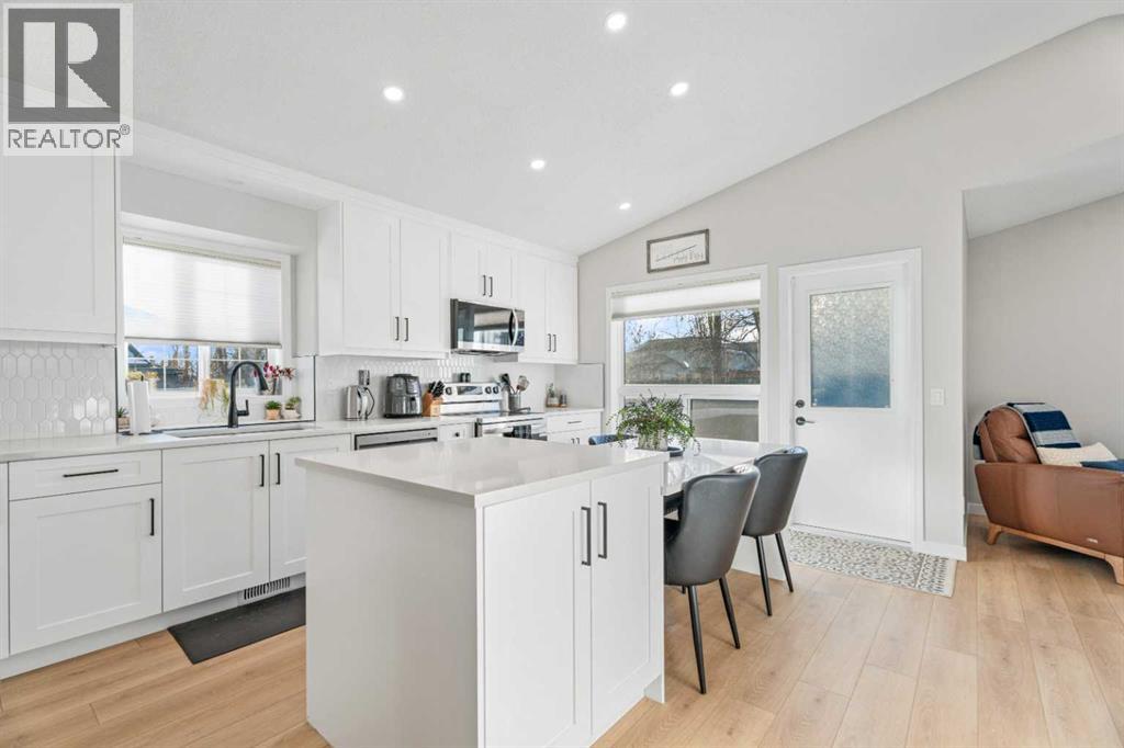 Welcome to this beautifully updated 3-bedroom, 3-bathroom family home nestled in the highly sought-after Rocky Ridge community! Step inside and be greeted by a bright, open-concept living area featuring fresh paint throughout, brand-new luxury vinyl plank flooring, and all-new modern blinds that perfectly frame the large windows. The heart of the home – a stunning gourmet kitchen – boasts sleek quartz countertops, brand-new stainless steel appliances, soft-close cabinetry, and a spacious island perfect for casual meals or entertaining. All the bathrooms have been completely renovated with contemporary finishes, including new vanities, stylish tile work, and brand-new toilets for that fresh, move-in-ready feel. Comfort is guaranteed year-round with a brand-new high-efficiency furnace and brand-new central air conditioning. Additional recent upgrades include updated plumbing and electrical and a convenient new natural gas line run directly to the backyard – ready for your dream BBQ setup. The fully finished basement offers a huge recreation room, the fourth bedroom (or ideal home office/guest suite), plenty of storage, and a laundry area with new washer and dryer. Outside, enjoy the west facing private fenced backyard with a large deck, mature trees, and plenty of room for kids and pets to play. The attached double garage, extra-wide driveway, and quiet location add the finishing touches to this turn-key property. With every major system recently replaced or upgraded – including the roof (2023), windows, furnace, central AC, and more – this home truly offers worry-free living in a fantastic location close to parks, schools, shopping, and transit. Pride of ownership shines throughout – this one won’t last! Schedule your private showing today. (id:53676)