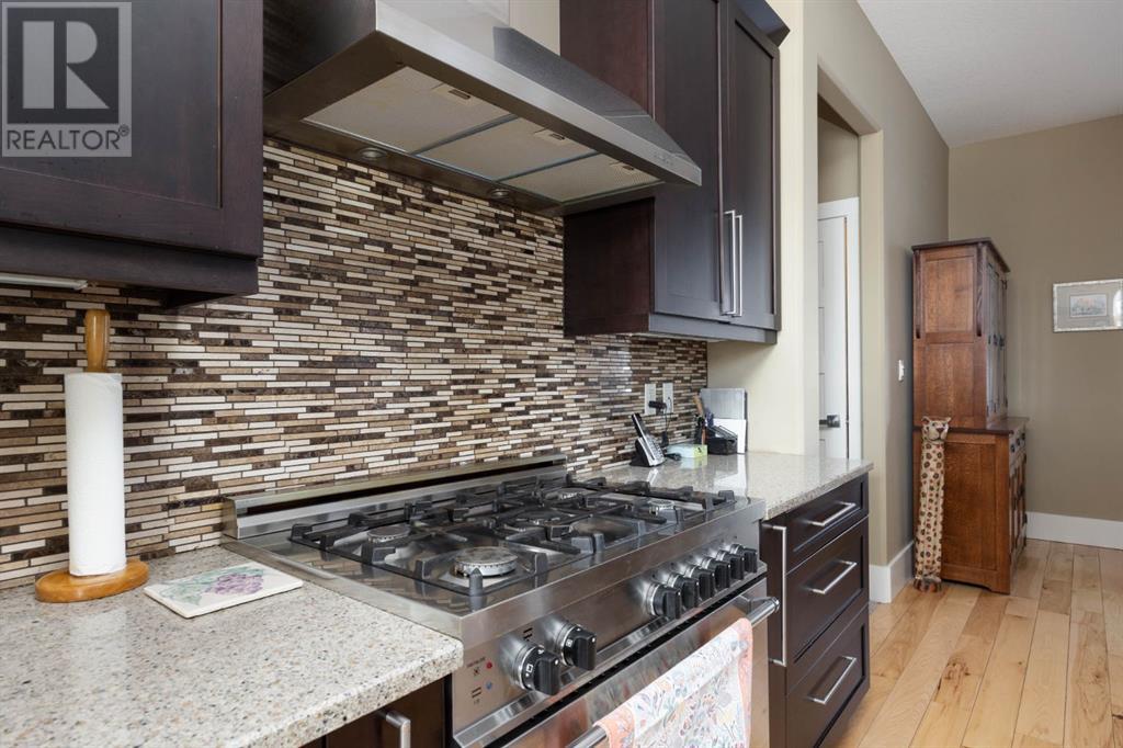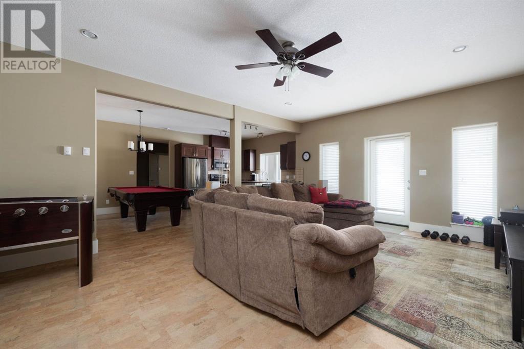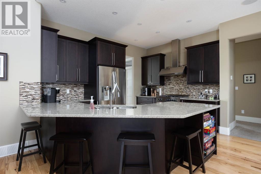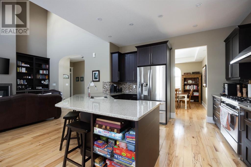 117 Sandpiper Bay- This absolutely stunning fully developed WALK-OUT BUNGALOW is situated on a massive pie shaped lot with a DOUBLE car and a TRIPLE car GARAGE with RV parking. Approaching your home you will be greeted with gorgeous curb appeal, stone and stucco exterior finishings leading you into your oasis. Inside you oversized foyer allows extra storage with two closet areas leading you to a grand entrance to your open concept floor plan, the living room is oversized with an abundance of natural lighting, vaulted ceilings, and large windows help emphasize the beautiful hardwood finishings, built-in bookcases, and double sided fireplace. The kitchen finished with dark cabinets, granite countertops, and an oversized pantry area, a gas stove, and breakfast nook and a beautiful formal dining room; giving you lots of space for entertaining. Not to mention direct access to your massive deck overlooking your large backyard. Your main floor offers over 2400 ft.² with five oversized bedrooms including your primary suite which is equipped with a fireplace, a five piece en suite, including a separate shower and double sinks, as well as 2 WALK IN CLOSETS. The main floor also includes a large laundry room with built-in cabinetry and they sink area, two more full four piece bathrooms with granite countertops, ceramic tile flooring, and beautiful, solid wood cabinetry. Your WALK OUT basement is fully developed with a LEGAL SUITE but definitely can be utilized as extra entertainment/family space. In the basement, you will find high ceilings, in floor heating,lots of natural lighting, 3 Large bedrooms, a large kitchen area with similar finishings as the upstairs, a pool table/ games area, oversized rec room/living room with cork laminated flooring leading you to a covered patio area. The basement also includes a cold room, a full bathroom, large laundry room and there is no shortage of extra closet space throughout. This home is an absolute must see!! Pride of ownership shines t hrough and is sure to impress; call today for your private viewing. (id:53676)