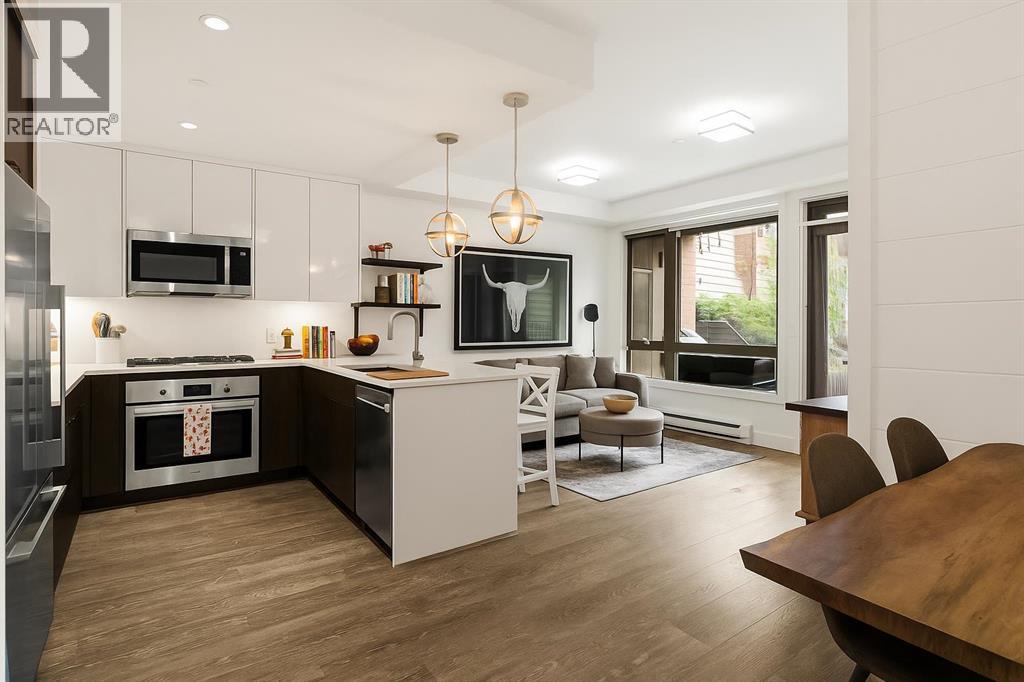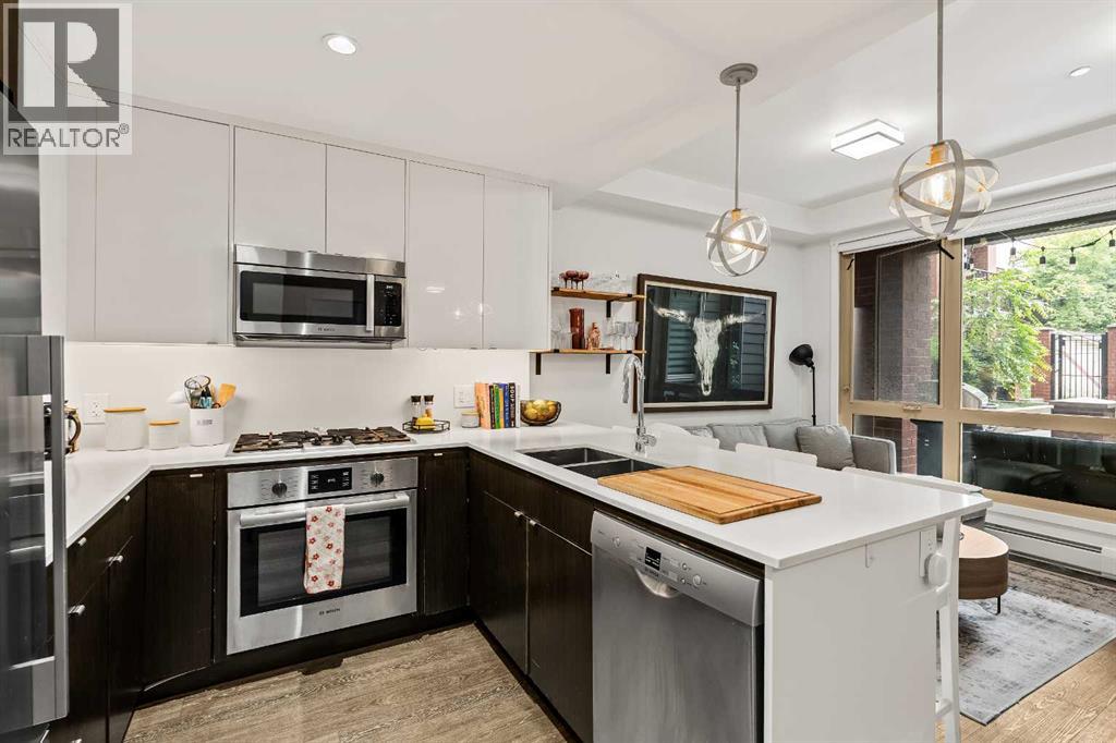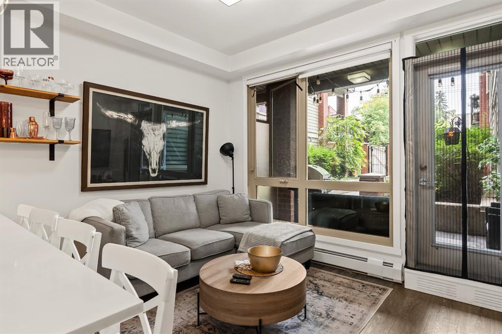 Discover why this main-floor condo in Mission is one of Calgary’s most desirable spots for vibrant city living. With its townhouse-style layout and private gated patio, this home is perfect for young professionals or couples seeking modern convenience.Inside, a bright open-concept floor plan seamlessly connects the kitchen and living area—ideal for entertaining. The full-size kitchen features stainless steel appliances, island seating for four, and ample counter space. The living area opens directly to the patio and secured courtyard, an excellent feature for pet owners or those who love an indoor-outdoor lifestyle.The primary bedroom includes a walk-in closet and private access to the 4-piece bath. The functional den offers versatility as a guest room or home office. Added conveniences include in-suite laundry with a new washer and dryer (2024), a titled parking stall, and a large separate storage unit.Located steps from 17th Avenue's and 4th Street's shopping, dining, and nightlife, and minutes to the Repsol Centre, Elbow River pathways, and downtown core, this condo delivers unmatched walkability and an effortless urban lifestyle. (id:53676)