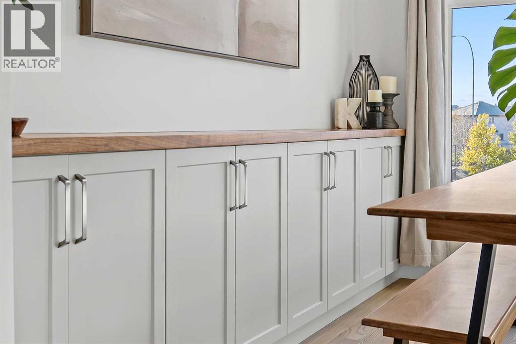 Welcome to this beautifully upgraded 2-bedroom plus flex room, 2.5-bath townhome where thoughtful design and exceptional craftsmanship shine through every detail. Set in the coveted Les Jardins community next to Quarry Park, this home blends stylish living with low-maintenance ease — surrounded by French-inspired gardens, lush green space, and walkable convenience.Step inside and immediately feel the difference — a light-filled, open-concept plan enhanced by soaring ceilings, wide plank hardwood flooring, abundant custom millwork, and purposeful upgrades throughout. The kitchen features extended cabinetry with a matching sideboard and maple countertop, custom pantry shelving, and a redesigned island with added drawers and a full backboard for extra storage and style.The entryway and laundry room continue the custom theme with a built-in coat closet, maple shelving, laundry countertop, and drying rod — all tailored for smart everyday living. Unlike others you’ve seen, just off the heated attached garage you’ll find a versatile main-level office or flex room with its own private entrance — perfect for a home-based business, gym, or creative studio. This added flexibility makes the home ideal for modern lifestyles and work-from-home comfort.Meticulously cared for with fresh paint (2023), A/C serviced (Sept 2024, barely used), carpets and vents cleaned (Sept 2025), and filters (furnace, Lifebreath, and humidifier) changed quarterly. Technology and convenience abound with full Alexa smart-home integration controlling lights, music, doorbell, heating, and air — plus pre-mounted TV wiring, a wireless Ring camera, and solar panels on each unit. The attached heated garage even features hot and cold water hookups, perfect for year-round use.Outside, life at Les Jardins feels like a retreat — enjoy 70,000 sq. ft. of manicured gardens, a gym, community gardens, outdoor lounge areas with umbrellas and fire pits, and even a dedicated dog play park near the underground ent rance. Everything you need is right here.This home perfectly balances luxury, practicality, and peace of mind — all in one of Calgary’s most thoughtfully designed communities. Come experience the beauty, the care, and the lifestyle that truly set this one apart. You won’t be disappointed. (id:53676)