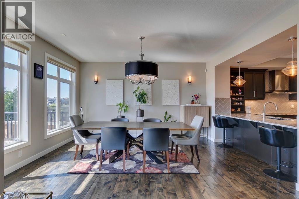 TRANQUIL VIEWS OF THE POND | FULLY DEVELOPED 5 BDRM HOME WITH AN ABUNDANCE OF UPGRADES | NO NEIGHBOURS BEHIND YOU | This gorgeous home is nicely located on a quiet street, featuring a south backyard with no neighbours behind you & has a long list of fabulous upgrades! The main level, bright with an abundance of natural light, welcomes you in to a large foyer with oversized tile flooring & opens to a spacious & inviting floorplan. The gourmet kitchen showcases a ceiling detail bulkhead, full height cabinetry in a rich dark tone that is contrasted with the soft, neutral arabesque custom tile backsplash & elegant granite countertops. The stainless steel appliances include a sleek ceramic cooktop & built-in oven & microwave; there is a central island as well as a peninsula style island making this kitchen not only stunning but also highly functional…plus there is a walk-through pantry! The peninsula island offers an eating bar & overlooks the large dining area that opens to the sunny backyard. Finished with beautiful hand-scraped hardwood flooring throughout the living & dining areas, while the living room features a stylish gas fireplace with raised hearth…this space is warm & inviting, creating a perfect atmosphere for quiet family time or entertaining guests, offering views of green belt & pond! Completing this main level is a private den with sliding pocket doors. Upstairs is sure to please as well…there is a generous sized bonus room with built-in dry bar with beverage fridge; the sliding barn door creates an ideal separation for the “kid’s area” where you will find 3 bedrooms, separated by a 5pc bathroom with dual sinks, as well as a built-in homework station! The Master bedroom, located at the rear of the home, offers fantastic views of the pond & has a lovely spa-like ensuite…freestanding bathtub with a modern full height subway tile feature wall, dual vessel sinks, & custom tiled shower with 10mm glass…plus a walk-in closet with custom built-in organi zers! You will enjoy the convenience of the upper laundry room with expansive counter space & lower cabinets! The lower level, professionally finished, is host to a huge open family/rec room, 5th bedroom & full bathroom. This home is also wired with in-ceiling speakers on all 3 levels, central A/C…plus is pet-free & smoke-free! The south backyard can become your private oasis…fully fenced & landscaped with a full-width skirted deck…and no neighbours behind! Enjoy this amazing home in a desirable 4 season community that offers great access, endless shops, restaurants & services…plus nearby community schools! (id:53676)