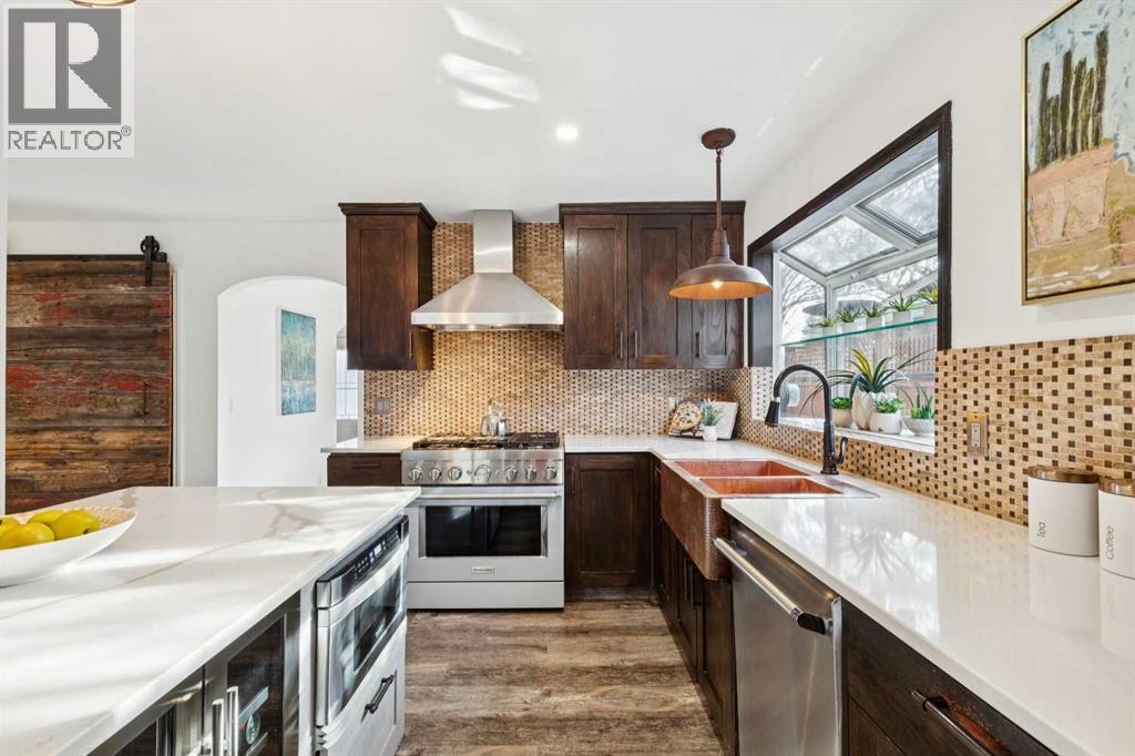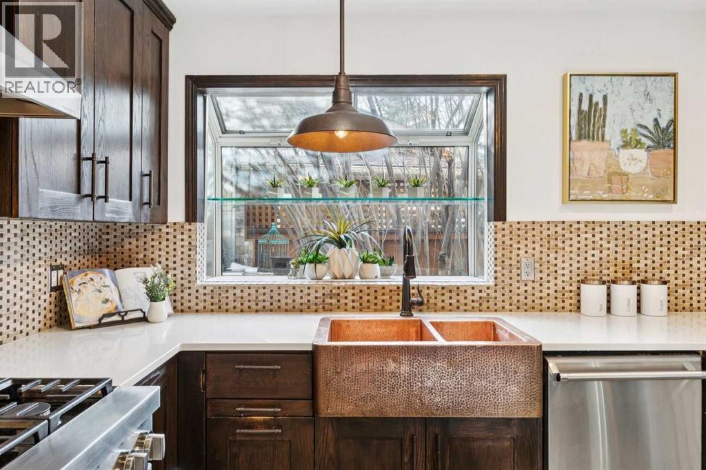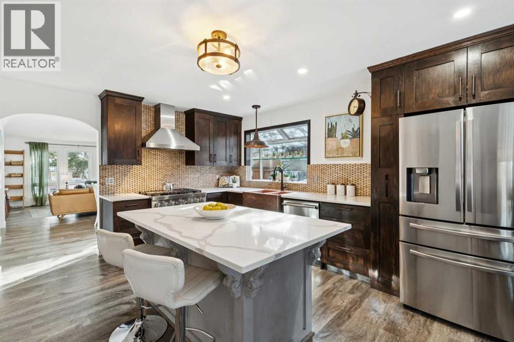 MIDNAPORE LAKE ACCESS | 4 BEDROOMS | 2 PRIMARY SUITES | STEPS TO LAKE |Looking for a character home with something truly special? Just ONE BLOCK FROM MIDNAPORE LAKE, this unique property blends charm, flexibility, and lifestyle in one of Calgary’s most loved lake communities. The living room is filled with NATURAL LIGHT from large windows, creating a warm and welcoming space to relax. The dining area flows seamlessly from the kitchen and features FRENCH DOORS that open directly to the backyard, making indoor-outdoor entertaining easy. The updated kitchen features STONE COUNTERTOPS, a 6-BURNER GAS RANGE, built-in microwave, beverage cooler, COPPER SINK, and custom cabinetry that makes storage easy and accessible. The PANTRY showcases one of the home’s most distinctive features — a repurposed barn door crafted from wood from the historic Burns & Co. grain elevator near High River. The family room sits just off the kitchen and features a classic BRICK GAS FIREPLACE, creating a comfortable space for everyone. The main level also offers a 2nd PRIMARY BEDROOM WITH ITS OWN ENSUITE, providing flexibility for guests, multi-generational living, or a convenient main-floor retreat. An additional bedroom offers an adjoining FLEX ROOM, creating a versatile kids’ space for any age, that’s also perfect as a home office. Upstairs, the ENTIRE SECOND LEVEL IS A PRIVATE PRIMARY RETREAT. This spacious escape features a large bedroom, WALK-IN CLOSET, and 4-PIECE ENSUITE, along with its own private exterior entrance, making it ideal for guests, extended family, or a quiet personal sanctuary. The FULLY DEVELOPED BASEMENT expands the living space with the 4th BEDROOM, a large recreation room, gym/workshop area, laundry and storage — plus a SAUNA. Step outside and discover a BACKYARD DESIGNED FOR ENTERTAINING. Enjoy the large deck with pergola, built-in BBQ, and multiple patio areas, creating a private outdoor space perfect for summer gatherings or quiet evenings. OVERSIZED DOUBLE DETACHED GARAGE . Living in MIDNAPORE means enjoying YEAR-ROUND LAKE ACCESS with swimming, paddleboarding, skating, fishing, tennis courts, and community events — all just minutes from your door. If you’ve been searching for a HOME WITH CHARACTER, SPACE, AND LAKE COMMUNITY LIVING, this Midnapore property offers something truly unique. (id:53676)