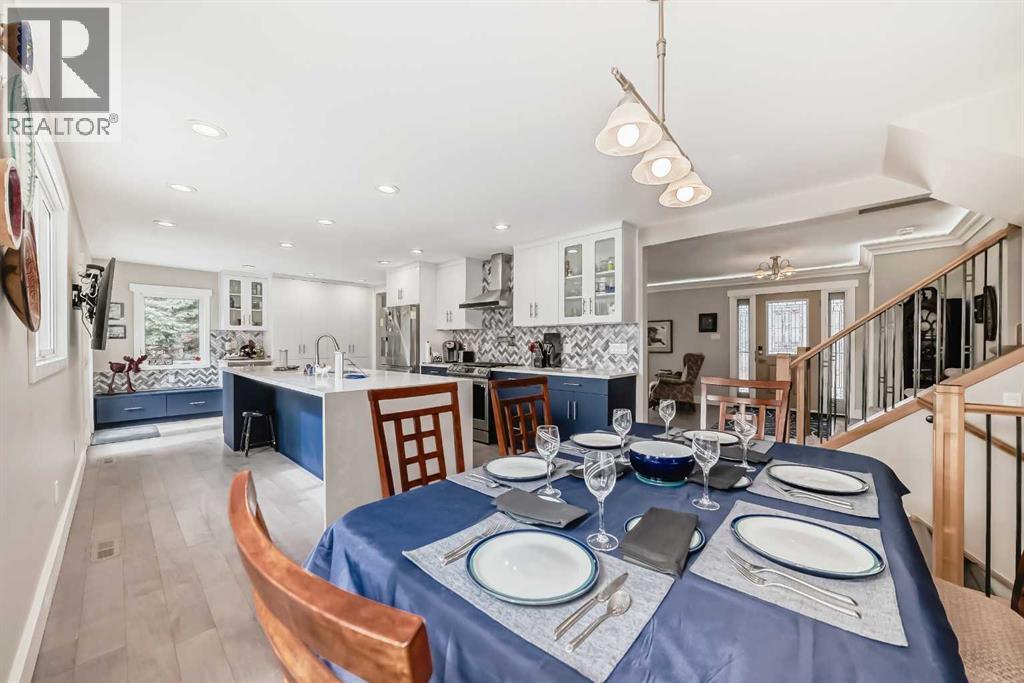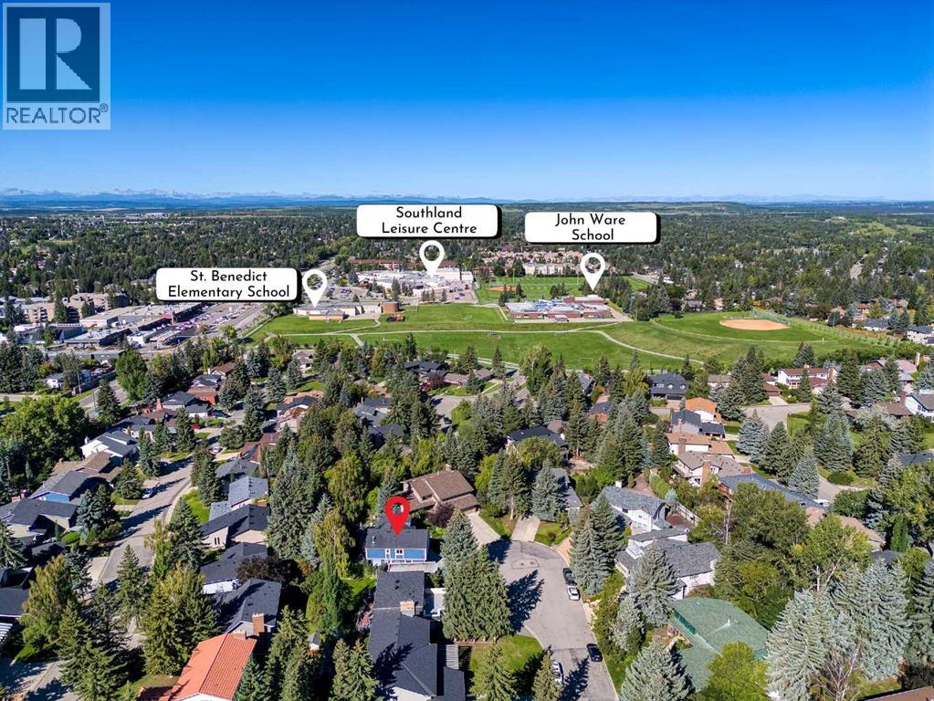 Rarely available in this prestigious location! Come home to your unique 2 storey split home located on a huge pie lot, nearly a quarter acre with a south-southwest backyard, nestled in a quiet cul-de-sac! Enjoy the tranquility, peaceful and park-like yard with mature trees and space to play or relax near the patio stone fire pit. Renovation, with all permits in place, includes upgraded windows, smart home system, smooth ceilings throughout 3,400+ square feet of finished space, a truly stunning transformation. Enter into the main level showcasing engineered hardwood, adjacent living room with back lit crown mouldings and a raw edge, custom milled fireplace mantel complimenting the remote controlled gas fire. The expansive kitchen boasts an impressive 11' quartz island with waterfall edge, sink with touch sensor faucet, and hidden USB, electrical outlets and wireless phone charger. High-end stainless steel appliance package includes a gas range with pot filling faucet, dramatic hood fan, separate refrigerator and wine fridge, complimented with detailed backsplash. Featuring soft close cabinet hinges and plenty of pantry storage, the kitchen is naturally sunlit with French doors and beautiful windows. Entertain guests with the open concept dining overlooking the family room. Step down to the walkout level into the family room designed with luxury vinyl plank flooring and multiple focal points being the breath taking stonework, gas fireplace and patio door. Conveniently the guest bathroom and laundry are near the garage entrance. Head upstairs to the primary wing redesigned with a vast sitting area, private balcony and luxurious en-suite! Rejuvenate with heated tile flooring, huge walk-in shower equipped with rain shower head and multiple jets or soak in the stand alone bathtub. LED mirrors rimmed with lighting soothe the mood over the twin sinks. The primary wing expands into the loft with a dormer and skylight allowing in rays of sunlight. Smart home lighting is cont rolled from the bedside switch all the way to the en-suite! The upper level has two more large bedrooms, a bonus room and full bathroom also with heated tile flooring. The fully finished basement has daylight pouring into the recreation room, another full luxury bathroom next to the fourth bedroom, den, workshop and utility room. Enjoy indoor / outdoor living with the low maintenance deck overlooking the yard and patio with spaces to host large gatherings. Double garage with twin doors, plenty of parking for your family and friends! Close proximity to trails, Southland Leisure Centre, Rockyview Hospital, Heritage Park, Glenmore Park, shopping and sought after schools! Book your showing today! (id:53676)