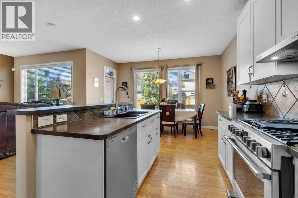 If you’re searching for a spacious and modern two-storey home with an open concept design, air conditioning, bonus room, breakfast bar, large recreation room, and a west-facing backyard, look no further—this property has it all! And with the following upgrades you can’t go wrong: Upgrades in the last 2 years include: hot water tank, high efficiency furnace, new main entrance door, new triple pane windows on main level, refinished and repainted kitchen and bathroom cabinets and new dishwasher. With almost 2,100 square feet of living space, this home features three bedrooms upstairs, including a generous bonus room perfect for family movie nights. The open foyer leads seamlessly into the main gathering area, which includes the kitchen, dining room, and living room for effortless entertaining and everyday living. The well-organized, bright kitchen boasts a breakfast bar, corner pantry, and stainless steel appliances. Enjoy meals in the dining room, which features large west-facing windows that fill the space with natural light. The living room is highlighted by expansive windows and a gas fireplace that creates a cozy and welcoming atmosphere at the heart of the home. On the main floor, you'll find a laundry area and a half bath for added convenience, along with access to the double attached garage, which is both drywalled and insulated. Upstairs, the primary bedroom offers a four-piece ensuite and a walk-in closet. Two additional bedrooms and a four-piece bathroom provide ample space for family or guests. The large bonus room is ideal for movie nights or relaxation. The finished lower level includes a large recreation room has high ceilings, with plenty of space to add one or two more bedrooms if needed. It is also roughed in to add a bathroom. Step outside to the west-facing backyard, where you’ll find a spacious two-tiered deck with built-in seating and gas hook-ups—perfect for outdoor gatherings and enjoying summer evenings. Located in Valley Ridge, th is home offers quick access to both the mountains and downtown via Stoney Trail, providing the ideal blend of nature and convenience. Nearby amenities and endless outdoor opportunities are right at your doorstep. Don’t miss your opportunity to own this exceptional property in one of Calgary’s most sought-after communities! (id:53676)