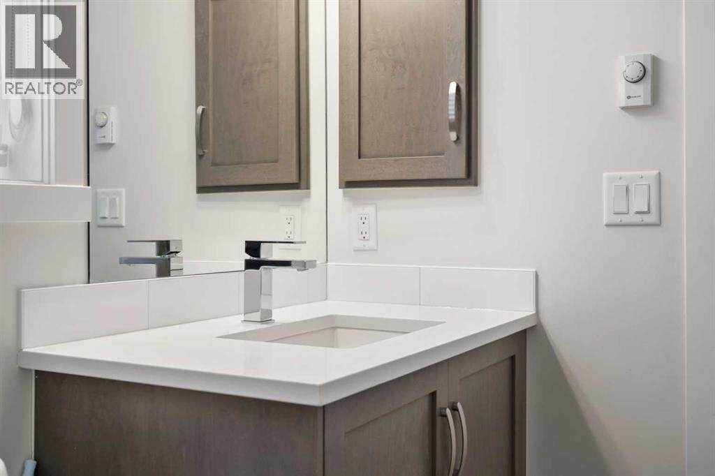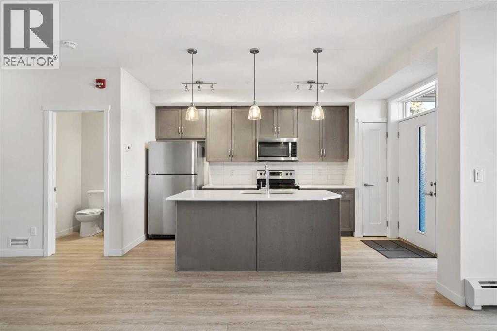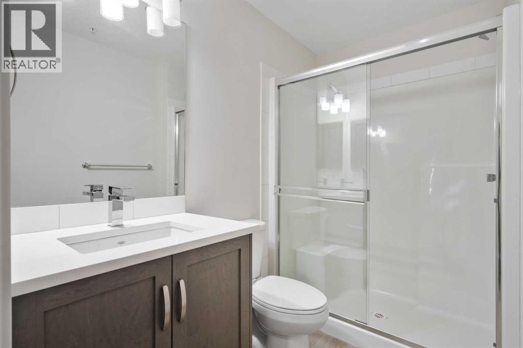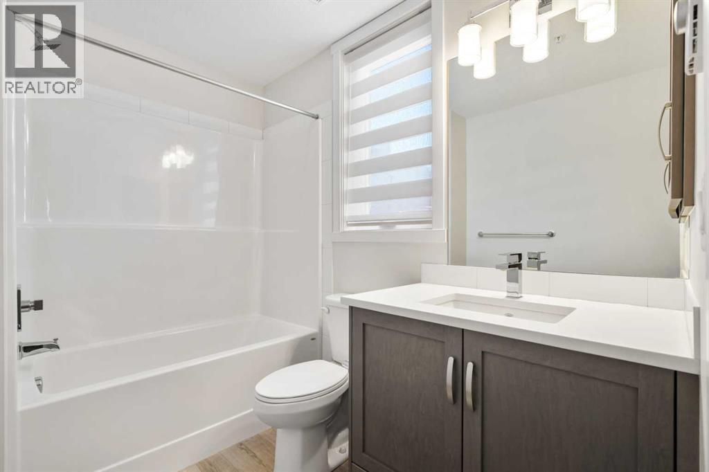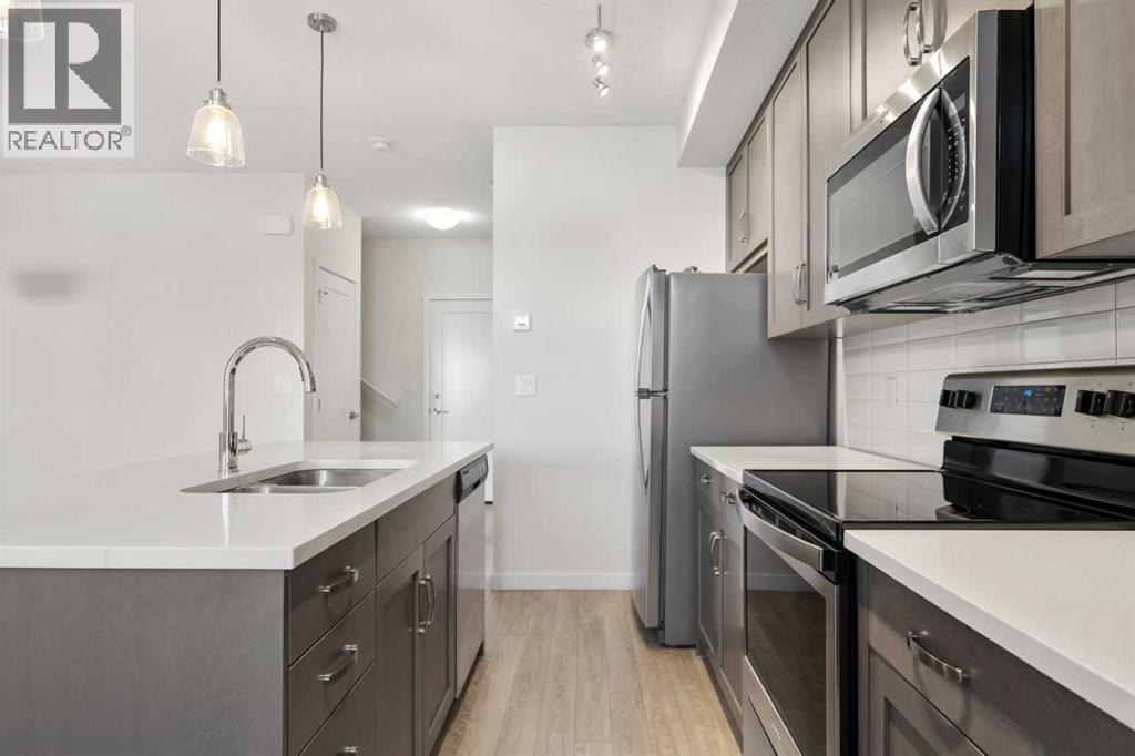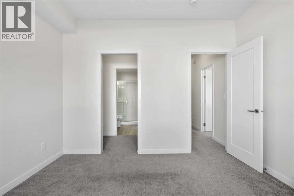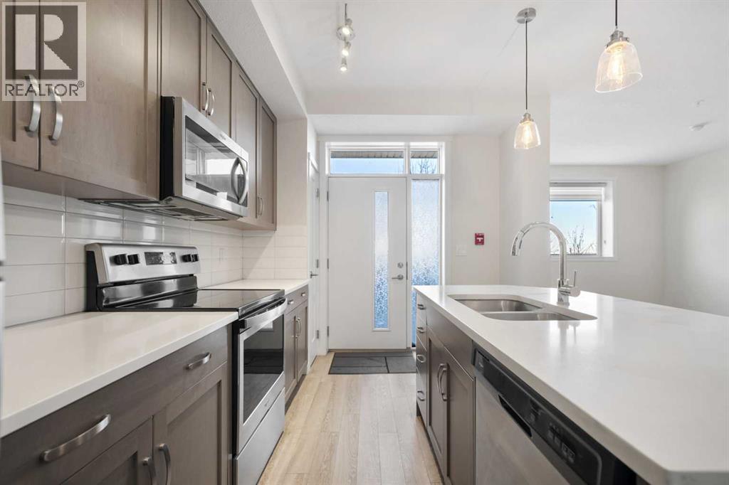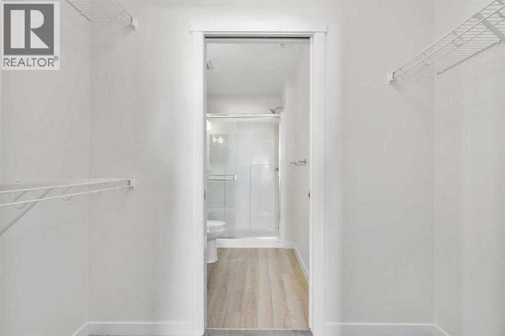 Welcome to Fish Creek Exchange in the serene Shawnee Park community! This stunning two-story residence offers over 1,200 sqft of meticulously designed living space, blending modern elegance with everyday functionality. Enter your private haven through a dedicated patio entryway that opens onto a peaceful north-facing patio, perfect for unwinding. The main floor showcases an open-concept design with impeccable finishes, including a sleek modern kitchen adorned with quartz countertops, premium stainless steel appliances, and chic wide-plank laminate flooring. A convenient 2-piece guest bathroom and a separate laundry room complete this level. Upstairs, you’ll find two spacious bedrooms, each with its own walk-through closet leading to a luxurious ensuite. The primary suite features a sophisticated 3-piece ensuite, while the second bedroom enjoys a 4-piece ensuite. An additional den/storage area on this floor offers the perfect space for a home office or creative retreat. Enjoy the convenience of titled parking and titled storage, along with a prime location just moments from the natural beauty of Fish Creek Park. Close to public transit, parks, shopping, dining, and top-tier schools, this residence delivers the perfect balance of tranquility and urban living. Your dream home awaits! (id:53676)