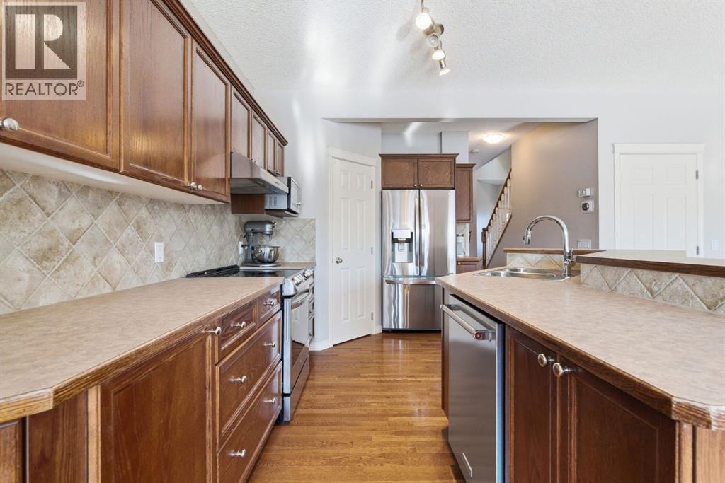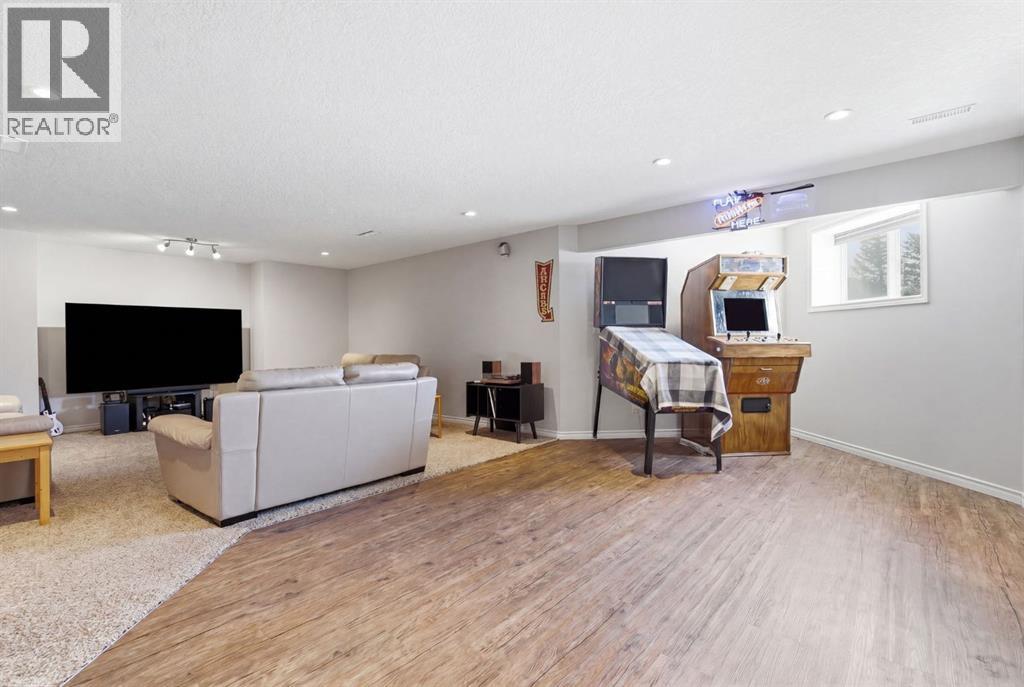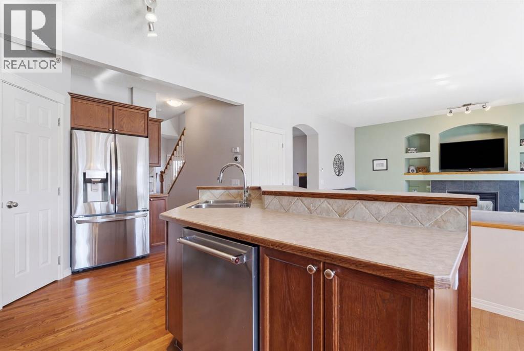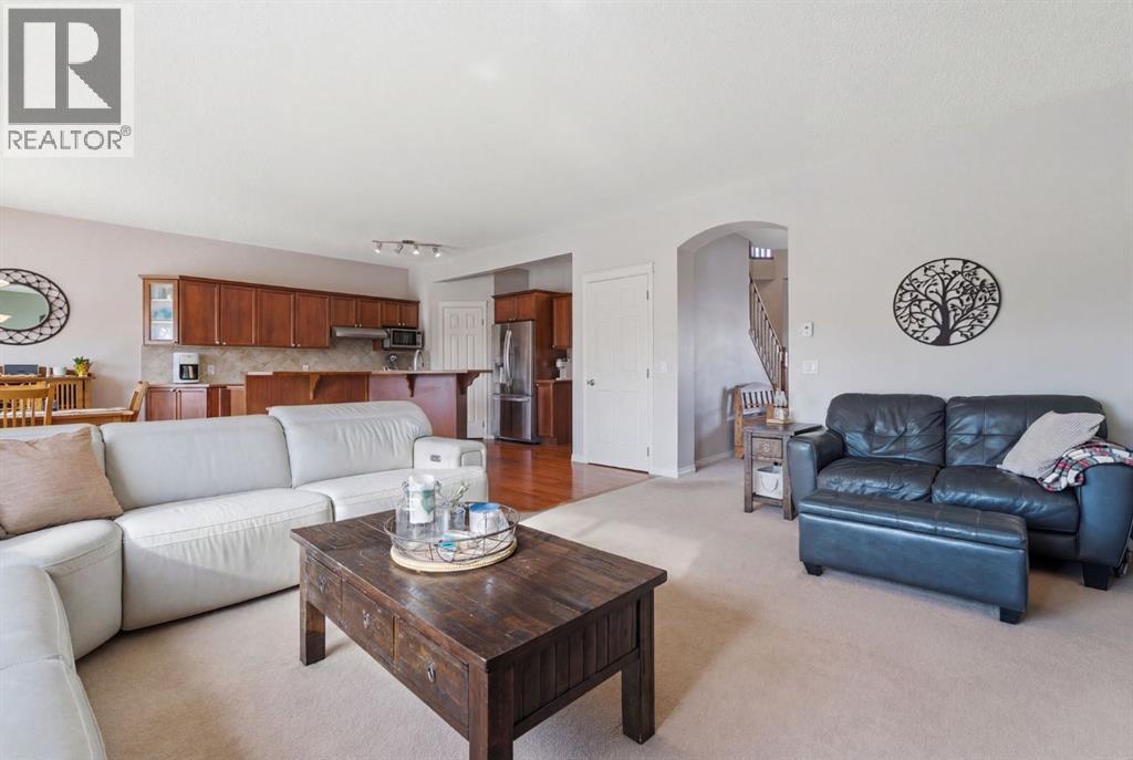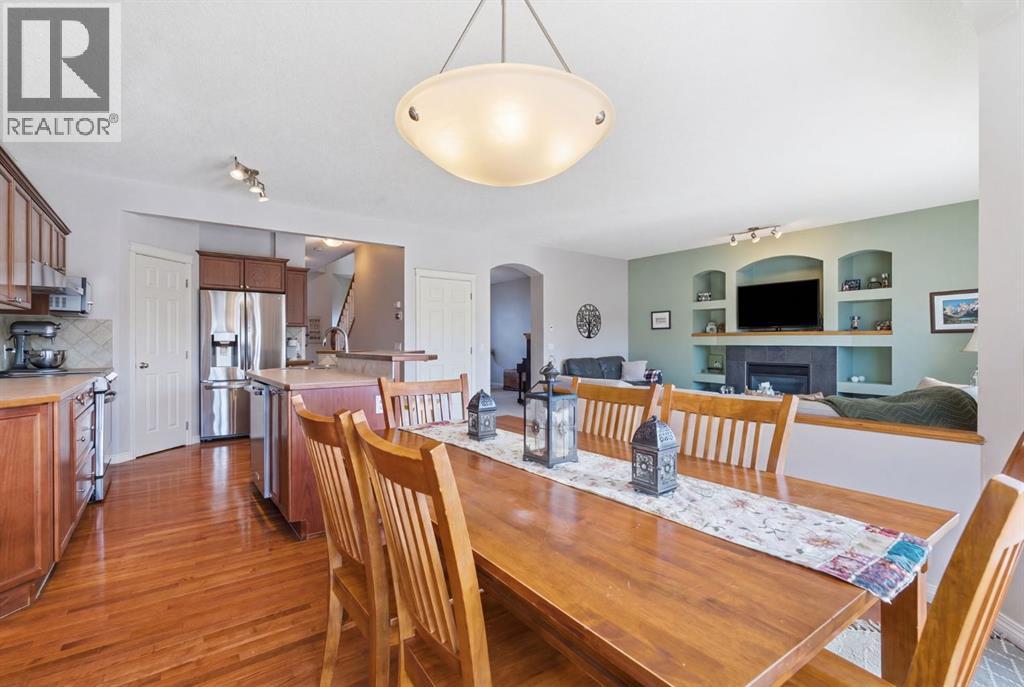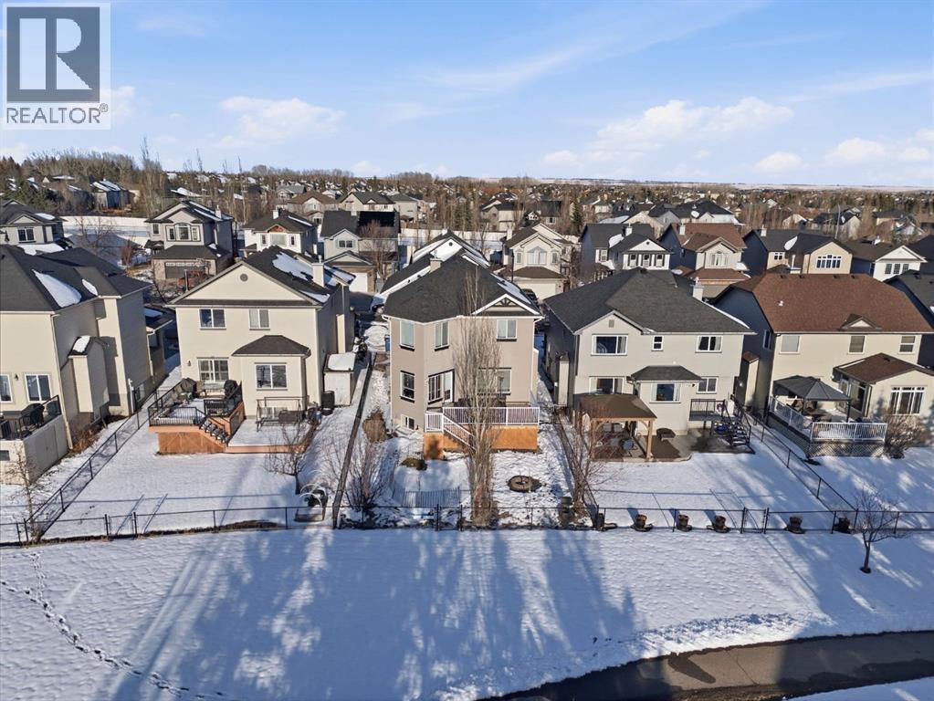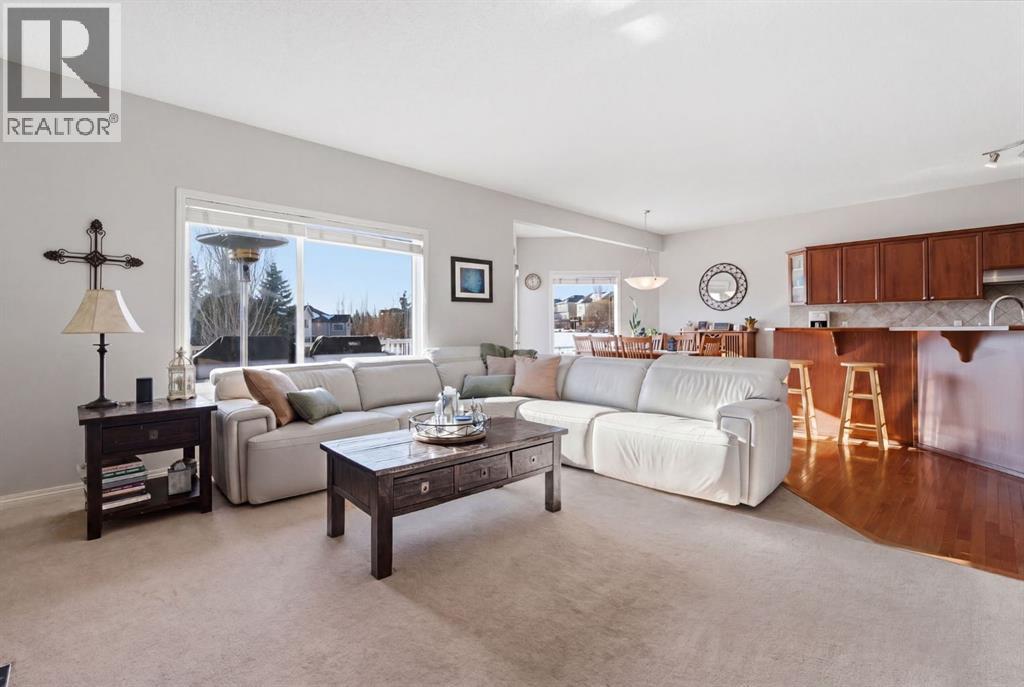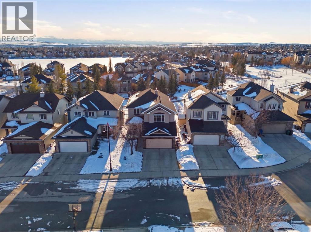 On the market for the first time. This stunning home is in the highly coveted lake community of Crystal Shores in Okotoks. This residence offers nearly 3,400 square feet of developed space, lake access, and backing onto peaceful greenspace. Upon entering, you will be greeted by soaring 9’ ceilings, an expansive floor plan and gorgeous railings! The bright and spacious main level is filled with natural light and features a thoughtfully designed layout. The kitchen is a focal point with solid wood cabinets, a timeless tile backsplash, stainless steel appliances, and a corner pantry for added storage. Adjacent to the kitchen is a sun filled dining room with direct access to your WEST BACKYARD! Enjoy the low maintenance dura deck, no neighbours directly behind you, and MOUNTAIN VIEWS. The expansive living room flows seamlessly into the dining room and kitchen making it ideal for entertaining guests. A stunning custom fireplace adds warmth and character to the living space. A versatile large den at the front of the home can serve multiple purposes such as a formal dinning room, office, children’s playroom, or additional living area. The main floor is complete with a half bath tucked away for privacy and a convenient main floor laundry room. Upstairs, the primary suite is a true sanctuary with mountain views and complete privacy. Offering a substantial closet and a spa inspire ensuite consistent of dual sinks, a large soaker tub, and separate shower. You will also find 3 generous sized bedrooms, a well appointed 4 piece main bath, and a bonus room with expansive vaulted ceilings. The bonus room is the perfect space to unwind, enjoy family time and reconnect. The lower level adds even more value and is complete with an additional bedroom, 3piece bath and inviting rec room with a bar. Additional highlights include a double attached garage, gas line on the deck, and the comforts of air conditioning. This is a rare opportunity to own a well maintained home in one of Okot oks’ most desirable communities, walking distance to four schools, and an extensive path system. Enjoy amble space, privacy, and an unbeatable lifestyle! Schedule your showing today or view the virtual tour. (id:53676)