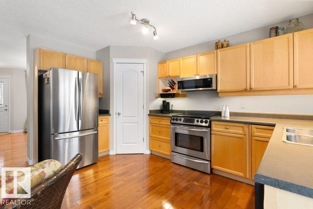 Tucked away on a quiet cul-de-sac in desirable Erin Ridge, this beautifully finished 2-storey offers warmth, space, and everyday comfort. Step inside to a welcoming formal living room that flows seamlessly into the heart of the home featuring a bright kitchen, cozy nook, and inviting family room framed by large windows that fill the space with natural light. A convenient 2-piece bath with laundry completes the main level. Upstairs offers three generous bedrooms including a serene primary retreat with a walk-in closet and private 4-piece ensuite, plus an additional full bath. The fully finished basement expands your living space with a fourth bedroom, large family room, wet bar with stove plug, 3-piece bath, and ample storage. Enjoy hardwood on the main and upper, laminate below, no carpet, plus in-floor heat in select baths. Recent updates include roof, hot water tank, and fridge, all just steps to scenic trails, parks, and amenities, plus schools and shopping close by, with quick access to major routes. (id:53676)