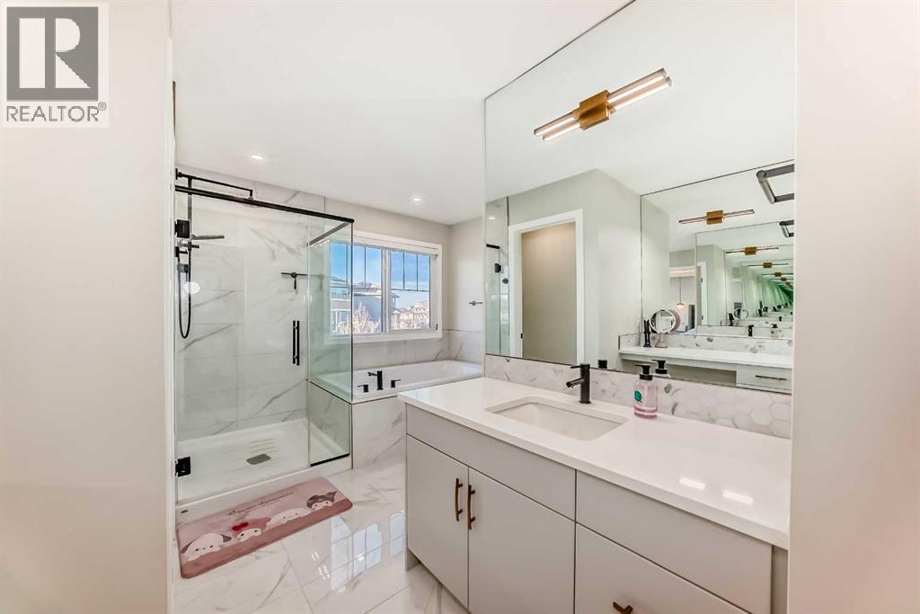 Step into luxury and sustainability with this stunning 4 bedroom, 3.5 bathroom Jayman-built masterpiece, ideally located in Mahogany—Calgary’s 6-time award-winning Community of the Year! Boasting over 3,000 SQ FT of beautifully designed living space and more than $100,000 in premium upgrades, this home perfectly blends modern elegance, comfort, and efficiency.The open-concept main floor showcases a chef-inspired kitchen with a sleek waterfall island, quartz counters, and upgraded oversized windows that bathe the space in natural light. 8-foot door frames and refined architectural details enhance the home’s elevated feel, while the primary suite offers a private retreat featuring a tray ceiling with ambient lighting and a spa-like atmosphere.Upstairs, a spacious bonus room provides the perfect space for a family lounge, media area, or home office—offering flexibility to suit any lifestyle. Every window throughout the home is dressed with Hunter Douglas blinds, including blackout blinds in all upstairs bedrooms for peaceful rest and energy efficiency.The fully finished basement extends your living area with a generous recreation space and a full bath equipped with a bidet, combining comfort and practicality for family or guests.For those who value innovation and convenience, this home features 6 rooftop solar panels for energy savings and sustainability. The garage is equally impressive with epoxy flooring, a Proslat wall hanger system, and two EV charger sockets—ideal for modern living. The exterior is enhanced by Gemstone permanent lighting installed on both the front and back, fully smartphone-controlled for customizable, year-round ambiance.Step outside to your beautifully landscaped backyard, complete with maintenance-free artificial grass and direct access to a peaceful green pathway—with no rear neighbors and serene open views that create a private oasis for outdoor relaxation.Located minutes from the Mahogany Lake & Beach Club, residents enjoy excl usive lake access, scenic walking trails, and four-season recreation. The nearby Seton Urban District offers restaurants, shopping, the YMCA, and South Health Campus, while schools, playgrounds, and parks are all close by. Easy access to Deerfoot and Stoney Trail ensures convenient commuting across Calgary.Experience award-winning design, sustainable innovation, and over 3,000 SQ FT of elevated living—welcome home to 120 Magnolia Manor SE. (id:53676)