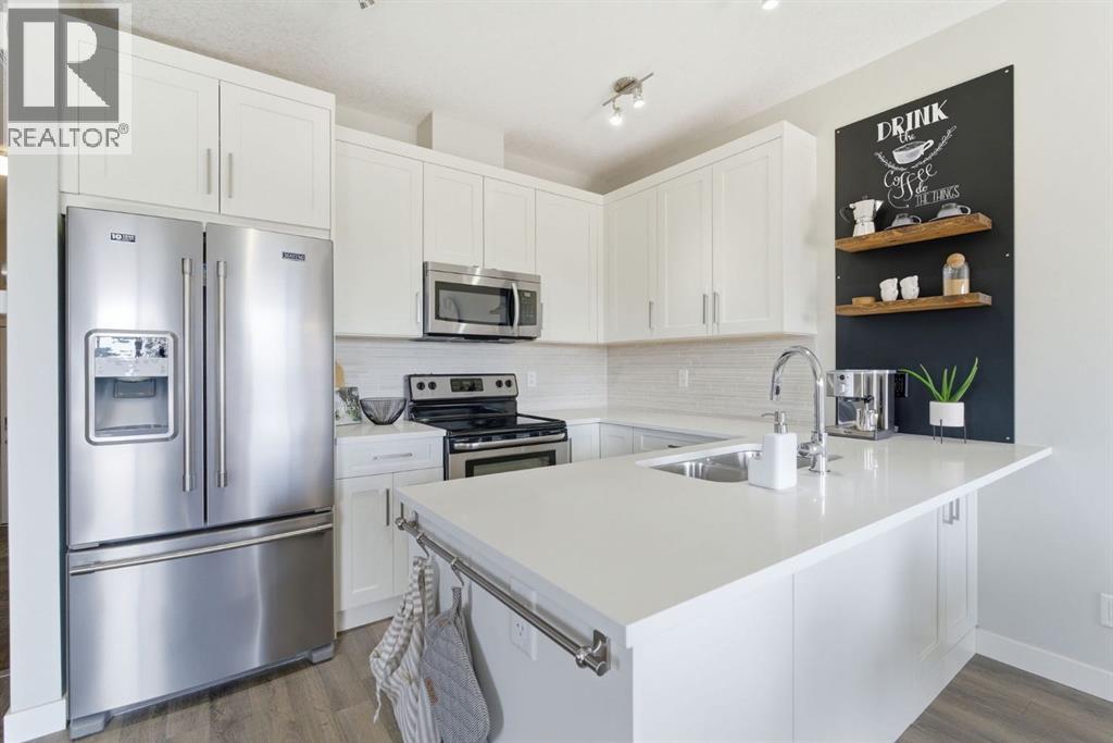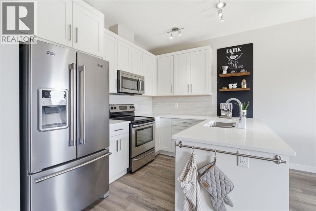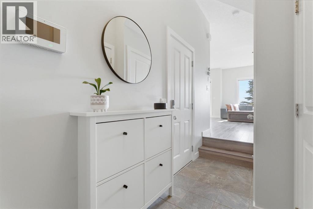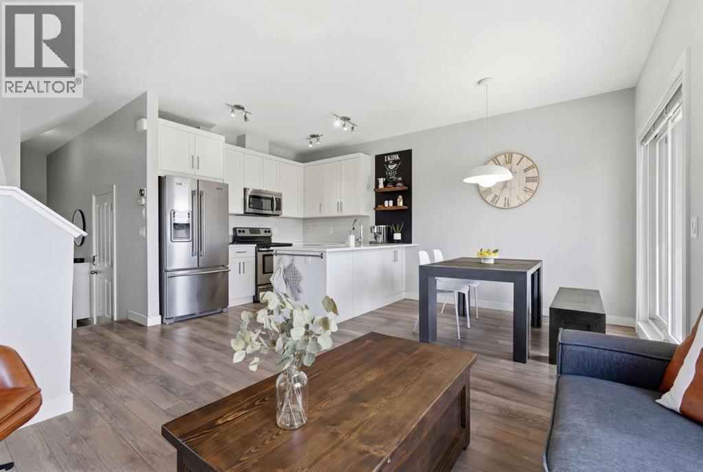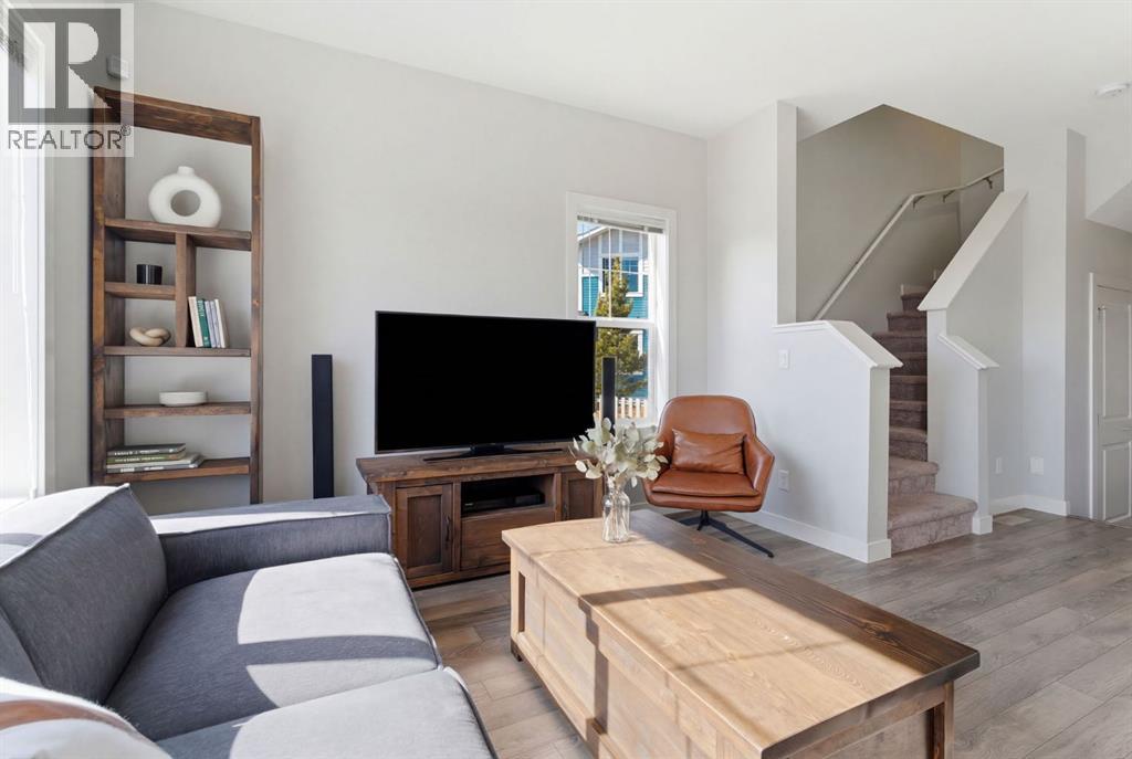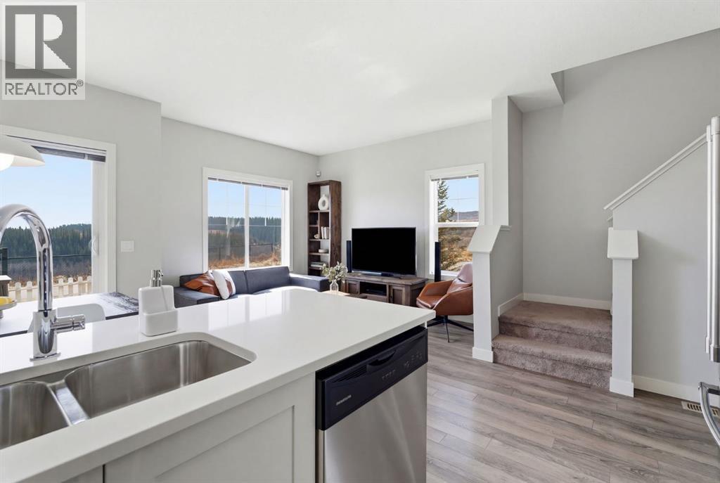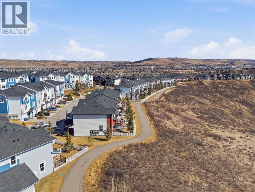 Welcome to one of Cochrane’s most coveted townhome locations—where uninterrupted views of Jumping Pound Nature Reserve and Jumping Pound Creek. Backing onto open landscape, this home offers a rare sense of privacy, peace, and connection to the outdoors that sets it apart from the rest. From the moment you walk in, your eye is drawn straight through the home to the expansive views beyond—filling the space with natural light and an immediate sense of calm. Thoughtfully designed and beautifully maintained this modern 3-bedroom home blends clean lines with warm, inviting finishes. At the heart of the home, the bright kitchen is both stylish and functional, featuring white cabinetry, quartz countertops, a contemporary backsplash - perfect for everything from quiet mornings to entertaining guests. The open-concept layout is enhanced by 9’ ceilings and vinyl flooring, and newer tile creating a seamless and elevated feel throughout. Additional convenient features such as a blackout blind in the master bedroom, Ecosmart water softener have been added to the home. Upstairs, you’ll find three bedrooms, including a serene primary retreat with an upgraded shower and walk in closet. The basement awaits your finishing touches to add additional living space and a bathroom. The attached garage will keep your vehicle dry and out of the elements or provides a perfect storage space for your hobbies and toys. Step outside to your private back deck, where a gas line is ready for summer BBQs and evenings spent soaking in the peaceful surroundings. Immaculately maintained and finished and effortlessly connected to nature, all while being close to everything Cochrane has to offer. A rare opportunity in an unbeatable location—this is the one you’ve been waiting for. (id:53676)