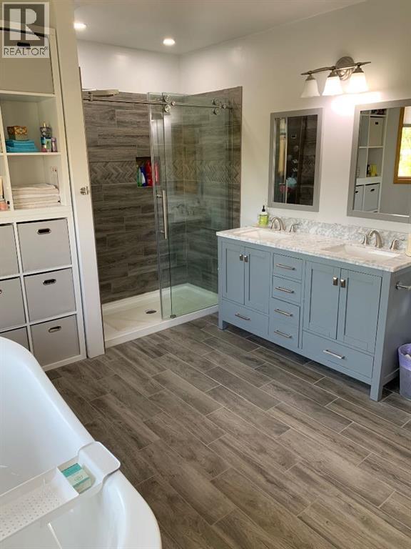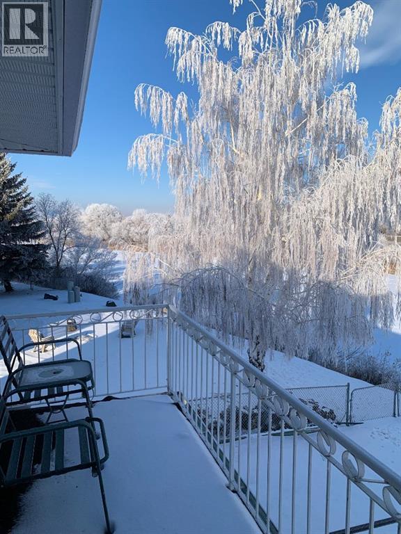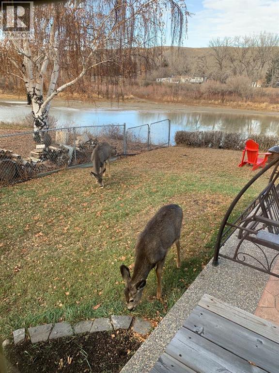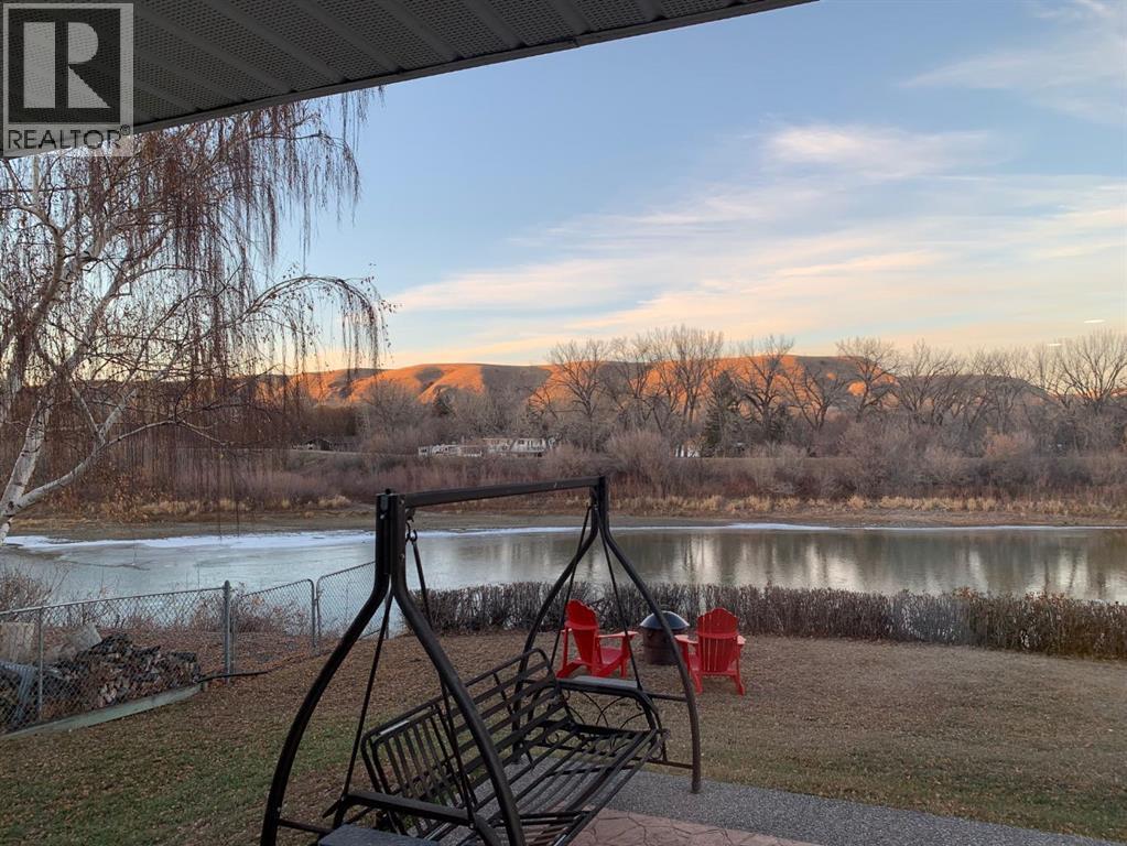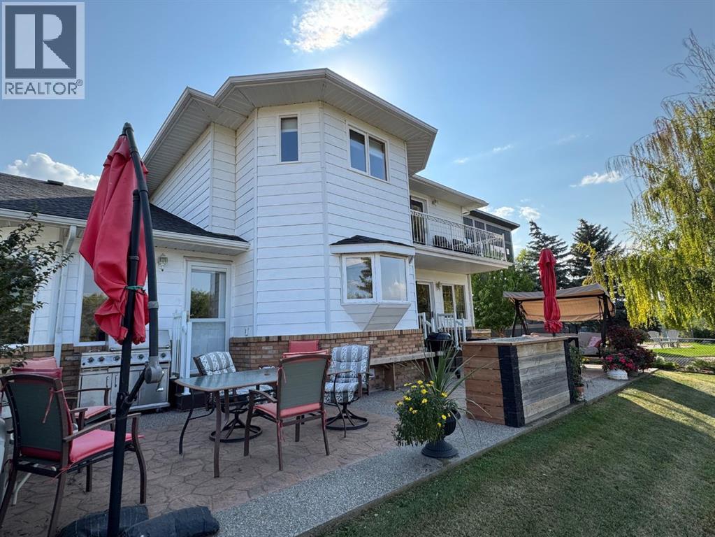 Serene riverfront living at its best - launch your kayak right from your own backyard. This spacious two storey home in a quiet and peaceful neighbourhood offers over 2,500 square feet above grade along with a newly finished basement completed in 2024. The main floor is designed for both function and comfort, featuring a bright and open living and dining room, a generous kitchen with endless cabinetry, a cozy family room with fireplace, a dedicated office, and the convenience of main floor laundry.Upstairs, the expansive primary bedroom is paired with a large ensuite, while two additional bedrooms and another full bathroom provide plenty of room for family or guests. The new basement development adds tremendous versatility with two bedrooms, a family room, and a full bathroom. Large egress windows bring in natural light, and the basement also includes laundry hookups and a fully roughed in kitchenette with a private entrance. This setup is ideal for a future legal suite or an inviting Airbnb option.The outdoor living spaces are just as impressive. Enjoy breathtaking river views from your patio while hosting summer barbecues or relaxing in the evening. Pride of ownership is clear throughout, the neighbours are welcoming, and new fibre optic internet ensures reliable high speed connectivity.This property combines space, lifestyle, and one of Drumheller’s most desirable locations, making it an exceptional opportunity for families, investors, or anyone seeking a peaceful riverfront retreat. (id:53676)