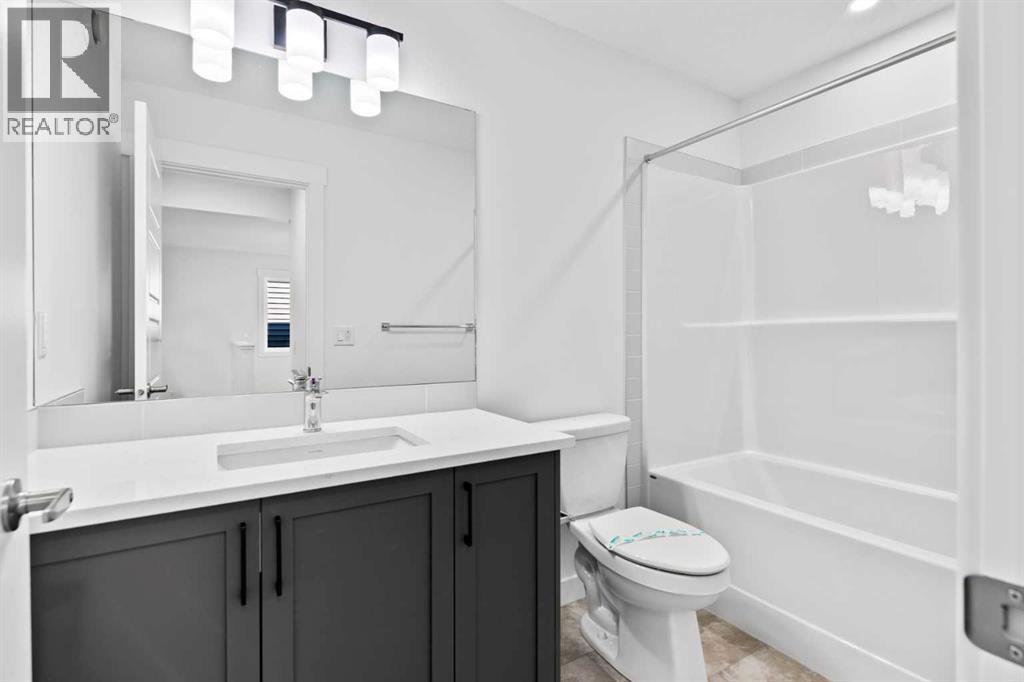 Welcome to Pine Creek – Brand New 2025 Anthem Front Drive Home! This stunning Front Drive 110 model by Anthem Properties offers modern design and thoughtful upgrades throughout. With 4 bedrooms and 3 full bathrooms, including a main floor bedroom and bath option, this home is perfect for growing families or multi-generational living.The main floor impresses with 9-foot ceilings, an open-concept upgraded kitchen featuring Level 2 cabinets to the ceiling, a chimney hood fan, built-in microwave, gas range, fridge with water & ice dispenser, and convenient garbage/recycling pullouts. Gather in the spacious living area with a sleek electric fireplace, while oversized triple pane windows fill the home with natural light. Main to upstairs, boasts stylish open railings lead to the private family spaces. With four bedrooms total, there’s room for everyone. The home also includes a 9-foot foundation basement for future development and a separate side entrance, offering potential for a suite (subject to city approval). This is a brand new, never-lived-in 2025 construction, ready for you to make it your own. Located in the beautiful community of Pine Creek, you’ll enjoy a family-friendly atmosphere surrounded by nature with easy access to Calgary’s southwest amenities. Don’t miss your chance to own a move-in ready new build loaded with upgrades! (id:53676)
