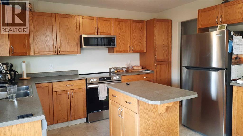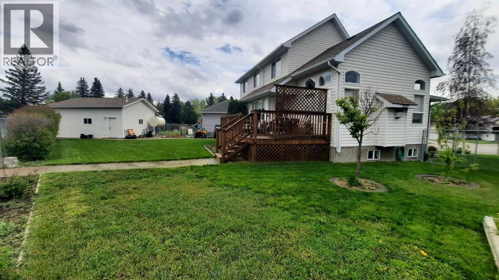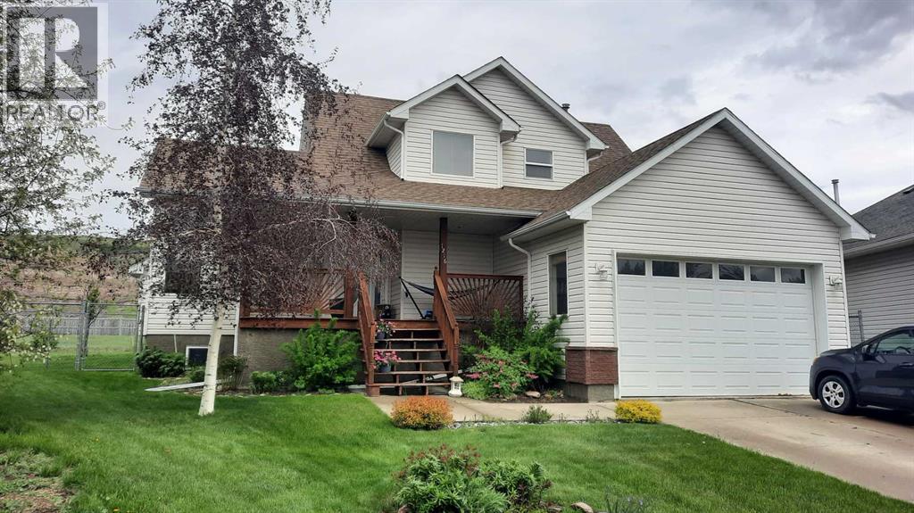 Nestled in the sought after Marshall Estates in Midland. This 2 storey home features covered front porch, Great room with high ceilings, gas fireplace with mantle and loads of Natural light. Eat in kitchen with stainless appliance package, pantry and access to back deck, gas BBQ, fenced yard with garden spot and shed. Main floor also features powder room, laundry and primary bedroom with 4pc ensuite and walk in closet. Grand staircase will take you up to 3 generous sized bedrooms, and main bathroom with walk in shower. Downstairs a large Rec room with built in cabinetry and gas line for 2nd fireplace. 5th bedroom, rough in for bathroom, and good storage. Attached Garage AND A Detached heated garage. Loads off off street parking. With stunning Badlands Views and no neighbours behind, Don't Miss Out ! (id:53676)
