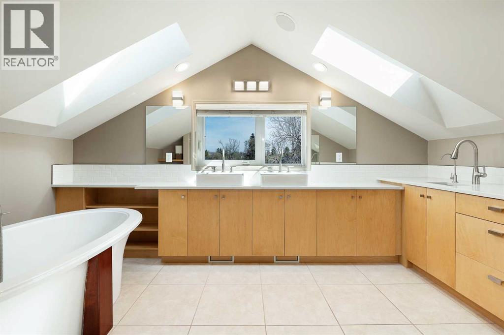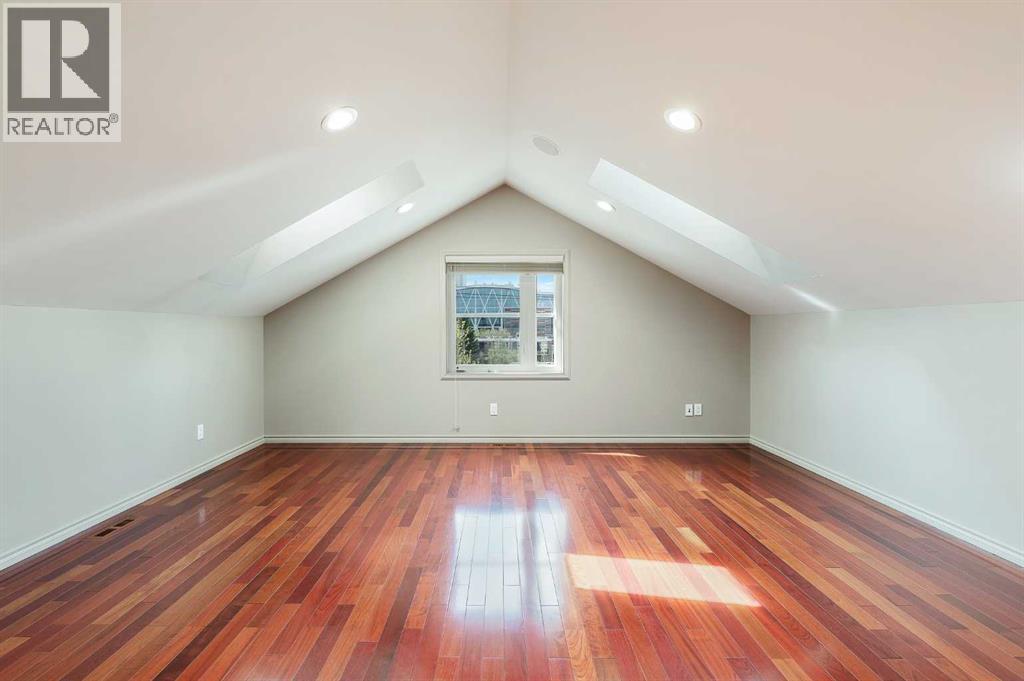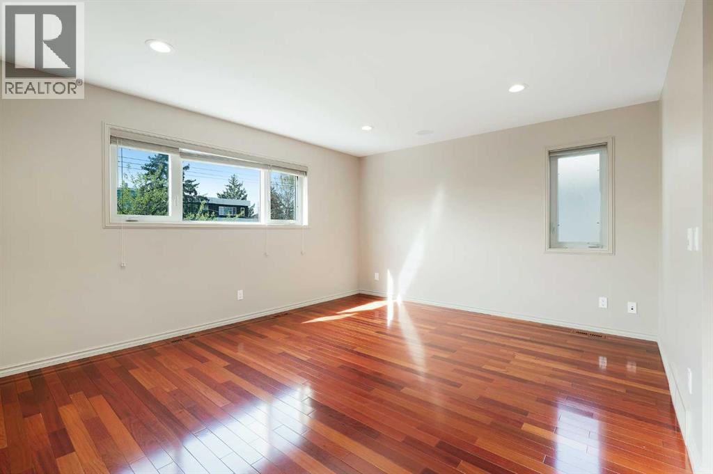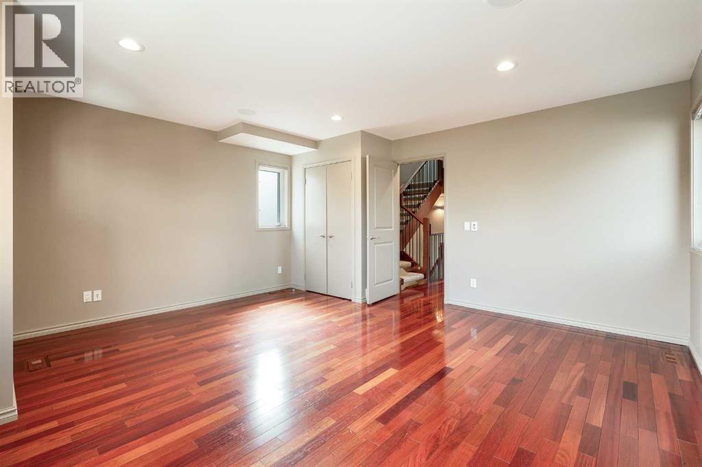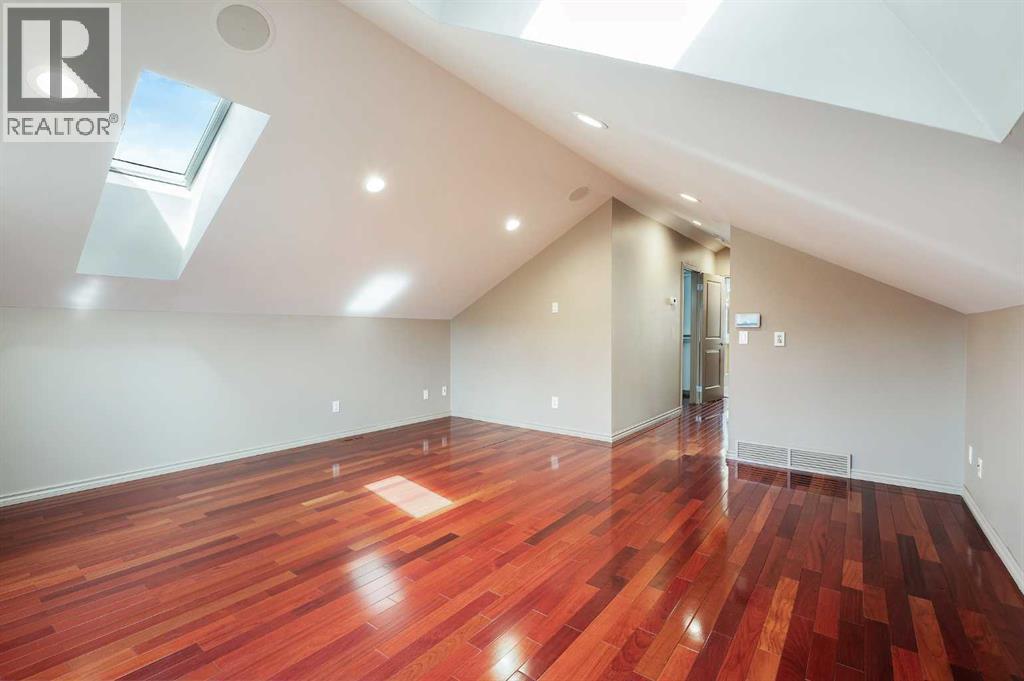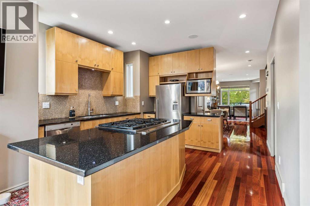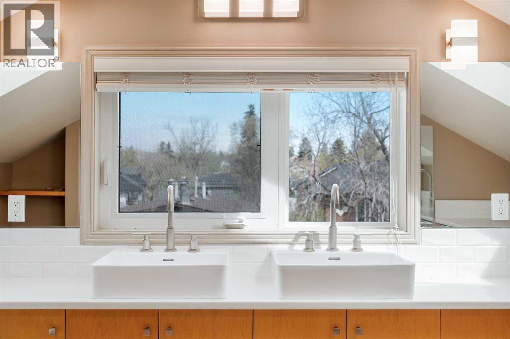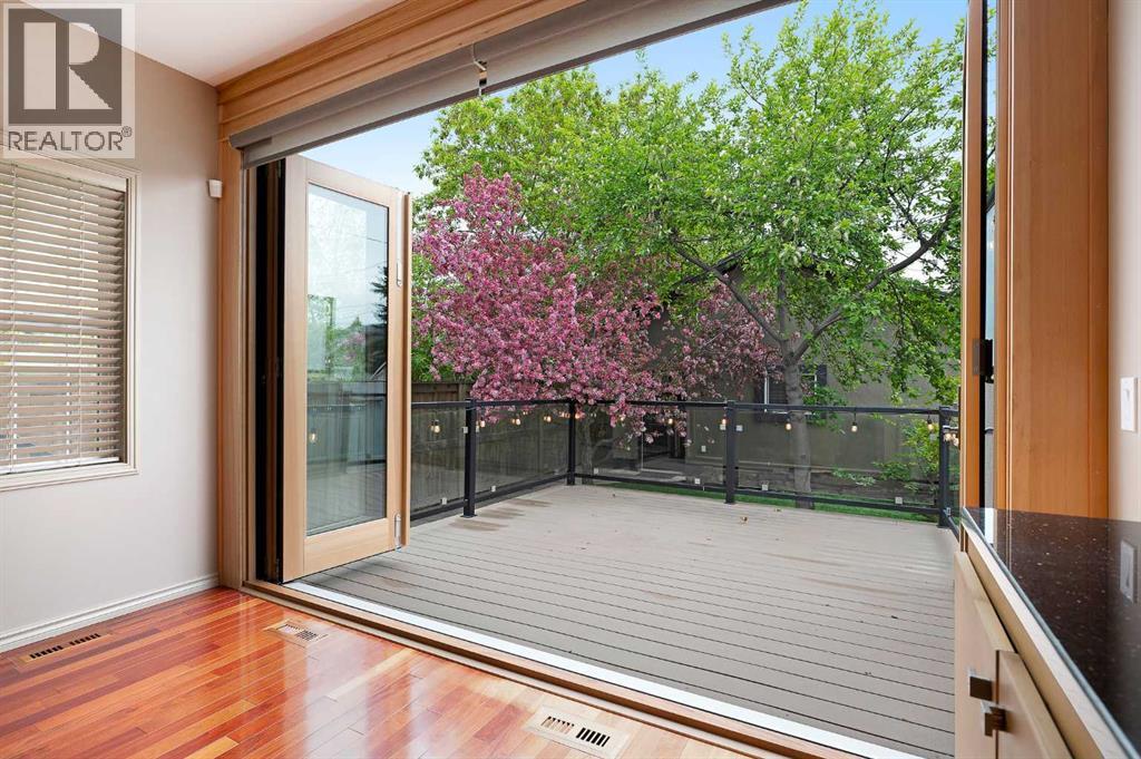 Nestled on a quiet tree-lined street in the long-established community of Capitol Hill, this European inspired 3 bedroom home with private SOUTH FACING back yard offers over 2700 sq ft of developed living space. The main level presents glossy Brazilian cherry Jatoba hardwood floors, high ceilings & is illuminated with recessed lighting, showcasing the front living room with feature fireplace, dining area with stylish light fixture & gorgeous kitchen that’s tastefully finished with solid wood hand build cabinetry, island, granite counter tops, top of the line stainless steel appliances, cozy breakfast nook & folding Tesoro door system opening to the south facing, private composite deck. A 2 piece powder room completes the main level. A custom staircase with auto LED lighting leads to the second level (also adorned with Jatoba hardwood) that hosts 2 spacious bedrooms, a 4 piece bath with Fiat steam shower & laundry room with sink. The newly renovated primary suite encompasses the entire third level & is a true private oasis. Features include a huge bedroom with vaulted ceiling & skylights, to-die-for walk-in closet & opulent ensuite with programmable heated tile floors, dual sinks, coffee bar with sink, beverage centre & filtered water station, a walk-in shower, heated air tub with remote & skylights. Basement development comprises of a recreation/media room with custom millwork, porcelain tile flooring, 2 built-in entertainment centres & electric fireplace. A large flex space with custom hand made closet could be used as a home gym area or studio. Other notable features include fresh paint throughout, upgraded LED lighting with Lutron touch dimmer switches, built-in ceiling speakers, tankless hot water tank, central air conditioning, newer modulating furnace, security system & 50 year rubber roof. Outside, enjoy the private south facing professionally landscaped yard with mature flowering trees, rundle rock garden & maintenance free astro-turf. Parking is a breeze wi th a heated, insulated, fully finished garage with new door & lift hardware. The prime location can’t be beat – close to popular neighbourhood amenities such as Earl’s, Starbucks, Weed’s Café, Edelweiss Village, Confederation Park, two community centres, shopping, exceptional schools, public transit, SAIT & U of C & and whether you’re walking, taking transit or Uber, its an easy commute to the downtown core. Trendy Kensington with Riley Park, shopping & patios is also within walking distance. (id:53676)