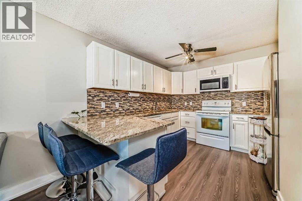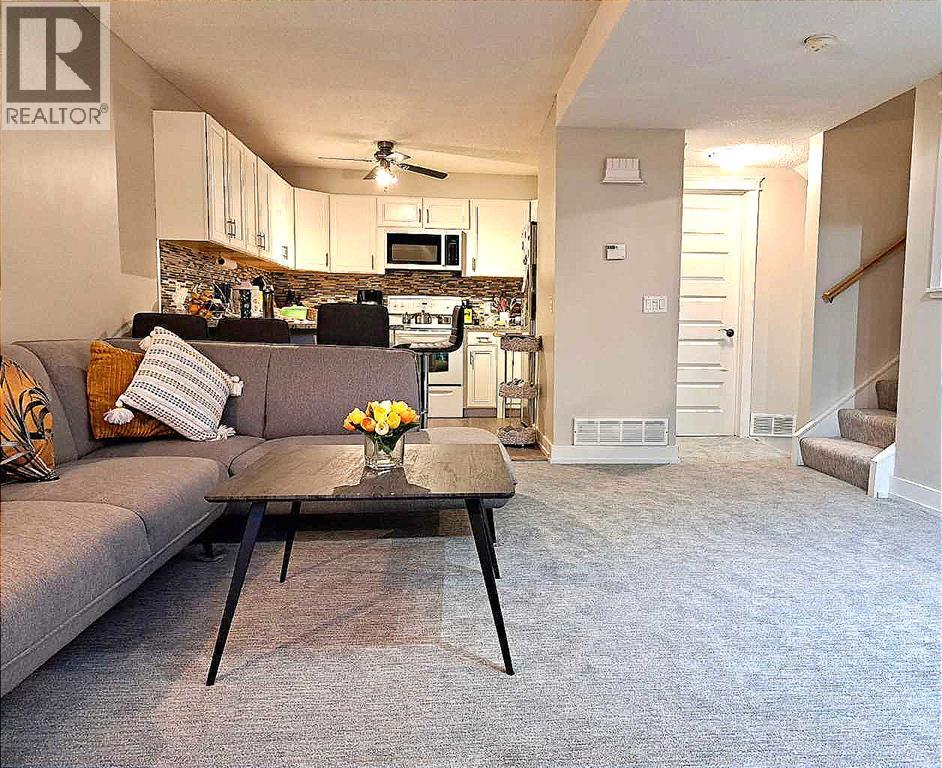 FULLY RENOVATED, 2-bedroom townhouse, located in the desirable SW community of Glenbrook. This stylish, immaculate and bright two-storey home offers over 1, 200sq. ft. of comfortable living space. The FULLY RENOVATED KITCHEN features granite countertops, a classic backsplash, and crisp white cabinetry, perfect for cooking and entertaining. The open-concept living and dining area is enhanced by NEW carpet flooring throughout the main level, wIth the possibility of turning the dining space into a 3rd BEDROOM. You’ll also find a convenient laundry and storage area, plus a balcony that’s perfect for your summer BBQ's. Upstairs, you’ll find 2 generously sized bedrooms one with a walk-in closet, the other with a built in closet, and a well-appointed full bathroom, offering plenty of space and functionality. NEW CARPETING throughout the upper floor adds a cozy touch. All windows were updated in 2012, furnace in 2013. Tucked away on the west side of the complex with no buildings directly in front, this unit offers extra privacy and peaceful surroundings. There’s ample visitor parking nearby, plus your own outdoor stall (#107) just steps from the front door with the OPTION OF RENTING ADDITIONAL PARKING spot for a cost. Enjoy the benefit of LOW CONDO FEES ( water included). Easy access to Glenbrook and Westhills shopping, schools, parks, and transit, short drive to downtown. This MOVE-IN READY HOME checks all the boxes. Check it out. (id:53676)