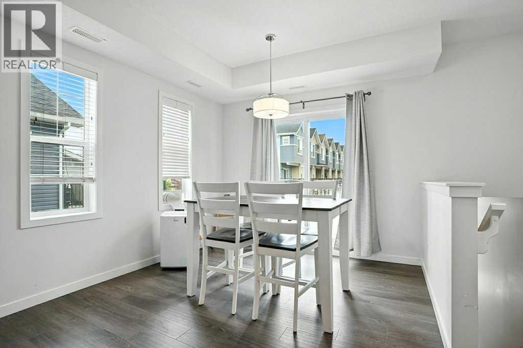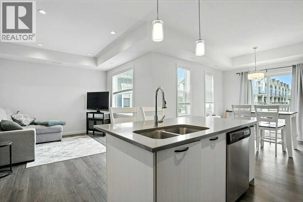 Welcome to this beautifully appointed 2-bedroom, 1-bathroom raised townhome in the vibrant community of the Canals. Offering a thoughtful layout with 9 ft knockdown ceilings and an abundance of natural light, this home feels open and inviting from the moment you step inside. The bright kitchen is designed with both style and function in mind, featuring quartz countertops, stainless steel appliances, ample cabinet space for storage, and modern pendant lighting over the island. The dining area is perfectly positioned beside large windows, creating a warm and welcoming space for everyday meals or entertaining guests. The spacious living and dining areas flow seamlessly onto a huge elevated deck, providing plenty of room for relaxing outdoors, enjoying summer barbecues, or simply taking in the fresh air. Both bedrooms are generously sized with easy access to the well-appointed 4-piece bathroom. Additional highlights include laminate flooring throughout, a modern colour palette, and an overall design that blends comfort with convenience. The ground floor features a welcoming foyer and a single attached garage. Very well maintained condo complex, beautifully maintained grounds & landscaping and visitor parking throughout the complex. Located in one of Airdrie’s most sought-after communities, this property is within walking distance to schools, soccer fields, churches, and picturesque ponds. Whether you’re a first-time buyer, downsizing, or looking for a smart investment, this home offers excellent value in a prime location with easy access to amenities, parks, and pathways. Don’t wait, call your favourite realtor and book a showing today! (id:53676)
