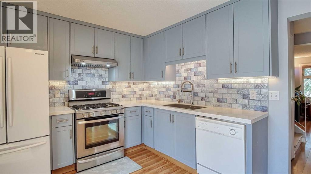Welcome to the beautiful community of Woodbine!This stunning 2-bedroom plus loft end-unit townhouse has been completely renovated from top to bottom — truly move-in ready.Step inside through a brand-new front door into a bright, modern interior featuring a custom front closet, new paint throughout, and new windows with custom blinds (including Argon gas inserts in the south-facing patio doors and primary bedroom windows for improved energy efficiency, plus blackout blinds for restful nights).The chef-inspired kitchen boasts new cabinets, quartz countertops, Spanish tile backsplash, Blanco sink and faucet, and a custom pantry. Smart storage solutions include a ShelfGenie pull-out drawer system in the lower cupboards and a pull-out drawer under the sink in the main-floor powder room. Top-quality appliances include a new gas range and oven, fridge, dishwasher, and a reverse osmosis water filtration system.The main floor features beautiful German-engineered hardwood, while the staircase and upper level are finished with durable luxury vinyl plank flooring. You’ll also find a new custom built closet and ceiling fan in the primary bedroom and upper landing, along with upgraded lighting throughout the home.This is a smart home, equipped with a Nest Doorbell, AirThings monitor, and a remote thermostat for modern comfort and convenience.Downstairs, enjoy the cozy finished basement featuring an oak bar with overhead wine rack, new bar faucet, and a welcoming recreation room perfect for movie nights or entertaining friends.Major system upgrades include a new high-efficiency furnace, tankless water heater, air conditioner, water softener, and radon mitigation system — all with transferable warranties for peace of mind.Step outside to your new Fiberon deck and maintenance-free fenced backyard, perfect for summer evenings and weekend relaxation.This turnkey property is ready for you to move in and enjoy.Don’t wait — the seller is motivated, and all reasonable offers wil l be considered!Contact your favourite realtor today to book a viewing — this one won’t last long! (id:53676)