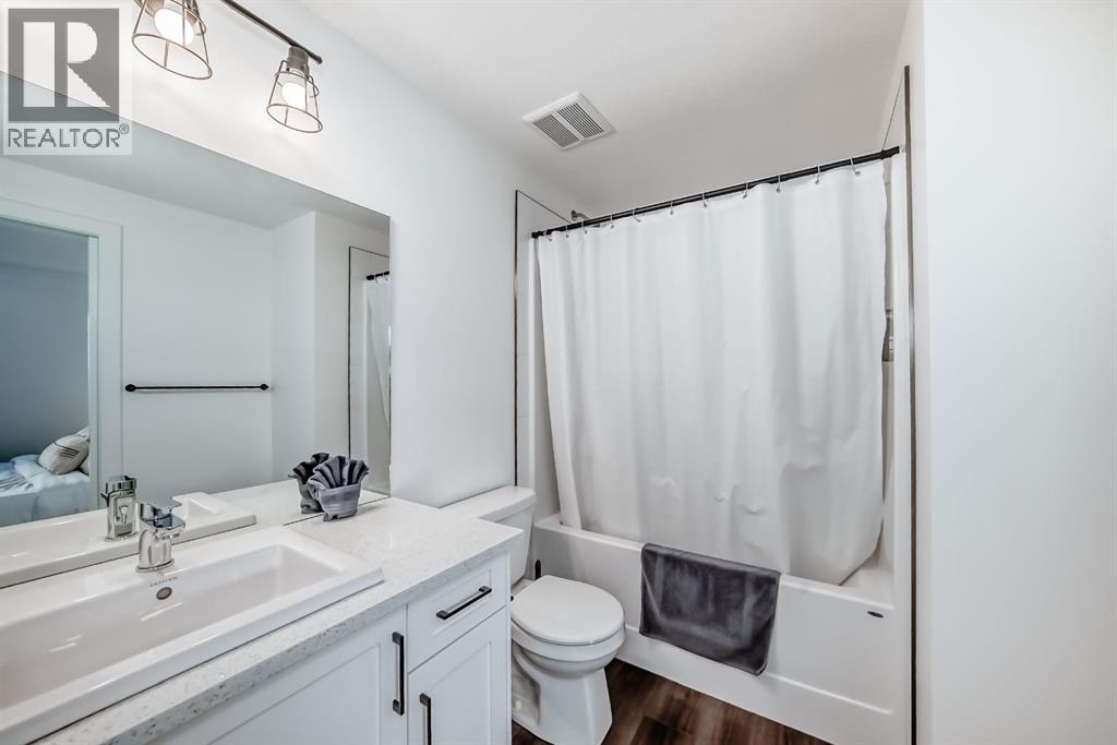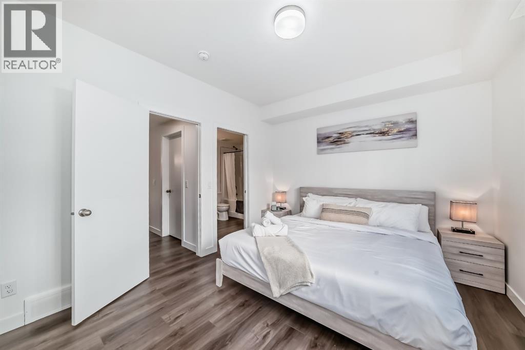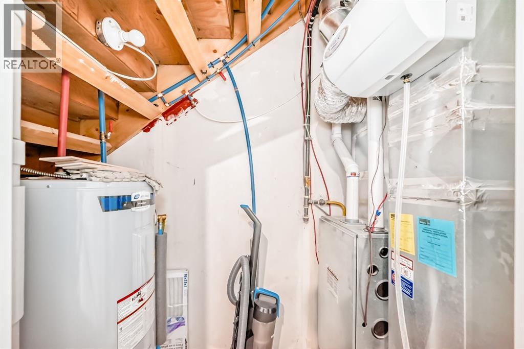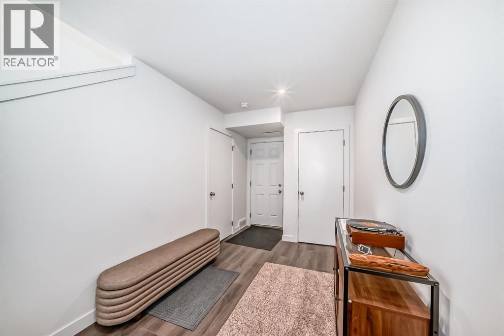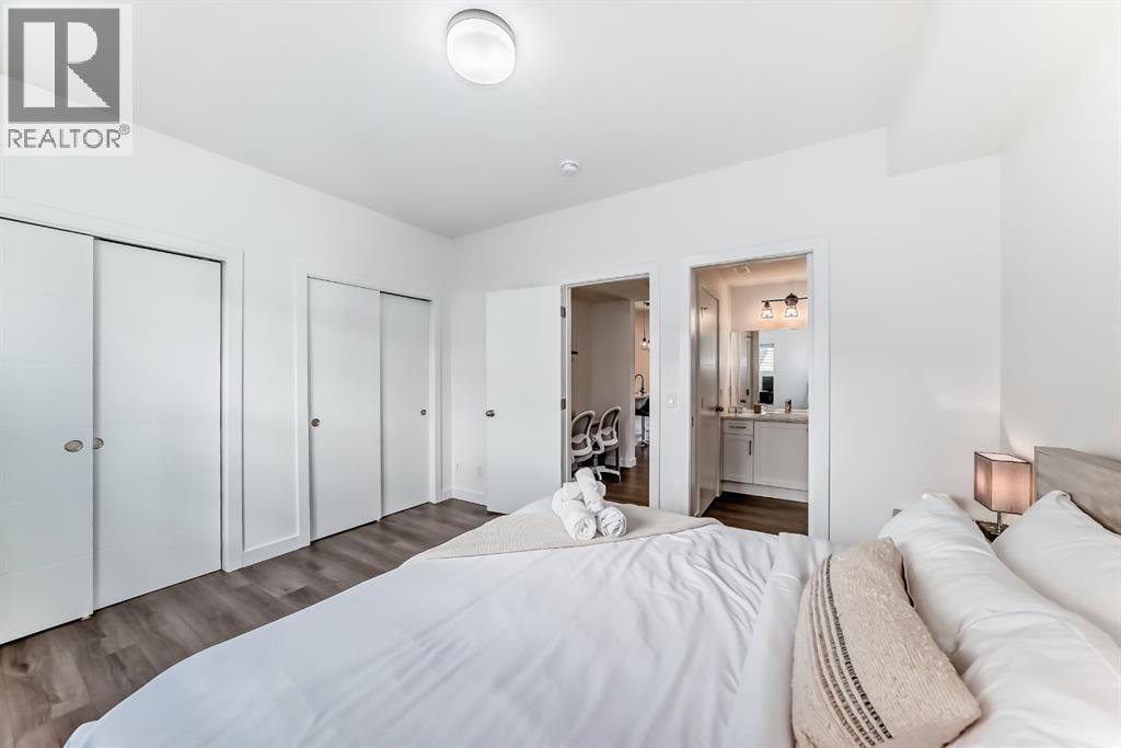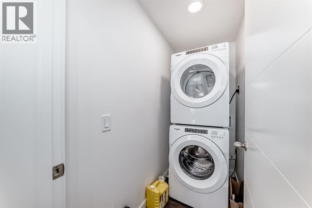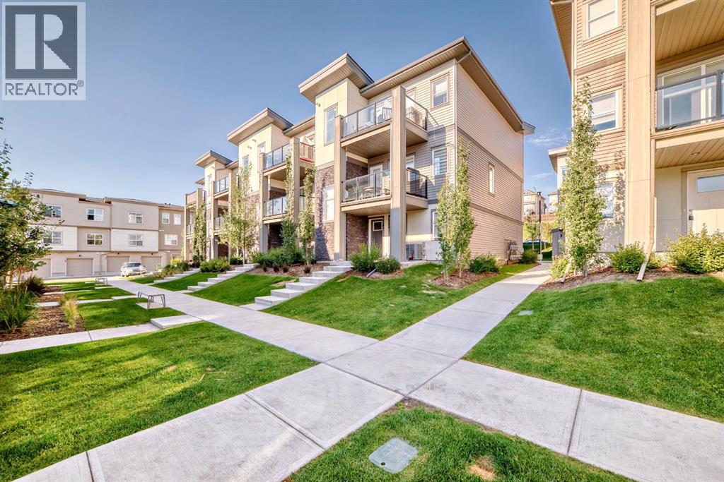 Welcome to functional urban living! This unique STACKED TOWNHOUSE WITH ONE BEDROOM + DEN AND SINGLE CAR GARAGE in the much sought after community of Springbank is exactly what you have been looking for. Walking in from the from entrance you are greeted with a spacious front patio. Entering the unit you are ushered into the Den and Mud room area. The single attached garage is accessed from this level. There's a coat closet and the mechanical/utility room on this level. Walk up a few steps and you are in a spacious living room area that flows into the dining and kitchen with pantry at the top of the stairs as you come up. Upgraded finishings include quartz countertops and kitchen backsplash, upgraded shaker cabinets and handles, sink, lighting fixtures, door handles and Refrigerator. Laundry room is tucked away by the kitchen. Going into the Primary bedroom there's a computer area/workspace to the right and a spacious 4pc ensuite bath to the left. The primary bedroom boasts of space and ample-size closet all along the room wall. From the living room you walk out to a big balcony with privacy walls and a beautiful view of the area. Vinyl plank is the flooring all through the unit except for the stairs. This unit is located in a complex across the street from ASPEN LANDING. Easy access to 85th St SW and 17 Ave SW, transit systems and established amenities in the area. You can't afford to miss this one! Call for your private viewing. (id:53676)
