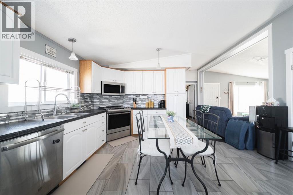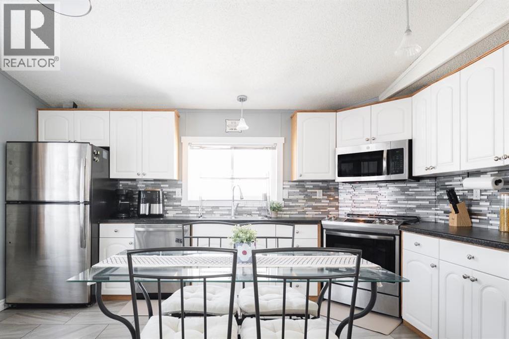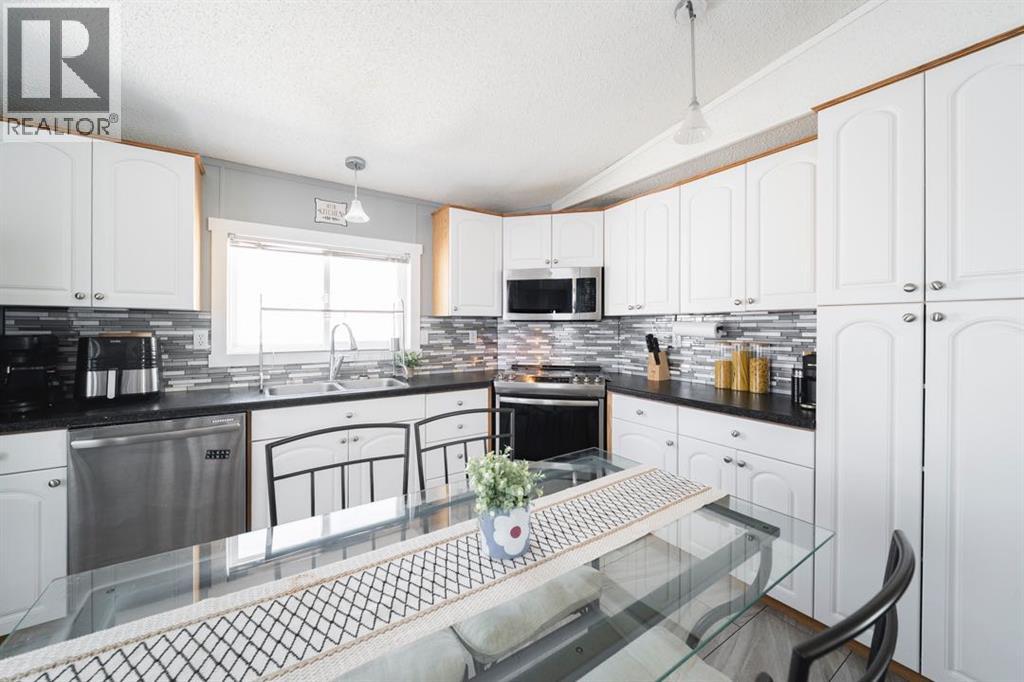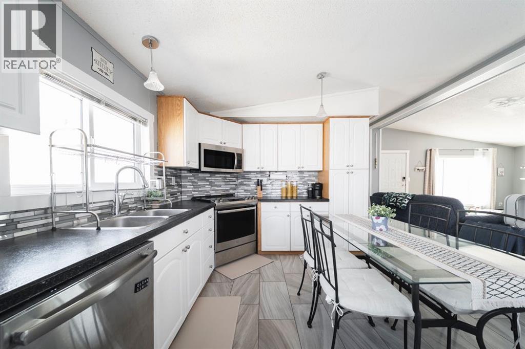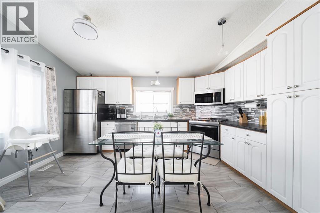 Welcome to 125 Grant Bay, a well maintained three bedroom, two bathroom home sitting on a spacious 5,961 square foot corner lot with an abundance of parking, a show-stopping detached garage, updated shingles 2024 and hot water tank in 2025 and a layout designed for comfortable everyday living. With a front driveway plus a second paved driveway in the back, and a detached 22x28 heated garage, this property is a dream for anyone who needs serious space for vehicles, hobbies, or storage.The front deck welcomes you inside where vaulted ceilings, LED lighting, and neutral grey walls create a bright and open atmosphere throughout. The open concept main living area features laminate flooring in the living room that flows into a well appointed kitchen with tile flooring, white cabinetry, stainless steel appliances, and a dining area, making the space ideal for both daily routines and casual entertaining. No carpet anywhere in the home means easy maintenance from top to bottom.The primary bedroom comfortably fits a king size bed and includes a walk-in closet and a four-piece ensuite. Two additional bedrooms are found on the other side of the home both offering flexibility for families or a home office setup. A second four-piece bathroom serves the additional bedrooms, and a dedicated laundry room rounds out the interior.Outside, the fully fenced yard enjoys afternoon sun and offers a wonderful outdoor living space complete with a back deck and an included gazebo. The corner lot provides an impressive sense of space and privacy that is hard to find.The detached 22x28 garage is truly the star of the property, heated with 220/240v plug and currently set up with a golf simulator (simulator negotiable), giving you a sense of just how much this space can accommodate. Whether you envision it as a workshop, gym, entertainment space, or simply the ultimate garage, the possibilities are nearly endless.Additional highlights include central air conditioning, updated shingles and fe ncing in 2024 and a new Hot Water Tank in 2025 offering peace of mind for years to come.125 Grant Bay delivers on space, parking, and lifestyle in a package that is tough to beat. Schedule your private showing today. (id:53676)
