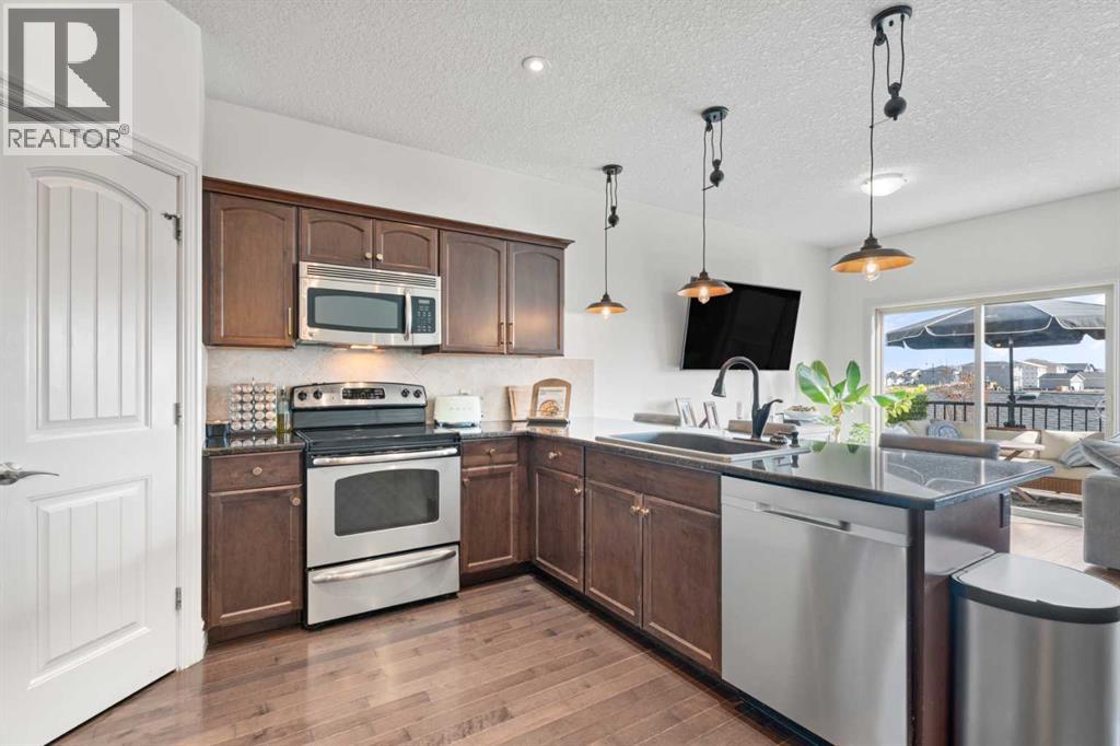 Welcome to 125 Monteith Drive, ideally located in the sought-after family friendly Montrose community. From the moment you arrive, this home captures your attention with its charming curb appeal—featuring a private arched entrance and an inviting upper balcony that truly sets it apart. Step inside this air -conditioned home to discover a versatile front flex room—perfect for a home office, formal dining, playroom, or cozy media space. The main floor opens into a bright and functional layout, where the kitchen, dining, and living areas come together seamlessly—ideal for both everyday living and entertaining. Rich hardwood flooring flows throughout, while the well-appointed kitchen offers granite countertops, a central sit up breakfast bar, and plenty of space to gather and prepare meals. Just off the living room, step onto the back deck and take in the beautiful sprawling mountain views—an ideal spot to enjoy your morning coffee or unwind at the end of the day. Upstairs, you’ll find two generously sized kids bedrooms, a full bathroom, and a spacious bonus room with direct access to the upper balcony—perfect for relaxing summer evenings with a glass of wine while enjoying the view. The impressive primary retreat is sure to impress and offers a true escape, featuring huge windows with outstanding views, a large walk-in closet, and a luxurious 4-piece ensuite. The walkout basement is full of potential, offering plenty of space for future development—whether you envision a family room, additional bedroom, or home gym—with direct access to the fully landscaped and fenced backyard. Laundry is conveniently located on this level as well. Elegant upgrades and features shine though in each room. A detached double garage provides secure parking and extra storage , plus an additional parking spot for RV, trailer , toys, or extra vehicles. Enjoy being within walking distance to downtown High River, grocery stores, recreation facilities, and scenic pathway systems, with easy highway access for commuting. Guest parking is also a pleasure with plenty of street frontage available. This is a fantastic opportunity to own a well-appointed home in a vibrant, family-friendly community—don’t miss your chance to view it! (id:53676)