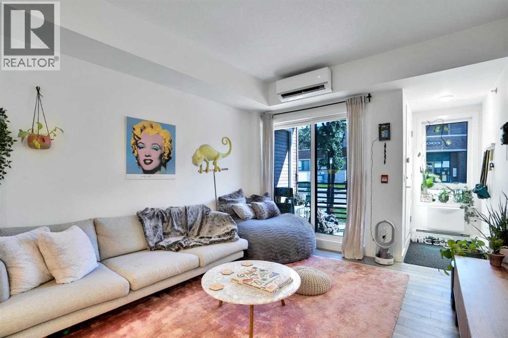 Discover Wonderful Living in this well managed complex in Duke apartments with a townhome vibe, you have your own private entrance, no steep ladder to climb, and no busy elevators, just for you to enjoy. You will be in the center of it all, but nestled on a quiet street and only a few steps away from the excitements. Welcome to this stunning 1-bedroom, 1-full bathroom home, perfectly situated on the ground level overlooking the serene south blue sky. This unit is designed for both comfort and style. Inside, you'll find an open-concept layout that seamlessly blends elegance with functionality, it features a spacious kitchen with modern cabinetry, a kitchen island that serves as a breakfast bar, a free-flowing living area and a dining space with a private front porch and your own exclusive entrance. You might be buying an apartment but has a feel of a townhome living. Every detail has been thoughtfully considered to create a warm and inviting atmosphere. No car, no problem, the building is tactically built within a short distance walk to downtown core, around the corner is a bus stop and a hop, skip and a jump to the stampede c-train station. It is now vacant and interior pictures published does not now reflect the inside of the unit. Don't miss the chance to own this exquisite property. Schedule your private tour today and experience this exceptional home firsthand! (id:53676)