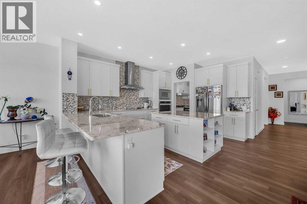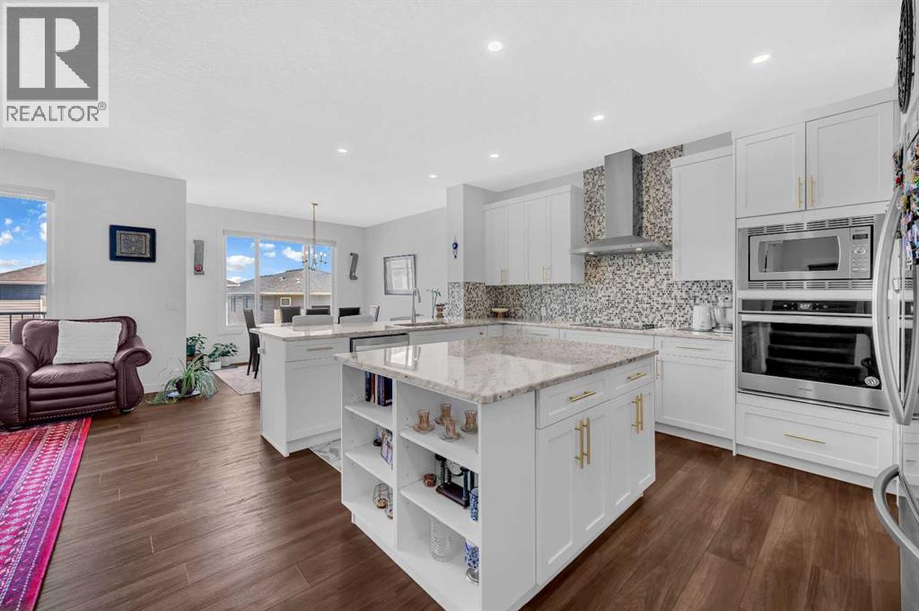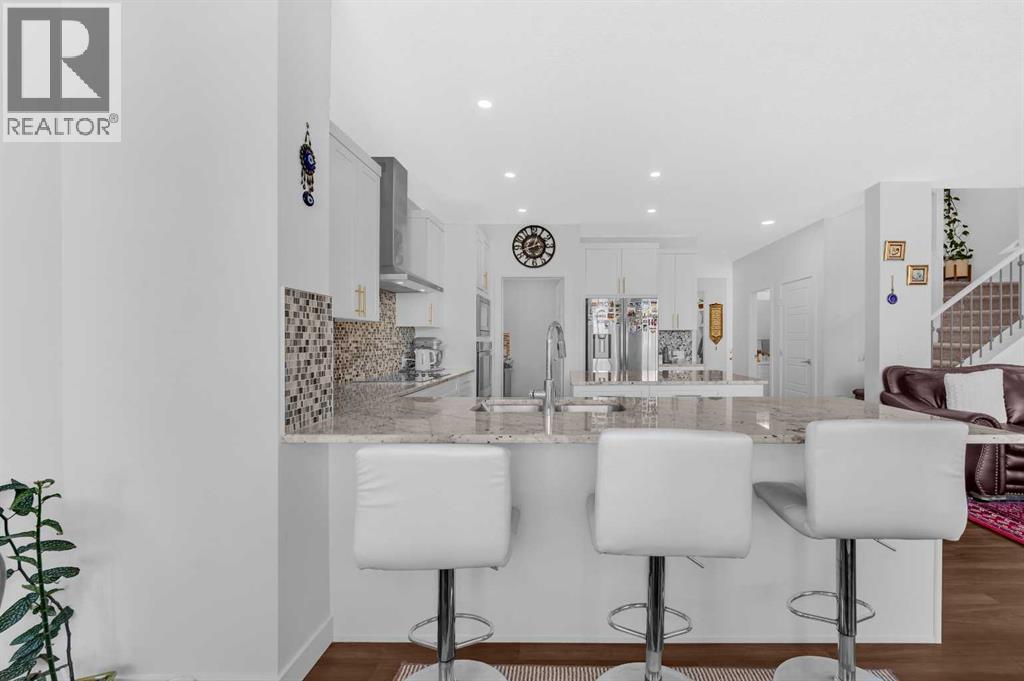 Welcome to 127 Ambleside Crescent NW, a beautifully designed and fully upgraded two-storey home with a walkout legal basement suite in the vibrant Ambleton community of NW Calgary. Featuring six spacious bedrooms and five bathrooms, this home is ideal for families seeking style and functionality.The main living area boasts an open-concept design, complete with a gas fireplace in the living room. The modern gourmet kitchen has luxurious granite countertops and is outfitted with high-end stainless steel appliances, including a built-in oven, built-in microwave, electric cooktop, and a stylish range hood. A spice kitchen with a gas stove ensures convenient meal preparation, catering to diverse culinary needs. A spacious den with a closet and a 3 pc modern bath at this level present versatile opportunities like home office, extra living room, or potential for a bedroom in the future!The upper floor includes four well-appointed bedrooms, with two primary suites featuring spacious walk-in closets and luxurious ensuites. The other two bedrooms share a Jack and Jill bathroom, maximizing privacy and practicality. All the bathrooms have quartz countertops. The bright family room upstairs is the perfect retreat, offering large windows that flood the space with natural light, creating a cozy and inviting atmosphere for relaxation or entertainment. The upper-floor laundry room eliminates the hassle of carrying laundry up and down the stairs, making household chores effortless. A fully developed walkout basement is a registered legal secondary suite with the City of Calgary. The fully finished basement has a 9 ft ceiling and includes two additional bedrooms, a second kitchen, and laundry, offering rental potential or private space for extended family, large families, guests, and is suitable for rental. The home is equipped with central air conditioning and has a fully landscaped backyard with concrete patio and a balcony to enjoy your summer BBQs, and family gatherings.Ambl eton is one of Calgary’s newest and most sought-after communities, blending modern convenience with beautiful outdoor spaces.There are nearby schools in Evanston, with a future high school planned within Ambleton. The property is close to retail centers, grocery stores, cafes, and restaurants. Recreation & Outdoor Living: Over 7.3 km of walking and biking trails, parks, playgrounds, and gazebos for outdoor activities. Quick access to Stoney Trail, 14th Street NW, and Symons Valley Road for effortless commuting. Community features green spaces, and local parks for relaxation and entertainment. This exceptional home with a bright upstairs family room, two primary suites, and a spice kitchen in Ambleton is a rare opportunity to live in a well-connected and thriving neighborhood! Don't miss the opportunity and call today to schedule your showing! (id:53676)