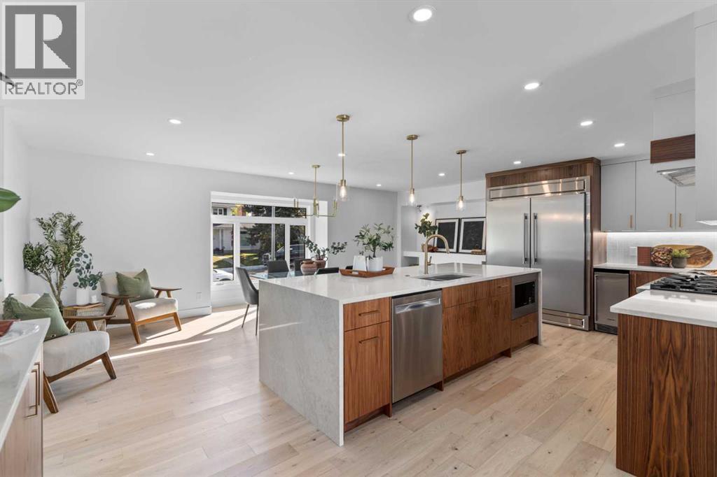 A total transformation in Calgary’s most desirable lake community. Welcome to living in luxury in Lake Bonavista with lake access located on a quiet, peaceful crescent just steps from views of fish creek and an off-leash dog area.This home was taken down to the exterior studs. Nearly everything is new and comes with a 1-year builder’s warranty on any work completed by the general contractor, ask for more details.This home has a brand new oversized double car garage complete with gas rough-in for heater. The exterior features new front and rear decks, new backyard sod, new fence with a large yard space. The building envelope features new OSB, new house wrap and Hardie Board siding, new soffits and facia with custom wood grain in the front. Moving inside the home, new electrical with the overhead wires moved to the garage, a rare find in Bonavista and upgraded 200AMP service, new plumbing, new main floor insulated interior walls, 2 laundry rooms, one on each level, new R-50 attic insulation, new triple-pane energy efficient windows and doors, new hardwood oak flooring, new custom made walnut kitchen cabinets (not laminate cabinets!), new chef’s inspired kitchen complete with 60” refrigerator, separate ice maker machine, 48” 8-burner dual fuel range with dual ovens and all the bells and whistles you could imagine. Kitchen also features a butler’s pantry with sink for coffee station and small appliances as well as an abundance of storage including both sides of the island and a hutch. New 10ft patio doors open and brighten the space for the perfect indoor/outdoor summer living. You have a very spacious primary bedroom complete with a spa-like retreat and TV with ethernet hook up. The second bedroom is spacious and features a second walk-in closet. The main floor office a perfect spot to work from home is wired along with the living and dining room areas for high-speed.The open and airy lower level has a high-end new plush carpet and features an open area where engi neered beams were installed. Rec space is outfitted for a home theater and plenty of space for a pool table. There are 2 spacious bedrooms with oversized windows to maximize light. A 3rd flex-room can be used as a gym, office, or a future bedroom if desired with the addition of a window.All bathrooms feature high-end luxury fixtures. The primary en-suite features 3 shower heads, heated floors, walk-in closet, separate toilet area and spa like finishes. Basement bathroom also features heated floors and a large walk-in spacious shower. In the mechanical room, you have a brand-new high efficiency direct vent water heater, a high-efficiency furnace complete with electric air cleaner. An AC unit is also included for your comfort in the increasingly warmer Calgary summers, a perfect reprieve after a day at the lake.Enjoy exclusive year-round access to Lake Bonavista with all the amenities and events the lake has to offer such as swimming, SUP, tennis, skating, sledding, movie nights and more. (id:53676)