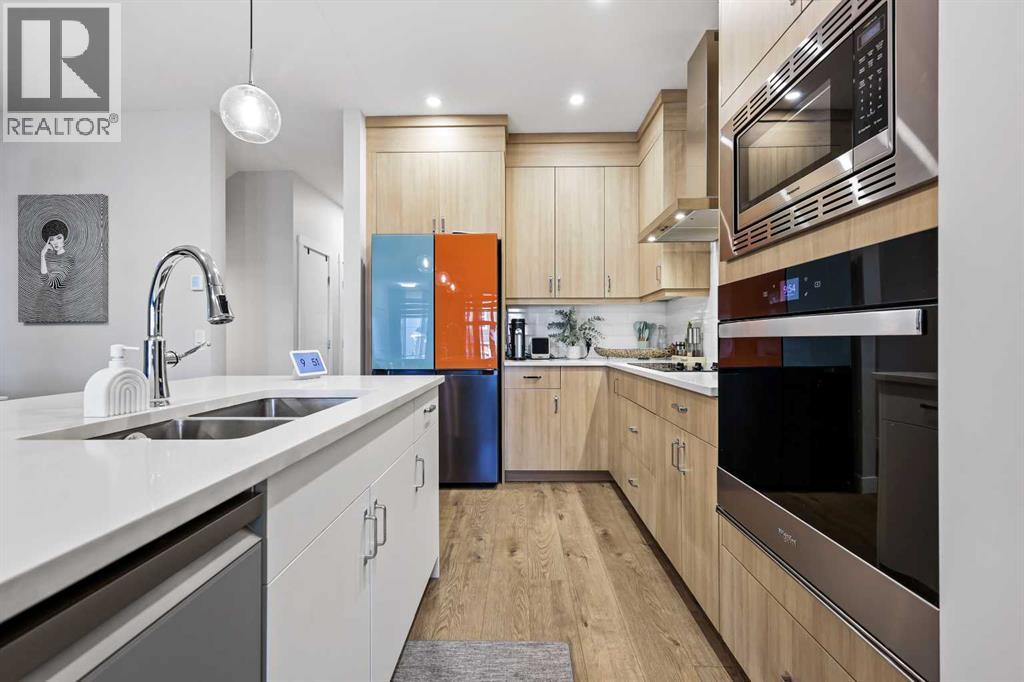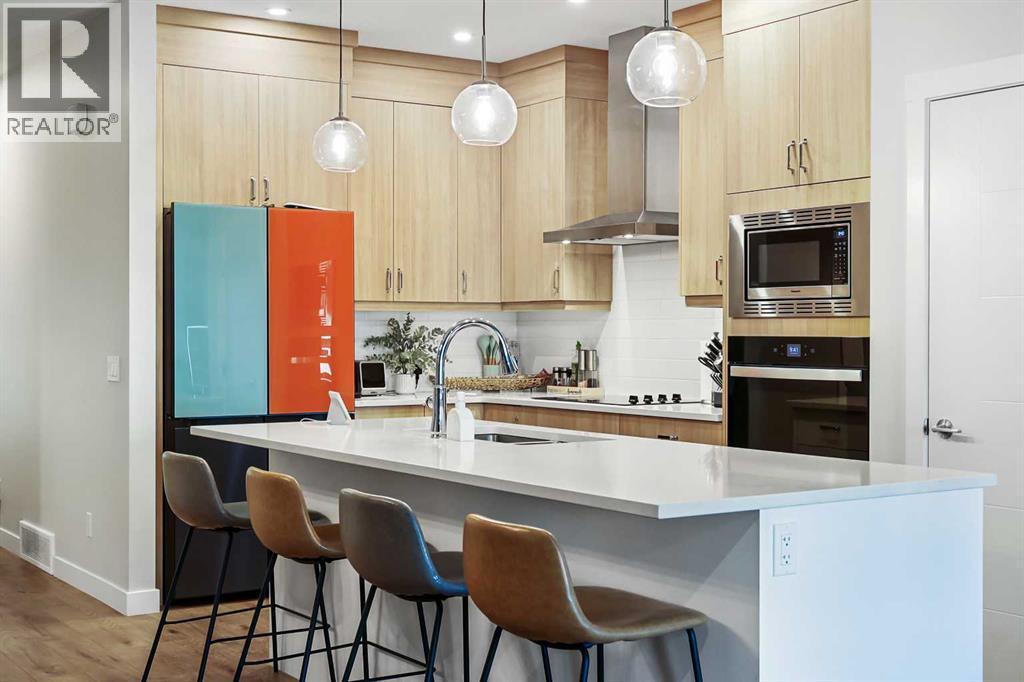 Welcome to this stunning and highly customized Brookfield 2-storey home in the vibrant, amenity-rich community of Seton — where modern design meets timeless comfort. Showcasing nearly 2,000 square feet above grade, this exceptional residence has been thoughtfully upgraded and enhanced with personalized touches that elevate its style and function. From the moment you arrive, the home’s inviting exterior, accented by rich colours, charming front porch, and architectural details, hints at the sophistication that awaits inside. Step into the main living area, where 9-foot ceilings and premium finishes create a sense of openness and warmth. The living room immediately draws your attention with its floor-to-ceiling shiplap feature wall, floating shelves, and a striking marble-inspired fireplace—a perfect blend of modern elegance and cozy character. Flowing seamlessly from the living space, the Chef’s Gourmet kitchen impresses with full-height cabinetry with rise and crown moulding, built-in wall oven and microwave, sleek cooktop with a chimney-style hood fan, and an expansive quartz island with a flush eating bar. The Arctic white tile backsplash and Blanco undermount sink add a refined finishing touch, while upgraded Cartwright lighting fixtures illuminate the space with designer flair. The dining area, brightened by an additional side window, creates the perfect setting for family meals and entertaining alike. Just beyond, a private main floor bedroom with a full three-piece ensuite featuring a glass-enclosed walk-in shower and floor-to-ceiling tile offers versatility for guests, multi-generational living, or a home office. The rear entry door, framed with encased glass, allows sunlight to sweep through the home and connect the indoors to the outdoors effortlessly. Upstairs, discover three additional spacious bedrooms, each enhanced with custom feature walls. The primary suite is a retreat of its own, showcasing a five-piece spa-inspired ensuite with dual undermount sin ks, quartz counters, and a walk-in closet. The centralized family room—perfect for movie nights—cleverly separates the primary suite from the secondary bedrooms, adding privacy and balance to the upper floor. A well-appointed laundry room with built-in counter and storage and a full bath complete this level. The lower level has been thoughtfully roughed-in for a future secondary suite (subject to approval and permitting by the city/municipality), featuring 9-foot foundation walls, rough-ins for a second laundry, kitchen plumbing, and full bathroom—a smart investment for future flexibility. Modern efficiency features include triple-glazed windows, an 80-gallon water tank, smart thermostat, Heat Recovery Ventilator, and knockdown ceilings throughout. Step outside to a beautifully finished backyard, complete with a massive covered deck—ideal for entertaining year-round—and an upgraded double detached oversized garage. (id:53676)