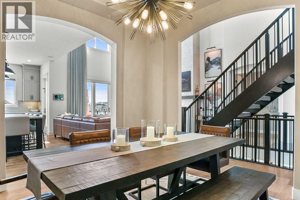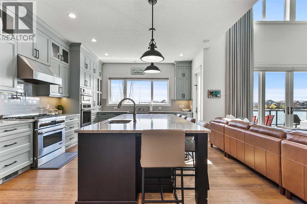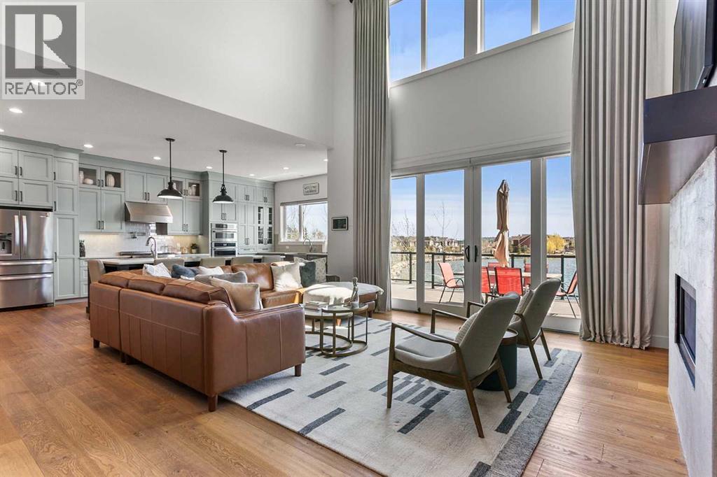 Welcome to the lakefront retreat you’ve been dreaming of— and now offered as a TURNKEY OPPORTUNITY where the listing price includes all high-end furnishings, curated décor, and artwork for a seamless move-in experience.Nestled on one of the LARGEST LOTS on AUBURN BAY LAKE, this stunning residence offers over 4,800 SQ FT OF EXQUISITELY DESIGNED LIVING SPACE, a PRIVATE DOCK, and spectacular PANORAMIC VIEWS from nearly every room. Step inside to soaring 19-FOOT CEILINGS and dramatic FLOOR-TO-CEILING WINDOWS that flood the main floor with natural light and frame the sparkling lake like a work of art.The open-concept design effortlessly connects the living, dining, and kitchen areas—perfect for both grand entertaining and everyday comfort. One of the standout features of this exceptional home is the DEDICATED MEDIA ROOM, complete with THEATRE-STYLE RECLINER SEATING, creating the ultimate spot for movie nights, game day gatherings, or immersive entertainment experiences right at home.The chef’s kitchen is a true showpiece, featuring DAUTER STONE GRANITE COUNTERTOPS, high-end JENN-AIR APPLIANCES, a massive island with extra seating, a WALK-THROUGH PANTRY, and a dedicated COFFEE STATION to elevate your daily routine. A PRIVATE HOME OFFICE and an oversized TRIPLE GARAGE add practical luxury.The MAIN FLOOR PRIMARY SUITE is a serene retreat, boasting UNOBSTRUCTED LAKE VIEWS, sliding doors to the expansive deck, and a spa-inspired 5-PIECE ENSUITE with dual sinks, marble countertops, and a spacious walk-in closet.Upstairs, a sunlit SITTING AREA overlooks the main living space and leads to two generously sized bedrooms and a full bath—providing comfort and privacy for family or guests.The FULLY DEVELOPED WALKOUT BASEMENT continues the theme of elevated living, with a large GAMES AREA, sleek KITCHENETTE, two additional bedrooms—one with a private ensuite and walk-in closet, the other with direct lake views—and a luxurious full bathroom featuring a STEAM SHOWER. The COV ERED PATIO, finished with stylish tile plank flooring, opens to a beautifully landscaped yard with a CUSTOM SHED and ample room for outdoor enjoyment.Additional highlights include IN-FLOOR HEATING in the basement, CENTRAL AIR CONDITIONING throughout the home, AUTOMATED BLINDS, and a NEWLY REDONE DRIVEWAY that adds convenience and curb appeal.This is a RARE OPPORTUNITY to own a premier LAKEFRONT PROPERTY in one of Calgary’s most sought-after communities. Don’t miss your chance to experience the best of AUBURN BAY LIVING—where luxury, comfort, and lakeside beauty come together in perfect harmony. (id:53676)
