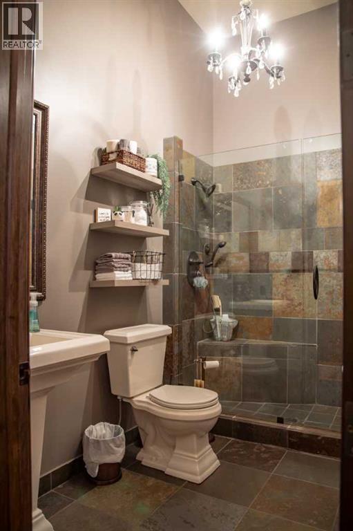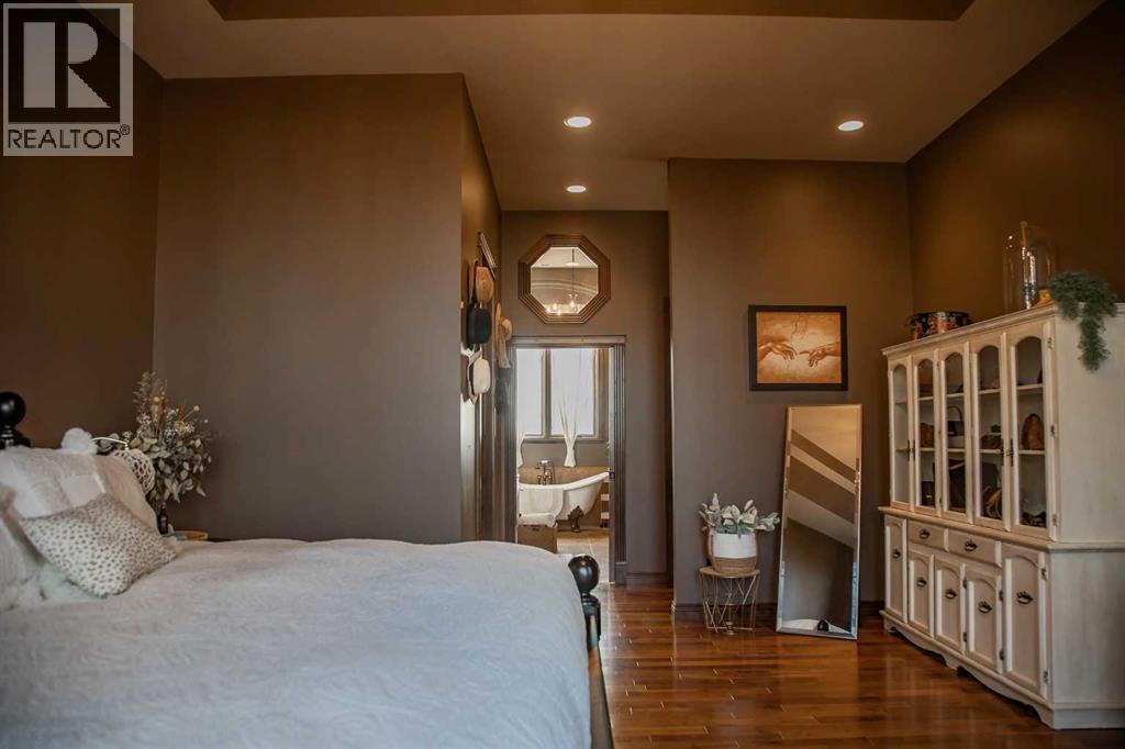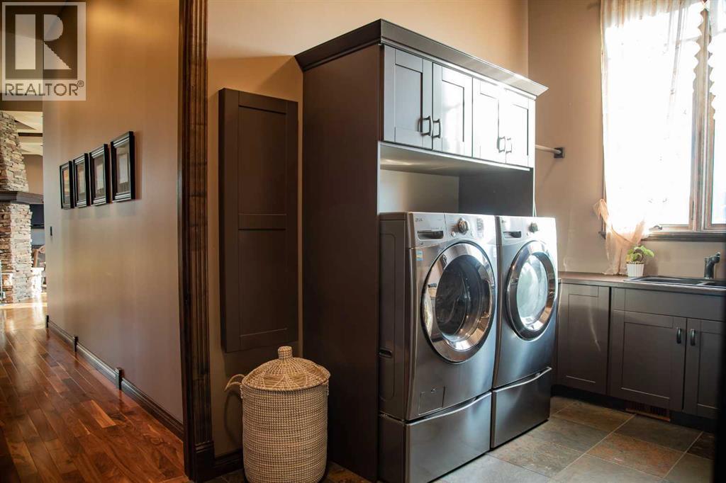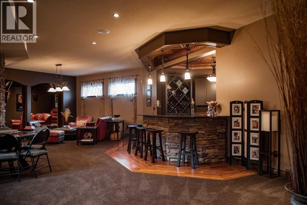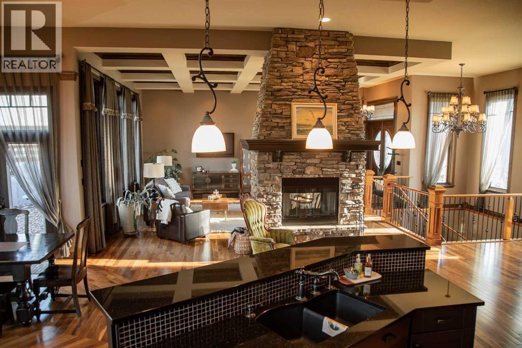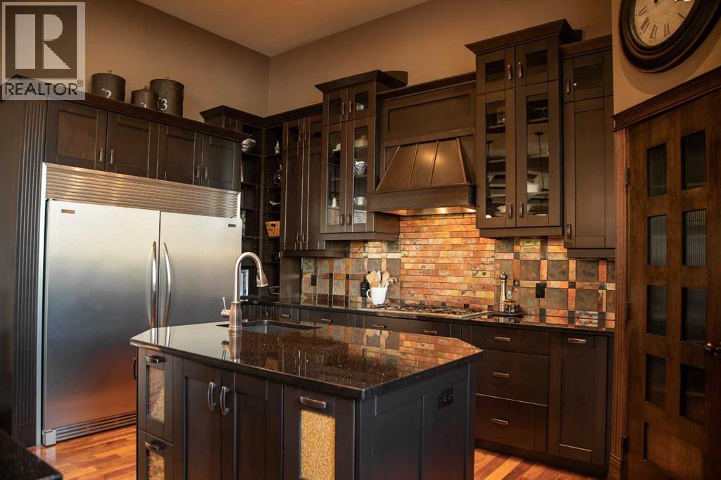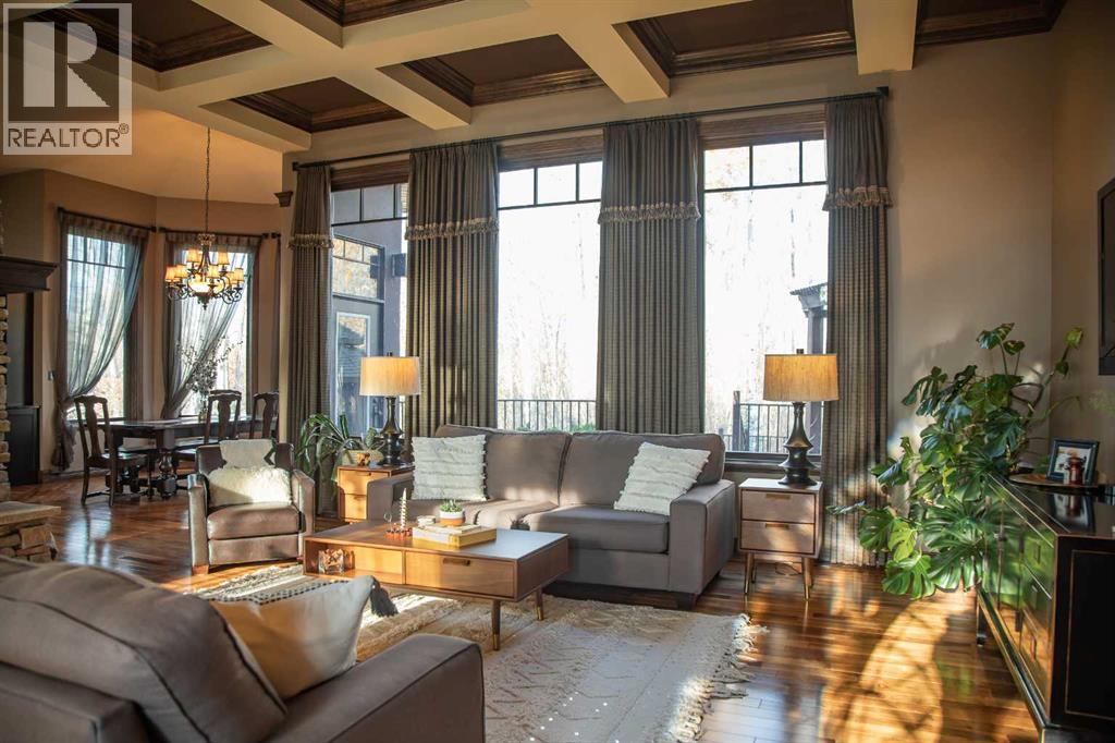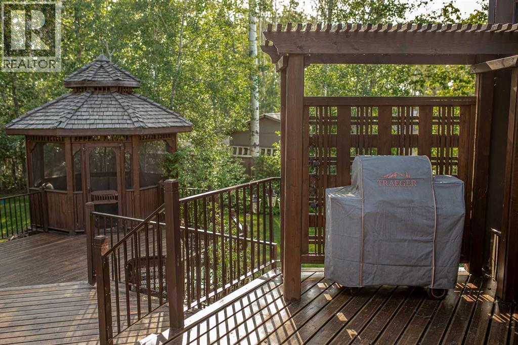 VENDOR MOTIVATED! A beautiful Custom Executive Home, a sprawling resort-like yard with a fabulous tripled garage.This amazing home comes with all the bells-and- whistles that you'd expect from a home of this caliber...welcome to 13 Chinook Drive ,you'll find this picturesque .50 acre parcel of land hosting a one-of-a-kind 4 Bed+Office/Den/3 Bath Custom haven . This unique home boasts lots of oversized picture windows inviting cheerful natural light indoors, executive finishing with hardwood walnut, tumbled marble & natural slate, that effortlessly combines modern & traditional elements, superb extra features, more storage & parking than you will ever need, and incomparable outdoor living space that makes you feel like you are living at a private 5-star resort! A walkway leads to a pillared porch with an over-height ceiling, while a front 8 ft solid fir door welcomes you into the foyer. Hardwood flooring flows into a stunning Great Room with custom coffered ceiling & maple crown moldings where a generous use of glass visually connects the space to your backyard oasis! A handsome floor-to-ceiling two-sided quarry rock wood fireplace...a great focal point for the room that is ready and waiting to bring warmth and ambiance to your evenings of relaxation & entertaining.The inspiring Chef's Kitchen is a culinary lover's dream-come-true with its abundance of wood cabinetry, sumptuous granite countertops, handmade copper wrapped brick and glass tile backsplash, a large island with an extended breakfast bar, a frosted glass door that opens to a walk-in Pantry, & quality stainless steel appliances including a double wall oven. From the Dining Room, a garden door opens to allow your gatherings to spill out to a massive 3 tiered deck with custom iron railing leading to the pergola & gazebo while enjoying soft music through the surround sound. This very private retreat offers sun-sational exposure, lovely maintenance free water features & gardens.Stepping back inside you' ll find a peaceful Primary Bedroom wing sporting a large walk-in closet with built-ins, and a luxurious 5 pc spa ensuite with dual- cast iron vessel sinks , a stand-alone cast iron clawfoot tub, & a huge glass custom steam shower . From the foyer, french doors open to a delightful Den/Office, while quietly tucked away at the opposite end of the home is a Bedroom & a Bath with a custom slate shower...your pampered guest will enjoy so much privacy & comfort. The handcrafted spiral walnut staircase leads to every entertainers dream! 10 ft ceilings with open-concept complete with a bar & a Theatre Room to watch the latest movie or game on the 103” big screen.Breathtaking quarry rock pillars & stunning maple built-in library, while tucked away at the opposite end is a fabulous Guest Wing complete with 2 generously-sized Bedrooms,walk-in closets & a 4 pc Bath with custom slate shower, soaker tub and double cast-iron sinks.This home & it’s exquisiteness ,elegance and luxurious is awaiting your admiration. (id:53676)