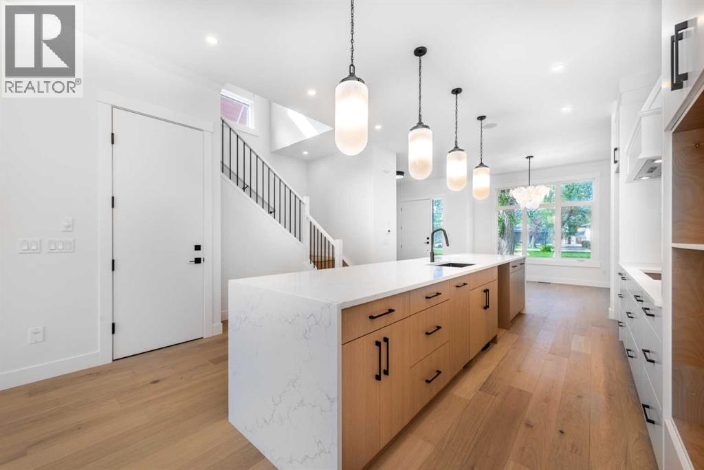 **Huge price drop for quick sale **Discover modern living at its finest in this beautifully designed home on a rare 30-foot-wide lot, featuring a sleek open-concept layout, legal basement suite, and upscale finishes throughout. With 10-foot ceilings, wide-plank hardwood floors, and striking architectural arches, the main level is both stylish and functional, complete with a chef-inspired kitchen boasting premium built-in appliances, a waterfall island, and designer wainscoting. The upper level offers a vaulted-ceiling primary retreat with a spa-like ensuite and walk-in closet, plus two spacious bedrooms, a chic four-piece bath, and convenient laundry. The fully equipped legal basement suite—with private entrance, separate laundry, and full kitchen—adds ultimate flexibility for rental income or multigenerational living. Finished with a 20x20 double garage, fenced yard with fresh sod, and quick access to major roads, downtown, and top parks, this is a rare opportunity to own a bold, contemporary home in a prime inner-city location. (id:53676)