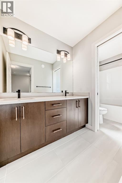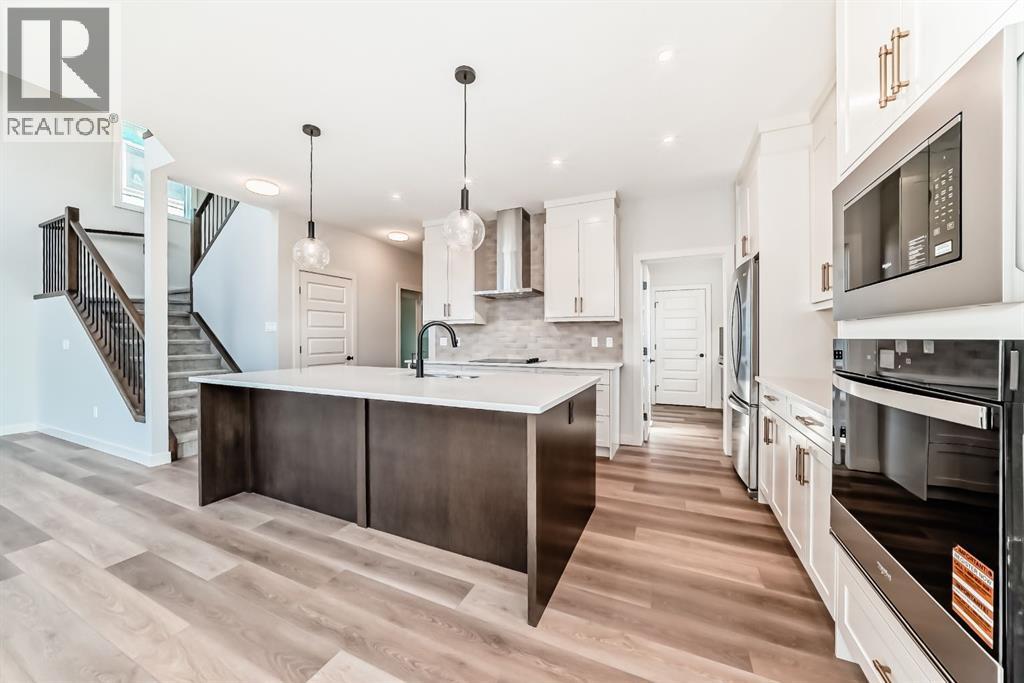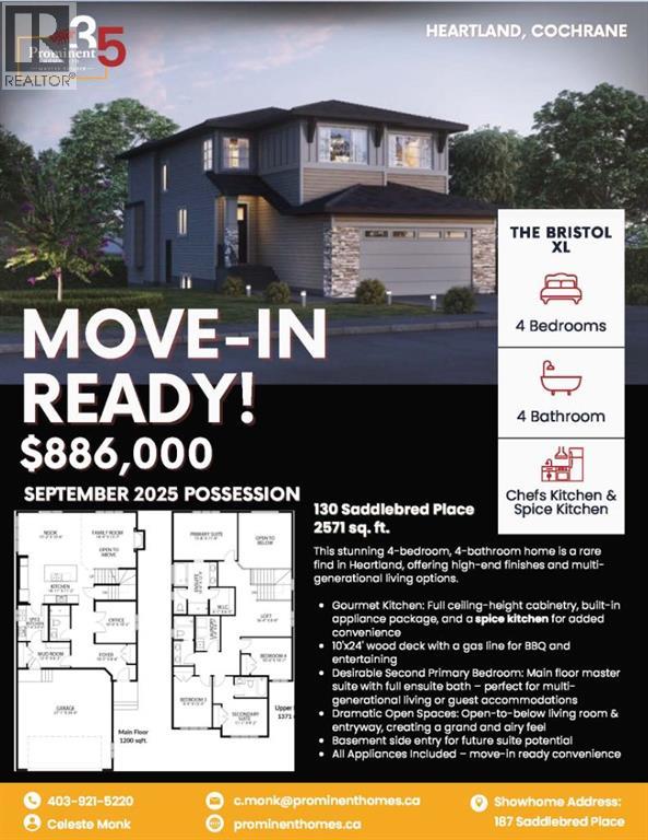 Welcome to The Bristol XL by Prominent Homes – a beautifully upgraded 2,571 sq. ft. residence offering thoughtful design, luxurious finishes, and flexible living options for the modern family. Located in the community of Heartland, this move-in ready home includes approximately $40,000 in upgrades.Step inside and experience the dramatic open-to-below living room and entryway creating a grand, light-filled atmosphere. The heart of the home is a chef-inspired kitchen, complete with ceiling-height cabinetry, quartz countertops, a premium built-in Whirlpool appliance package, and a fully equipped spice kitchen—perfect for gourmet cooking and entertaining.This home is designed for multi-generational living with a main floor bedroom option with a full bathroom—ideal for guests, aging parents, or private home office use. Upstairs, you'll find TWO PRIMARY SUITES each with their own full ensuite bathrooms, along with two additional bedrooms and a fourth full bathroom.Enjoy the outdoors on your 10’ x 24’ wood deck with a built-in gas line for your BBQ, and take advantage of the separate side entrance to the full basement, offering excellent potential for a future suite or income opportunity (subject to approval and permitting by the city/municipality). This exceptional home combines luxury, practicality, and value with access to many amenities of and quick escape to Ghost Lake Recreation area, Canmore and the Rocky Mountains for all your outdoor adventures. (id:53676)