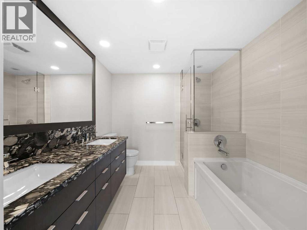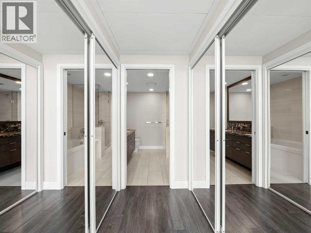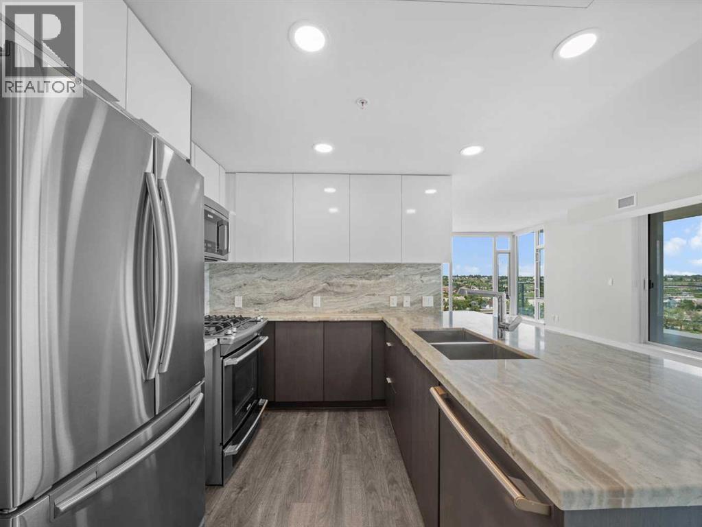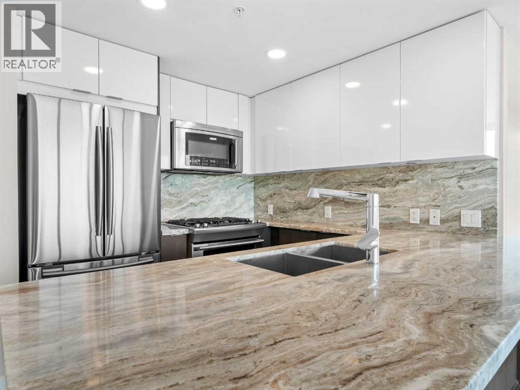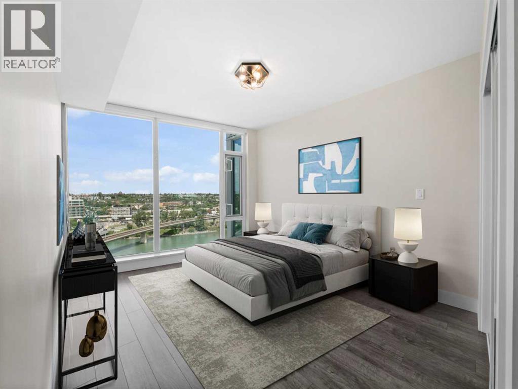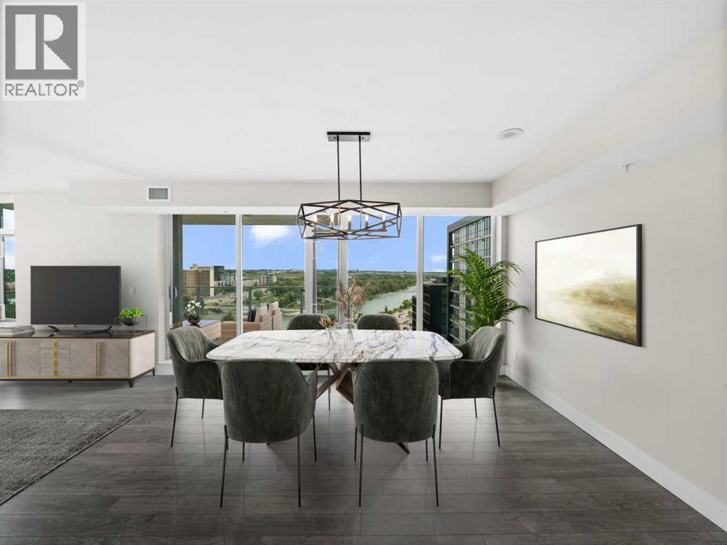 Stunning River Views from this Exceptional 2-Bedroom + Den Residence by Bosa DevelopmentEnjoy sweeping river views from this beautifully appointed corner suite in the prestigious Evolution building. Designed with floor-to-ceiling windows, the home is bathed in natural light and features refined finishes throughout, including granite countertops and a chef-inspired kitchen equipped with a gas range and abundant storage.The spacious primary bedroom offers double closets and a luxurious five-piece ensuite with in-floor heating. A second bedroom, an additional full bathroom, and a versatile den provide flexible living space for work or guests.Step out onto the expansive balcony to take in the breathtaking views—it’s also equipped with a gas line for easy outdoor grilling. Additional highlights include air conditioning, a tandem parking stall, and a dedicated storage locker.Residents enjoy access to premium amenities such as concierge service, a fully equipped fitness centre with sauna and steam room, a serene outdoor courtyard, visitor parking, and an elegant owners’ lounge.Ideally located in the vibrant East Village, you’re just steps from the RiverWalk, LRT, Calgary Public Library, Studio Bell (home to the National Music Centre), and a variety of shops and restaurants including Phil & Sebastian Coffee, Sidewalk Citizen Bakery, Superstore, Winners, and Shoppers Drug Mart.Don’t miss your opportunity to experience elevated urban living—book your private viewing today. (id:53676)