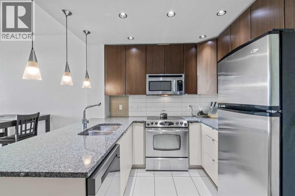 Welcome to Xenex on 12th, an award-winning, elegant high-rise in Calgary’s vibrant Beltline district. This stunning 1-bedroom, 1-bath condo perfectly blends style and functional design—ideal for first-time buyers, urban professionals, or savvy investors seeking convenience, comfort, and modern charm. Step inside and immediately notice the two-tone cabinetry that adds depth and visual interest to the kitchen and bath. The kitchen is a chef’s delight, featuring stainless-steel appliances and granite countertops that extend to the breakfast bar, creating a chic, durable, and low-maintenance work surface. The bathroom follows suit with matching granite, elevating everyday routines with a touch of refinement. Large windows flood the open-concept living and dining area with natural light—and on clear days, your gaze drifts to panoramic mountain views, offering a serene backdrop to your urban lifestyle. Whether you’re sipping morning coffee or unwinding in the evening, the Rocky Mountains create a stunning, ever-changing vista.Practical amenities abound: this unit comes with a titled underground parking stall, ensuring secure winter-ready parking, plus an assigned storage locker—perfect for seasonal gear or that extra bit of organizing space. The in-suite laundry area is notably generous in size, offering extra storage nooks and making day-to-day living genuinely convenient. Xenex on 12th delivers exceptional value with reasonable condo fees, which include heat and common-area maintenance—streamlining your monthly budget while delivering comfort, quality, and peace of mind. Additional building highlights such as central air conditioning ensure you stay comfortable year-round. Situated in the heart of Calgary’s Beltline, you're just steps from Safeway, local cafés, nightlife, dining, and the sought-after 17th Avenue shops. With superb walkability, transit access, and all of downtown at your fingertips, this property offers the ultimate blend of lifestyle, location, and lux ury. (id:53676)