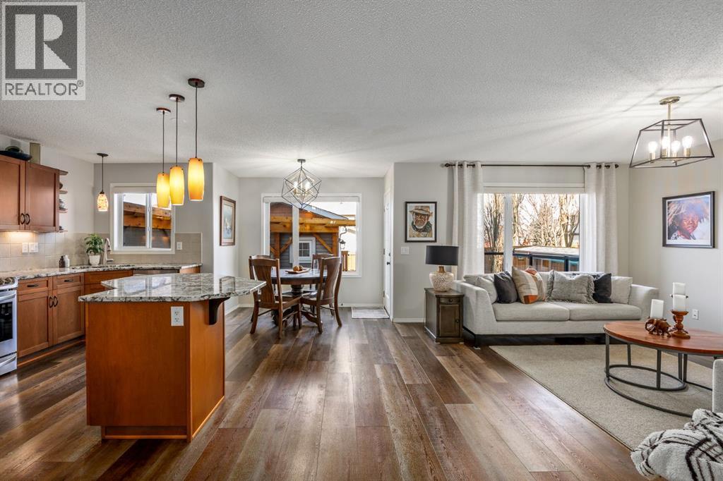 Step inside to a home that immediately feels inviting and thoughtfully finished. Designed for both comfort and everyday living, the space features luxury vinyl plank flooring and plush carpet throughout, paired with timeless granite countertops, Hunter Douglas blinds, and a cozy gas fireplace that anchors the main living area and sets the tone for the home. The kitchen is designed for ease with central vacuum and island kick, while main floor laundry adds everyday convenience. The fully developed basement expands your living space, perfect for movie nights, guests, or a home gym. Comfort and care shine throughout: air conditioning, new hot water tank (2022), new stove (2022), and furnaces that are professionally cleaned regularly with carpets cleaned annually. Storage is abundant with extra attic storage in the garage, plus a Vacuflo system. Step outside and you’ll find a backyard built for all seasons. Enjoy summer evenings on the two-tiered deck with cedar pergola and privacy shades, composite board landings, a propane rough-in for a fire pit on the lower patio, outdoor hot water bib, and hanging plant irrigation. There’s a shed, covered outdoor bicycle storage, and an extended driveway completed in 2024—perfect for extra parking or toys. This is more than a house—it’s a home that’s been loved, upgraded, and meticulously maintained. This beautifully maintained property offers the rare combination of a double attached garage complete with attic storage with a drop-down ladder plus a separate heated, fully finished single detached garage/shop—complete with electrical sub panel, more attic storage, alley access, and even a built-in basketball net on the concrete apron. Whether you’re dreaming of the ultimate man cave, workshop, or hobby space, this 200 sq ft heated shop (built in 2014) delivers. A rare opportunity in one of Airdrie’s most sought-after communities. (id:53676)
