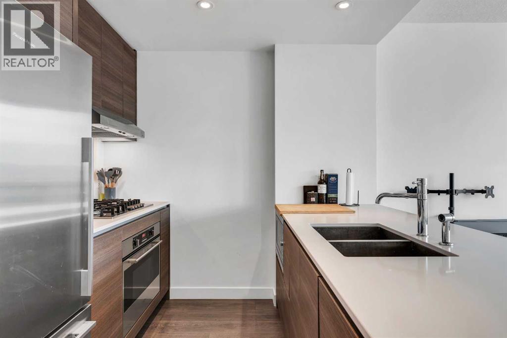 Welcome to 1308, 1501-6 Street SW—an exceptional condo that combines modern living with unbeatable convenience. Situated in the heart of the Beltline, this home is just steps away from over 377 restaurants, bars, coffee shops, and shops along the vibrant 17th Avenue corridor. Inside, you'll find a bright, open floor plan with soaring 9-foot ceilings and sleek custom laminate flooring throughout. The chef-inspired kitchen features pristine quartz countertops and high-end stainless steel appliances, perfect for cooking and entertaining. The spacious primary bedroom offers a serene retreat with amazing views, while the stylish 4-piece bathroom boasts heated tile floors for added comfort. Step outside onto your expansive west-facing balcony, perfect for enjoying the sunny Calgary days and evenings. Additional features include a titled parking stall, titled storage, concierge service for deliveries, and access to a secure bike room. Whether you're a young professional or a couple searching for your first home, this condo offers both style and functionality in an unbeatable location. Don’t miss the chance to experience urban living at its finest. (id:53676)